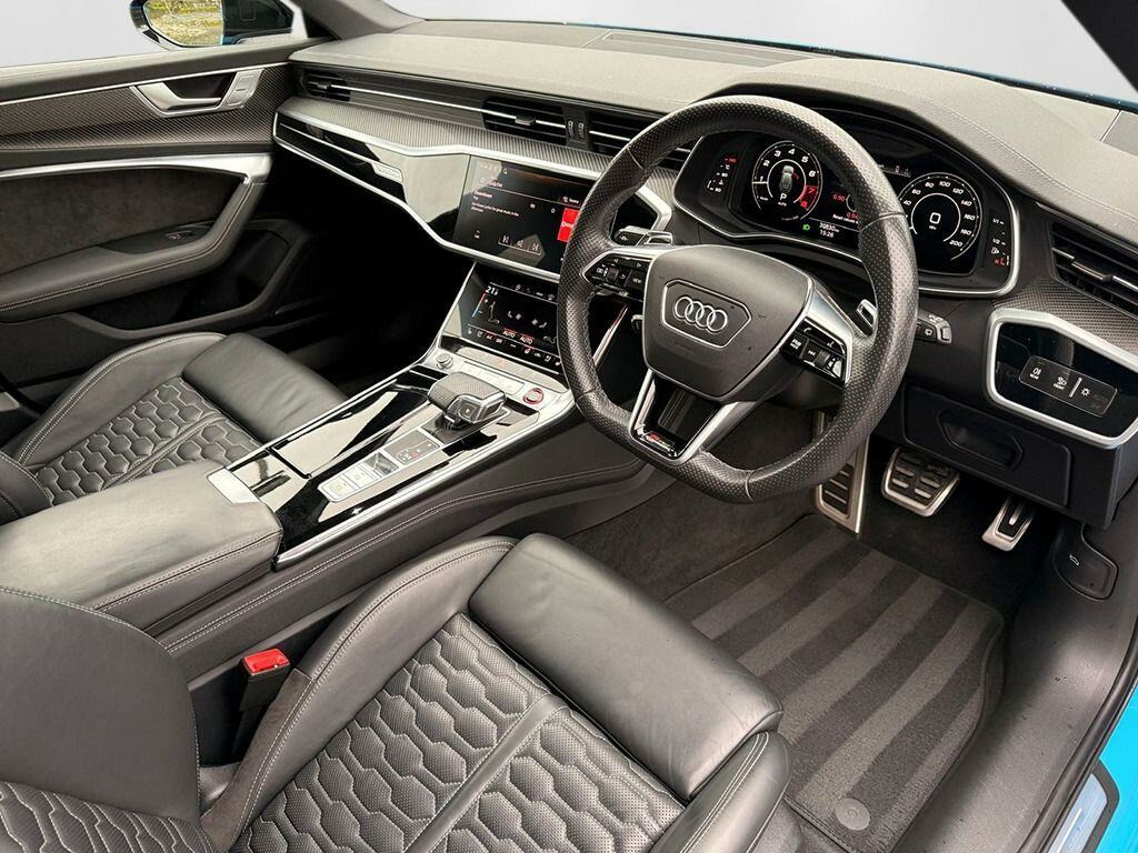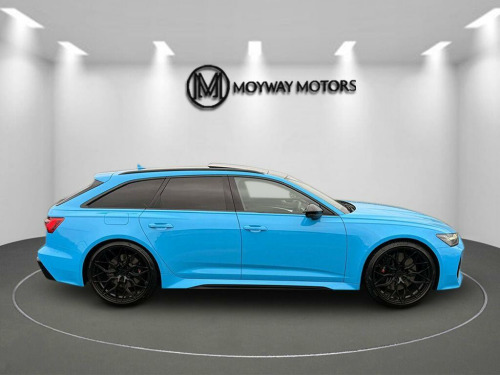 This 2021 Audi RS6 Avant TFSI V8 Vorsprung presents an exceptional example with remarkably low mileage for its year, having covered just 30,000 miles. As a Euro 6 compliant model, it features a powerful 4.0 litre petrol engine paired with Audi's renowned four wheel drive system, ensuring dynamic performance. The Vorsprung trim level signifies a high specification, enhanced by features such as HD Matrix LED Headlamps with Audi Laser Light, a Head Up Display for convenient information access, and the Audi Phone Box with Wireless Charging. Comfort is also a priority, with heated front and rear seats and electrically adjustable front seats that include a driver memory function.The RS6 Avant is celebrated for its blend of performance and practicality, boasting a large boot space that makes it incredibly versatile for everyday use and longer journeys. Its acceleration is truly impressive, capable of reaching 0-62mph in a mere 3.6 seconds, a figure that highlights its superior performance capabilities compared to many other vehicles in its class. This combination of speed, advanced technology, and ample storage space makes this Audi RS6 Avant a compelling choice for those seeking a premium estate car that excels in every area.. 22in Alloy Wheels - Titanium Matt Gloss Turned Finish, 360 Degree Camera, 4-Way Electric Lumbar Support, 4-Zone Deluxe Automatic Climate Control, ABS - Anti-Lock Braking System, AMI - Audi Music Interface, Air Quality Pack, Airbags - Driver, Amazon Alexa Integration - Part of Connect Navigation and Information Plus, Anti-Theft Alarm with Tow-Away Protection, Audi Connect (3 Year Subscription From New), Audi Connect Safety and Service - e-call, Audi Drive Select with Efficiency, Audi Music Interface in the Rear, Audi Phone Box with Wireless Charging, Audi Pre-Sense Front, Audi Smartphone Interface, Audi Sport Logo Projection - Audi Beam - Front and Rear, Audi Virtual Cockpit with RS Specific Design and 12.3in Display, Auto Dimming and Frameless Rear View Mirror, Black Cloth Headlining, Black Mirror Housings, Bluetooth Interface, Camera Based Traffic Sign Recognition, City Assist Pack, Comfort and Sound Package, Cruise Control System with Speed Limiter, DAB Digital Radio, Direct Tyre Pressure Monitoring System, Dynamic All-Wheel Steering, Electric Steering Column Adjustment, Electric Windows - Front, Electrically Adjustable Front Seats with Driver Memory Function, Electromechanical Parking Brake, Extended LED Interior Lighting Package - Multi-Coloured, Extended Pedestrian Protection Measures, Exterior Mirrors - Automatically Dimming, Exterior Mirrors - Electrically Folding - Adjustable and Heated with Integrated LED Side Indicators and Kerb View Function for Passenger Side, First Aid Kit and Warning Triangle, Front Centre Armrest, Front Seat Ventilation, Front and Rear Floor Mats, Front and Rear Side Airbags with Head Airbag System, Gloss Black Styling Package, HD Matrix LED Headlamps with Audi Laser Light with Dynamic Light Design and Dynamic Turn Signal, Head-Up Display, Headlight Washers, Heated Front and Rear Seats, ISOFIX Child Seat Mounting and Top Tether - Front Passenger Airbag Deactivation, Inlays - Natural Grey Brown Fine Grain Ash, Keyless Go, LED Rear Combination Lamps with Dynamic Light Design and Dynamic Turn Signal, Lane Departure Warning, Leatherette Upper Instrument Panel and Door Shoulders, MMI Navigation with MMI Touch, Operating Buttons in Black - Glass Look with Haptic Feedback, Panoramic Glass Sunroof, Pedals and Footrest - Stainless Steel, Power Door Closure, Power Latching for the Doors, Power-Operated Tailgate, Privacy Glass in Side and Rear Windows - Acoustic Glazing for Side Windows, RS Flat Bottomed Leather Multifunction Steering Wheel, RS Illuminated Door Sill Trims with RS Lettering, RS Rear Spoiler in Body Colour, RS Specific Front and Rear Bumpers, RS Sport Suspension Plus with Dynamic Ride Control - DRC, RS Sports Seats, RS Steel Brakes with Black Calipers, Radiator Grille in Honeycomb Structure - Gloss Black with Large Front Air Inlets and Rear Diffuser in Gloss Black, Rear Sports Exhaust System - Black, Shift Paddles in Aluminium, Storage Package, Top Speed Restriction Increase to 174mph, Tour Pack, Tow Bar Preparation, Voice Control System, Wheel Arch Extensions, Window Trims in Matt Aluminium, quattro with Sports Differential, Inlays - Carbon Twill, Valcona Leather - Black with Black Stitching Honeycomb Quilted Design, Audi Exclusive Paint (Riviera Blue). Full dealership history
