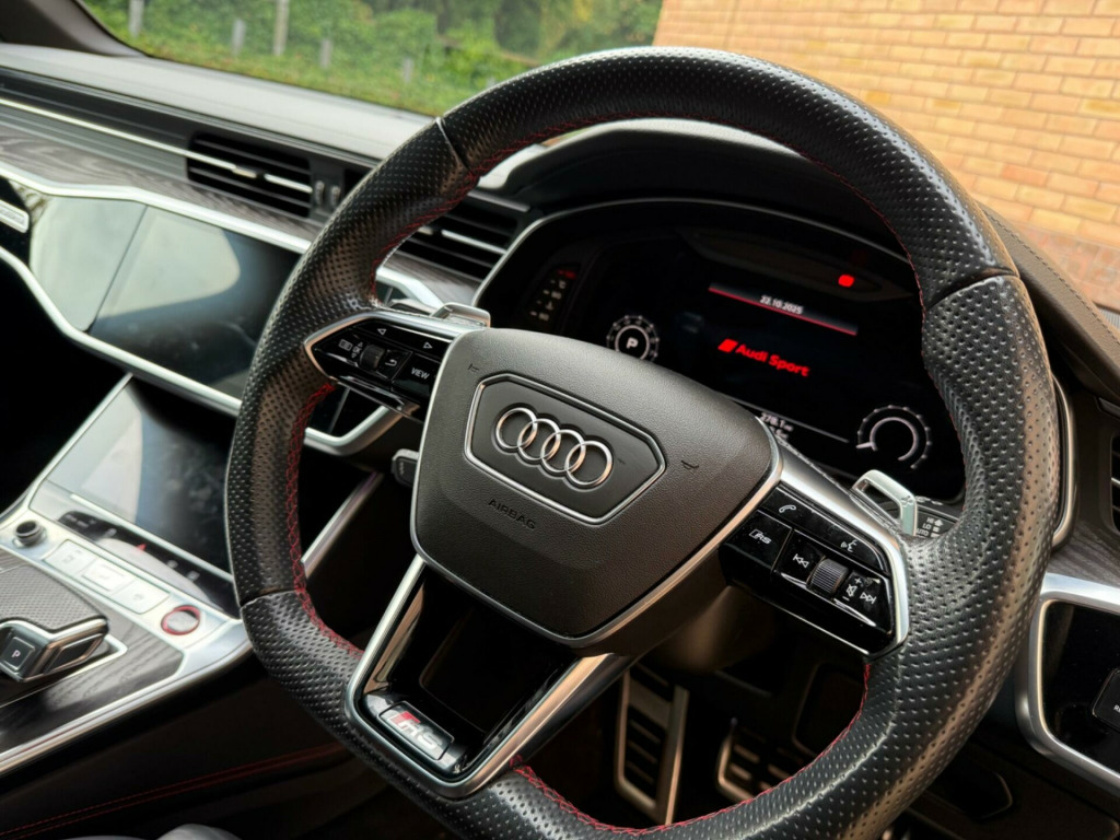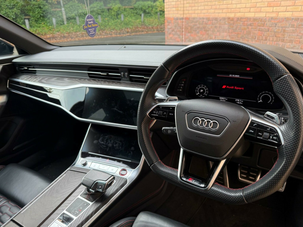 2022 Audi RS6 Avant TFSI V8 Vorsprung – Air Cars, Wilmslow • Year/Model: 2022 Audi RS6 Avant TFSI V8 Vorsprung • Ownership: 1 company owner from new, very careful driver • Mileage: 49,000 (just serviced at Audi main dealer) • Service History: Full Audi main dealer history • Condition: Showroom condition – the car has wanted for nothing • Keys: 2 keys supplied • Colour: Best colour – truly stunning carPerformance & Engine • 4.0 litre V8 petrol engine • Quattro four-wheel drive • 0–62mph in just 3.6 seconds • Euro 6 compliantInterior & Features • Full Leather Package • Audi Virtual Cockpit with RS-specific design (12.3” display) • Head Up Display • Tour Pack with adaptive cruise control • Ambient lighting • Soft-closing doors • Panoramic sliding glass sunroof • Red calipers • Every possible extra included • 100% standard (never modified)Practicality • Spacious boot – perfect for everyday use and long trips • Seamless Bluetooth connectivityLocation & Extras • Based in Wilmslow, Cheshire (5 minutes from Manchester Airport) • Part exchange welcome. 22in Alloy Wheels - Titanium Matt Gloss Turned Finish, 4-Way Electric Lumbar Support, AMI - Audi Music Interface, Air Quality Pack, Airbags - Driver, Airbags - Front Passenger, Aluminium Roof Rails, Anti-Theft Alarm with Tow-Away Protection, Audi Beam, Audi Connect (3 Year Subscription From New), Audi Connect Safety and Service - e-call, Audi Drive Select, Audi Music Interface in the Rear, Audi Phone Box with Wireless Charging, Audi Pre-Sense Front, Audi Smartphone Interface, Audi Virtual Cockpit with RS Specific Design and 12.3in Display, Auto Dimming and Frameless Rear View Mirror, Black Mirror Housings, Bluetooth Interface, Camera Based Traffic Sign Recognition, City Assist Pack, Cloth Headlining in Black, Comfort and Sound Package, Cruise Control System with Speed Limiter, DAB Digital Radio, Deluxe 4-Zone Automatic Climate Control, Direct Tyre Pressure Monitoring System, Door Mirrors - Electrically Folding - Adjustable and Heated with Integrated LED Side Indicators and Kerb-view Function for Passenger Side, Dynamic All-Wheel Steering, Electric Steering Column Adjustment, Electrically Adjustable Front Seats with Memory Function for Drivers Side, Electromechanical Parking Brake, Extended LED Interior Lighting Package - Multi-Coloured, Extended Pedestrian Protection Measures, Exterior Mirrors -? Electrically Adjustable - Heated - Folding and Automatically-Dimming, First Aid Kit and Warning Triangle, Front Centre Armrest, Front and Rear Floor Mats, Front and Rear Side Airbags with Head Airbag System, Gloss Black Styling Package, HD Matrix LED Headlamps with Audi Laser Light with Dynamic Light Design and Dynamic Turn Signal, Head-Up Display, Headlight Washers, Heated Front and Rear Seats, ISOFIX Child Seat Mounting and Top Tether - Front Passenger Airbag Deactivation, Illuminated Door Sill Trims with RS Logo, Inlays - Fine Grain Ash - Natural Grey-Brown, Keyless Go, LED Rear Combination Lamps with Dynamic Light Design and Dynamic Turn Signal, Lane Departure Warning, Leatherette Upper Instrument Panel and Door Shoulders, MMI Navigation with MMI Touch, Operating Buttons in Gloss Black, Panoramic Glass Sunroof, Pedals and Footrest - Stainless Steel, Power Door Closure, Power Latching for the Doors, Power Operated Tailgate, Privacy Glass, RS Flat Bottomed Leather Multifunction Steering Wheel, RS Rear Spoiler in Body Colour, RS Specific Bumpers - Front Bumper Air Inlets on Both Sides, RS Sports Suspension Plus with Dynamic Ride Control - DRC, RS Steel Brakes with Black Calipers, RS-Air Suspension - 4 Corner - with Electronic Shock Absorption Control - Sports Version, Radiator Protective Grille in Honeycomb Structure - Gloss Black with Large Front Air Inlets and Rear Diffuser in Gloss Black, Rear Sports Exhaust System - Black, Rear-View Camera, Seat Ventilation for Front Seats, Storage Package, Top Speed Restriction Increase to 174mph, Tour Pack, Towbar Preparation, Voice Control System, Wheel Arch Extensions - Front and Rear, Window Trims in Matt Aluminium, quattro with Sports Differential, Audi Connect with Amazon Alexa Integration, Electric Windows - Front and Rear, 2 USB-C Ports with Charging Functionality in the Rear, Audi Drive Select with Efficiency, ABS - Anti-Lock Braking System, RS Steel Brakes with Brake Calipers in Red Gloss, Sort close doors, Sliding pan roof, Ambient lights, Full Leather Package, Bang & Alifson. Full dealership history