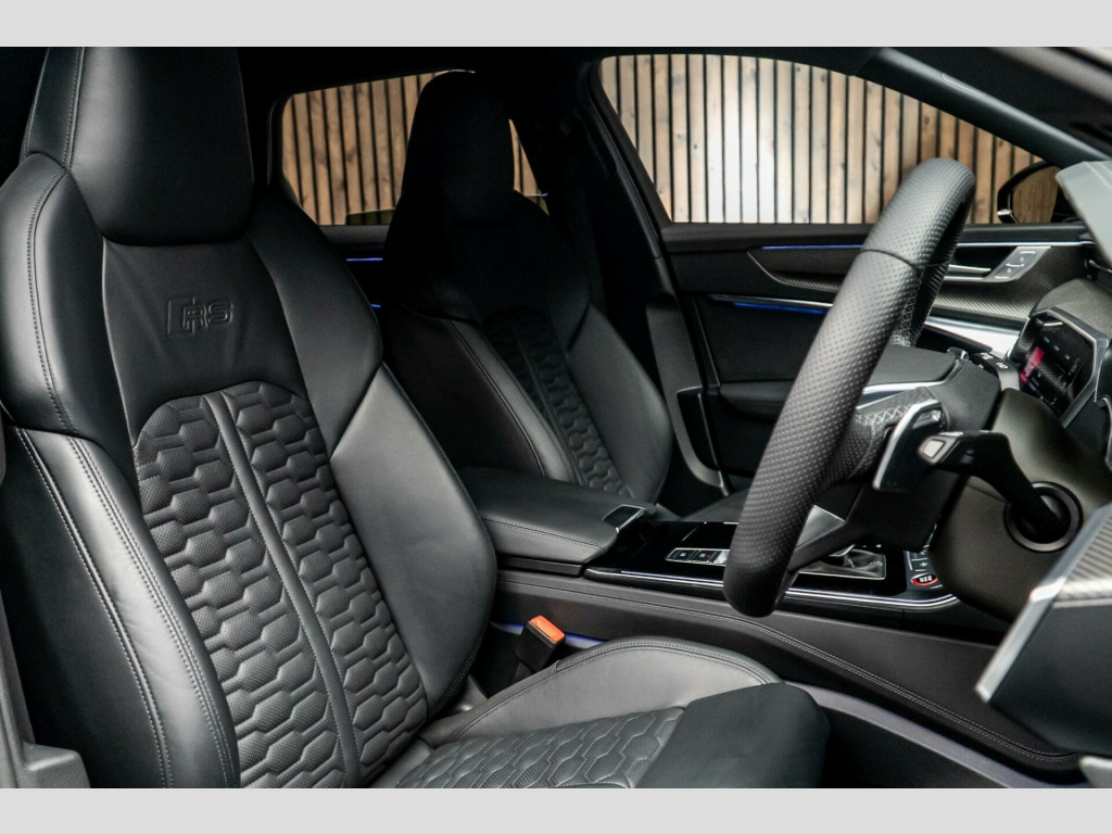 This 2021 Audi RS6 Avant TFSI V8 Vorsprung boasts exceptionally low mileage for its year, having covered just 17,618 miles. This impressive estate car features a powerful 4.0 litre petrol engine and a four wheel drive drivetrain, meeting Euro 6 emission standards. The Vorsprung trim level ensures a wealth of premium features, including electrically adjustable front seats with a memory function for the driver, a panoramic glass sunroof, and a comprehensive comfort and sound package complete with a 360 degree parking assistance camera.Experience exhilarating performance with the RS6 Avant's remarkable 0-62mph acceleration in just 3.6 seconds, a figure that sets it apart from many similar vehicles. Further enhancing its appeal are the advanced HD Matrix LED headlamps with Audi Laser Light, offering dynamic light design and turn signals, alongside a convenient Head Up Display. This model also benefits from a large boot space, making it as practical as it is powerful.. 22in Alloy Wheels - Titanium Matt Gloss Turned Finish, 4-Way Electric Lumbar Support, AMI - Audi Music Interface, Air Quality Pack, Airbags - Driver, Airbags - Front Passenger, Aluminium Roof Rails, Anti-Theft Alarm with Tow-Away Protection, Audi Beam, Audi Connect (3 Year Subscription From New), Audi Connect Safety and Service - e-call, Audi Drive Select, Audi Music Interface in the Rear, Audi Phone Box with Wireless Charging, Audi Pre-Sense Front, Audi Smartphone Interface, Audi Virtual Cockpit with RS Specific Design and 12.3in Display, Auto Dimming and Frameless Rear View Mirror, Black Mirror Housings, Bluetooth Interface, Camera Based Traffic Sign Recognition, City Assist Pack, Cloth Headlining in Black, Comfort and Sound Package, Cruise Control System with Speed Limiter, DAB Digital Radio, Deluxe 4-Zone Automatic Climate Control, Direct Tyre Pressure Monitoring System, Door Mirrors - Electrically Folding - Adjustable and Heated with Integrated LED Side Indicators and Kerb-view Function for Passenger Side, Dynamic All-Wheel Steering, Electric Steering Column Adjustment, Electrically Adjustable Front Seats with Memory Function for Drivers Side, Electromechanical Parking Brake, Extended LED Interior Lighting Package - Multi-Coloured, Extended Pedestrian Protection Measures, Exterior Mirrors - Electrically Adjustable - Heated - Folding and Automatically-Dimming, First Aid Kit and Warning Triangle, Front Centre Armrest, Front and Rear Floor Mats, Front and Rear Side Airbags with Head Airbag System, Gloss Black Styling Package, HD Matrix LED Headlamps with Audi Laser Light with Dynamic Light Design and Dynamic Turn Signal, Head-Up Display, Headlight Washers, Heated Front and Rear Seats, ISOFIX Child Seat Mounting and Top Tether - Front Passenger Airbag Deactivation, Illuminated Door Sill Trims with RS Logo, Inlays - Fine Grain Ash - Natural Grey-Brown, Keyless Go, LED Rear Combination Lamps with Dynamic Light Design and Dynamic Turn Signal, Lane Departure Warning, Leatherette Upper Instrument Panel and Door Shoulders, MMI Navigation with MMI Touch, Operating Buttons in Gloss Black, Panoramic Glass Sunroof, Pedals and Footrest - Stainless Steel, Power Door Closure, Power Latching for the Doors, Power Operated Tailgate, Privacy Glass, RS Flat Bottomed Leather Multifunction Steering Wheel, RS Rear Spoiler in Body Colour, RS Specific Bumpers - Front Bumper Air Inlets on Both Sides, RS Sports Suspension Plus with Dynamic Ride Control - DRC, RS Steel Brakes with Black Calipers, RS-Air Suspension - 4 Corner - with Electronic Shock Absorption Control - Sports Version, Radiator Protective Grille in Honeycomb Structure - Gloss Black with Large Front Air Inlets and Rear Diffuser in Gloss Black, Rear Sports Exhaust System - Black, Rear-View Camera, Seat Ventilation for Front Seats, Storage Package, Top Speed Restriction Increase to 174mph, Tour Pack, Towbar Preparation, Voice Control System, Wheel Arch Extensions - Front and Rear, Window Trims in Matt Aluminium, quattro with Sports Differential, Full Leather Package, Inlays - Carbon Twill, Trailer Towing Hitch - Electrically Swivelling, 22 Inch Riviera RF10 Gloss Black Alloy Wheels.