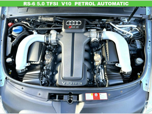 This understated yet powerful Audi RS6 Avant has a 5.0 V10 Twin turbo petrol engine developing 580BHP! It was owned by a prominent musician and car enthusiast and it has been serviced 14 times by Audi and Audi specialists.It has a huge specification the includes heated leather recaro seats, Digital TV, Parking Camera/Sensors, Glass Electric Sunroof, Bose Sound System, Sat Nav, Keyless Starting (2 keys) Power Folding Mirrors, Electric Tailgate and much more… RS Leather Multifunction Sports Steering, Tinted privacy Glass to Rear of B post, Analogue & Digital TV reception, Monza Silver, Power door closure, Electric Tilt&Slide solar Sunroof, 18in 10Spoke Alloy Wheels, 19in 10Spoke Alloy Wheels, 19in 7 double Spoke design Alloy Wheels, 20in 5 segment Spoke Alloy Wheels, 20in 7 arm Twin Spoke design Alloy Wheel, Acoustic & Optical Parking System- F, Anthracite Velour floor mats, Black Cloth headlining, Bluetooth telephone connectivity, Body colour door handles, Carbon Atlas inlays, Chrome grille surround, Cruise Control, Delete Rear side Airbags, Front Sports Seats, Front side Airbags, Full size spare Wheel, GSM mobile phone preparation w