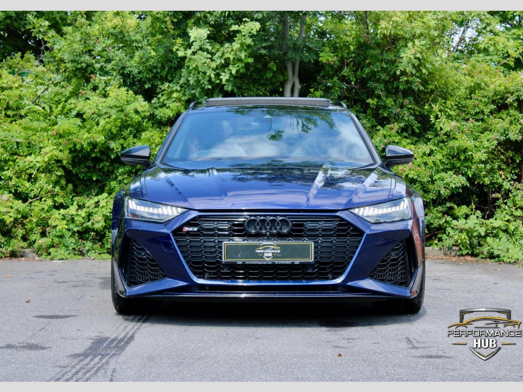 We are proud to present this massive specification Audi RS6 Avant now in stock in the beautiful Navarra Blue. This car has phenomenal spec including, panoramic glass sunroof, reverse camera, bang & Olufsen sound system, audi phone box wireless charging, extended LED interior light pack, comfort and sound pack, heated and cooled seats, electric memory seats, deluxe 3 zone climate control, privacy glass, cruise control with speed limiter, power operated tailgate, electric folding door mirrors, privacy glass, plus much much more