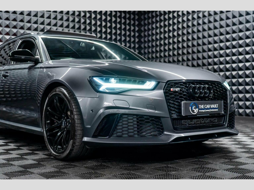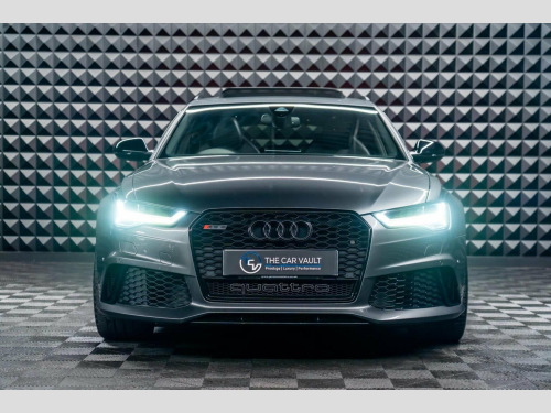 We At The Car Vault Are Proud To Offer This Stunning AUDI RS6 AVANT 4.0 TFSI V8 Tiptronic Quattro Euro 6 Finished In DAYTONA GREY PEARL EFFECT Paint. This Vehicle Is Still Under APPROVED AUDI WARRANTY TILL JUNE/2026. It Also Has a FULL AUDI MAIN DEALER/SPECIALIST SERVICE HISTORY and Comes With 2 ORIGINAL AUDI REMOTE KEYS. This AUDI RS6 Comes With The Following OPTIONAL SPECIFICATION - GHOST IMMOBILISER, Panoramic Glass Sunroof, RS Sports Suspension Plus with Dynamic Ride Control-DRC, RS Sports Exhaust, Gloss Black Styling Package and High Gloss Black Housing Door Mirrors, All LED Headlights with High Beam Assist, Convenience Package, Parking Pack, Keyless Go, BOSE Surround Sound System, Rear View Camera, MMI Navigation Plus including MMI Touch, Audi Connect with Audi Phone Box, Valcona Leather RS Embossed-Super Sports Seats-Black with Rock Grey Stitching, RS Super Sports Front Seats with Drivers Side Memory Function, Heated Front and Outer Rear Seats, Heated Steering Wheel-3 Spoke Leather/Multi Function/Paddle Shifts, Electrically Adjustable with Memory Steering Column, Carbon Interior Inlays, Ambient Lighting, Rear and Side Window Blinds, Power Operated Tailgate, Privacy Glass, Brake Calipers-High Gloss Black with RS Logo, 20in Alloy Wheels-7 Twin Spoke Design-Gloss Black, Panroof.