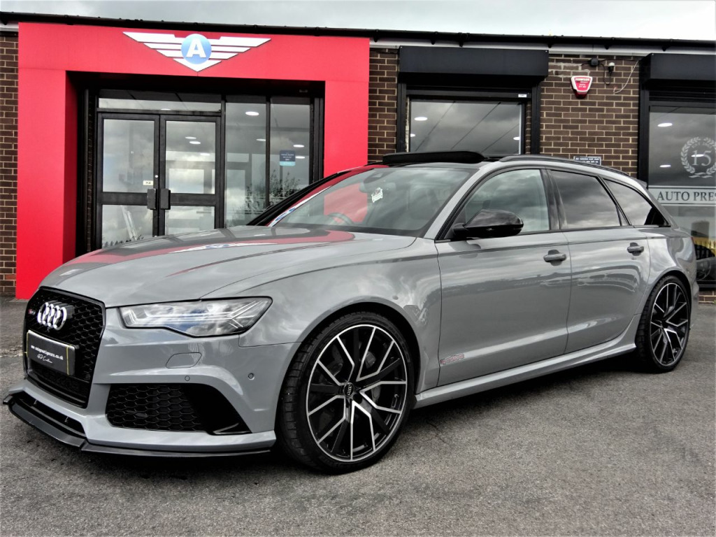 AUTOPRESTIGE ARE PROUD TO PRESENT THE ULTIMATE SPECIFICATION RS6 PERFORMANCE A WHOPPING 105K NEW WITH HUGH RARE EXTRAS...BEST COLOUR AND SPECIFICATION...CERAMIC COATED NARDO GREY WITH INVOICE COSTING 5600 POUNDS...PRICE IS SENSIBLE CONSIDERING ITS SPECIFICATION AND MILEAGE..WE ARE ONE OF THE LARGEST SUPPLIERS OF AUDI RS VEHICLES IN YORKSHIRE MOST OF OUR CARS ARE...SPARE KEYS/ORIGINAL INVOICES AND HPI CLEAR REPORTS....LAST TWO RS PERFORMANCES WE SOLD WERE WITHIN 48 HOURS OF ADVERTS GOING ON LINE...FULL SPECIFICATION INCLUDES SURROUND TOP VIEW 360 CAMERA SYSTEM WITH REVERSE CAMERA, PARK ASSIST WHICH PARKS ITSELF, THROUGH LOAD FACILITY, REVERSIBLE MAT, LOAD AREA FIXING KIT, AUTO DIMM MIRROR SYSTEM, GLOSS BLACK STYLING PACKAGE INCLUDING AIR INTAKE DUCT WITH QUATTRO LOGO, HIGH GLOSS DOOR MIRROR PACK, MATT BLACK ROOF RAILS, AUDI LED MATRIX LIGHTS, PIANO BLACK INLAYS, PARKING PACK ADVANCED, PANORAMIC GLASS ROOF WITH BLIND, REAR WINDOW BLINDS WITH PRIVACY GLASS, DYNAMIC PACK PLUS WITH CARBON CERAMIC BRAKES (FULL BRAKING SYSTEM REPLACED BY AUDI)...BLACK STYLING PACK, CONVENIENCE PACK, RS SPORTS SUSPENSION PLUS WITH DYNAMIC RIDE CONTROL, DRC, QUATTRO SPORTS DIFF, DYNAMIC STEERING, TOP SPEED INCREASE TO 189 MPH, A VERY EXPENSIVE MILTEK RESONATED EXHAUST SYSTEM...VALCONA HEATED LEATHER BUCKET SEATS, 21 INCH ALLOY WHEEL PACKAGE. LED LIGHTS, SATELLITE NAIGATION, BLUETOOTH, WIFI, AUX, USB, SD CARD READER, AUDI JUKE BOX AND MANY OTHER EXTRAS FROM NEW..WHERE DO YOU FIND AN AUDI RS6 IN THIS COLOUR SPEC A CHANCE TO OWN SUCH A RARE RS6 PERFORMANCE...WE DO ACCEPT PART EXCHANGES UP OR DOWN..INTERNATIONAL ENQUIRIES WELCOME..FREE NATIONWIDE DELIVERY, ALL MAJOR CARDS ACCEPTED...ALL OUR VEHICLES ARE SUPPLIED WITH A FULLY COMPREHENSIVE GOLD COVER PARTS AND LABOUR WARRANTY, HPI GOLD CHECKED AND FULL REPORT WILL BE GIVEN UPON COLLECTION, LOW RATE FINANCE AVAILABLE, VIEWING STRICTLY BY APPOINTMENT ONLY, INDOOR SHOWROOM. CUSTOMER SATISFACTION MEANS EVERYTHING AT AUTOPRESTIGE CARS LTD, PLEASE VISIT OUR WEBSITE AND READ THE TESTIMONIALS PAGE. AUTOPRESTIGE CARS HAVE BEEN ESTABLISHED OVER 25 YEARS SUPPLYING A PREMIUM LEVEL OF SERVICE IN THE SALES OF SPORTS PRESTIGE AND 4X4 VEHICLES. WE HAVE A TEAM OF EXPERIENCED BUYERS WHO HAND PICK OUR CARS FROM ALL PARTS OF THE UK SO YOU CAN BUY WITH COMPLETE CONFIDENCE.