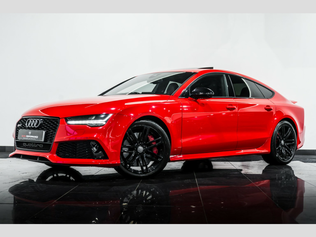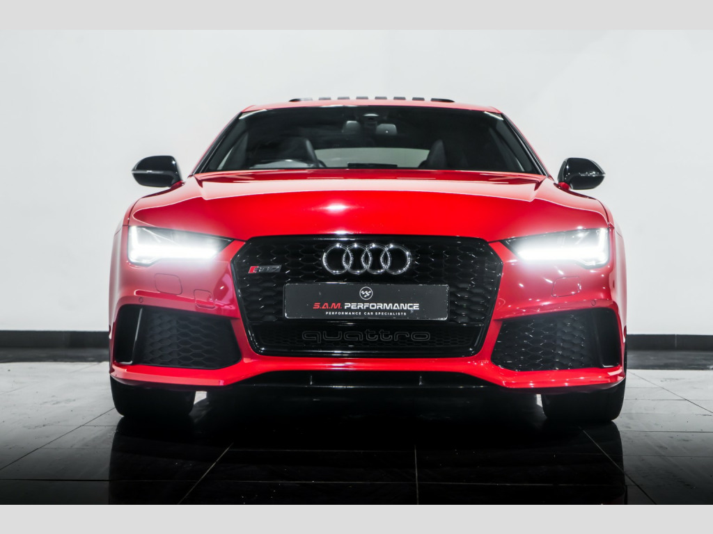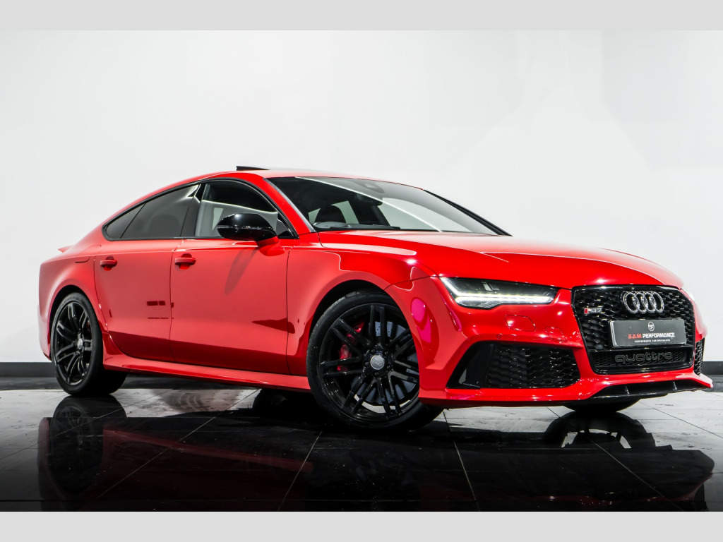2015 (65) Audi RS7 4.0 TFSI V8 Sportback 5dr Petrol Tiptronic quattro finished in Red with contrasting Valcona Leather RS Embossed - Super Sports Seats - Black. This car comes with: Full Service History, Bose Sound System, Head Up Display, Keyless Start/Stop, Carbon Inlays, Parking System Plus (Front and Rear parking sensors), Driver Side Memory Seats, Black Styling Pack, Electric Heated Door Mirrors, Front Heated Seats, Satellite navigation, Dab Radio, Privacy Glass, Dual climate control plus much more... , All our vehicles at S A M Performance are HPI Clear. We offer low rates finance packages tailored to suit every individual, subject to terms and conditions. For more information speak to our sales team today on 01706 659966 or to view our stock list go on to our website www.samperformance.co.uk, , NATIONWIDE DELIVERY AND CLICK & COLLECT SERVICE NOW AVAILABLE. , VIEWINGS BY APPOINTMENT ONLY