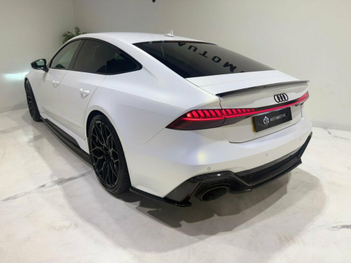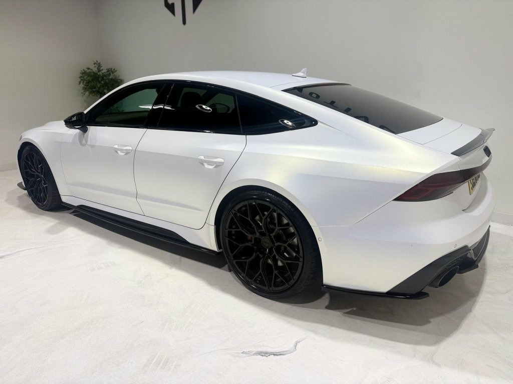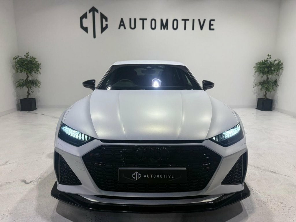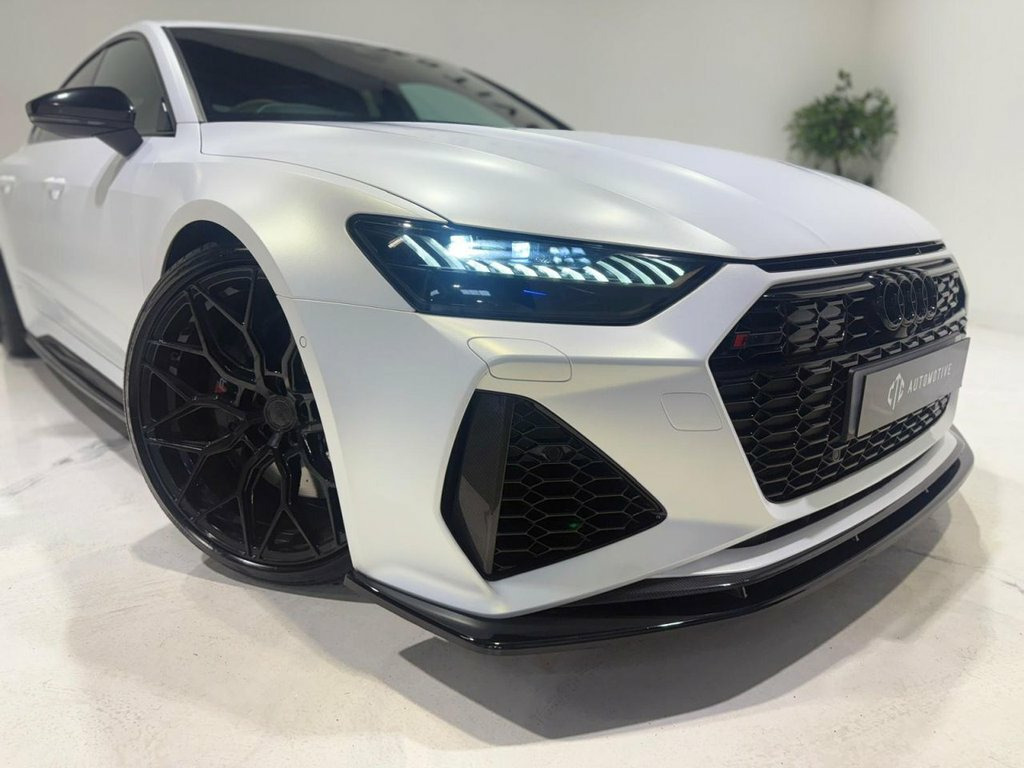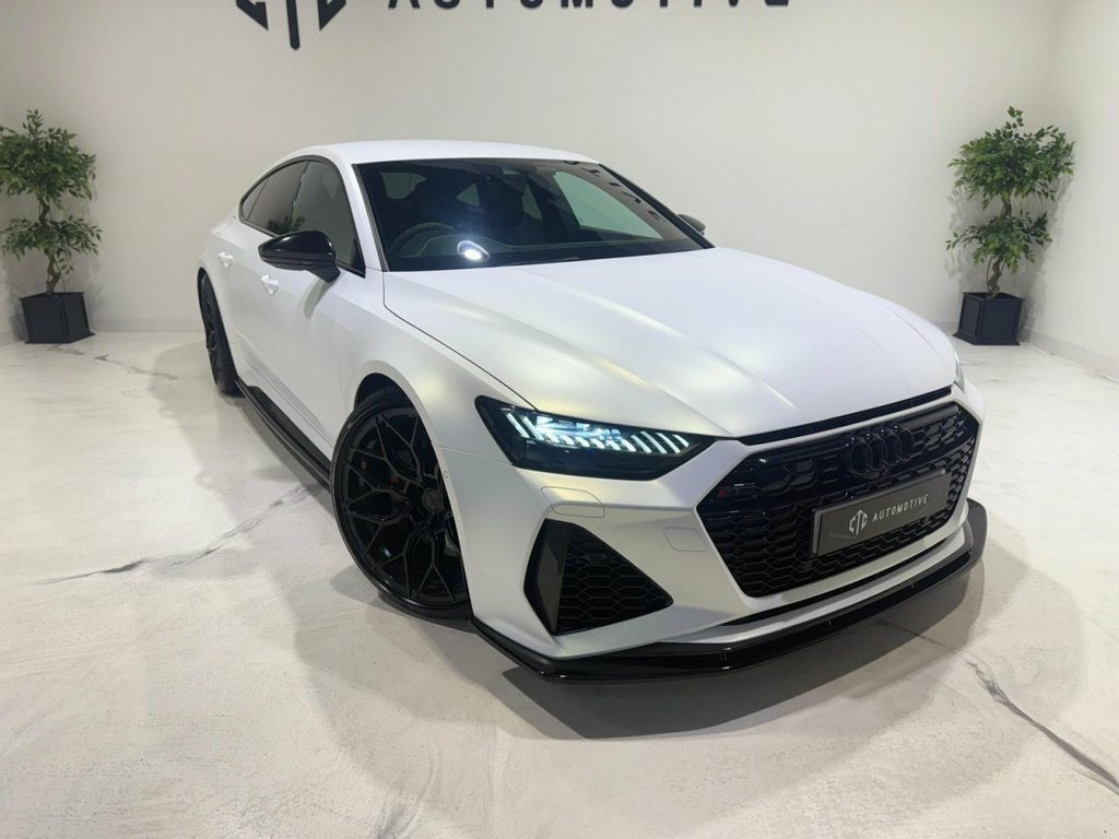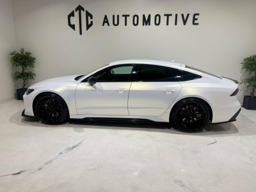 CTC Automotive are thrilled to present this absolutely unique Audi RS7 4.0 TFSI V8 Carbon Black Sportback, 800+ BHP, finished in a breathtaking Satin White Black Wrap. This car is the perfect marriage of everyday practicality and supercar-shattering performance, with a staggering 800+ BHP thanks to an extensive list of premium upgrades. Meticulously maintained with a Full Service History and freshly serviced, this RS7 offers total peace of mind for its next owner. Performance & Upgrades • Stage 2 Power Upgrade – producing over 800 BHP • Akropavic Full Exhaust System – delivering a ferocious yet refined soundtrack • APR Intake System – enhanced airflow & performance • Top Speed Increased to 174 MPH • RIVIERA 22" V Black Alloy Wheels – aggressive stance & premium finish Exterior & Styling • Satin Matt Black Wrap – menacing one-off look • Full Exterior Carbon Pack – lightweight and striking details • Black Styling Pack • Privacy Glass • Matrix LED Headlamps with signature RS design Interior Luxury & Technology • Full Black Leather Interior with Contrasting White Stitching • Carbon Twill Inlays • Bang & Olufsen 3D Premium Sound System – immersive audio experience • Extended LED Interior Lighting Pack (multi-coloured) • Audi Virtual Cockpit Plus • MMI Navigation Plus with MMI Touch Response • Audi Smartphone Interface, omfort & 22in Alloy Wheels - Black Gloss Turned F, 4-Way Electric Lumbar Support, 4-Zone Deluxe Automatic Climate Control, ABS - Anti-Lock Braking System, AMI - Audi Music Interface, Air Quality Pack, Airbags - Driver, Airbags - Front Passenger, Anti-Theft Alarm with Tow-Away Protectio, Audi Connect (3 Year Subscription From N, Audi Connect Safety and Service - e-call, Audi Drive Select with Efficiency, Audi Phone Box with Wireless Charging, Audi Pre-Sense Front, Audi Smartphone Interface, Audi Sound System, Audi Sport Logo Projection - Audi Beam -, Audi Virtual Cockpit with RS Specific De, Auto Dimming and Frameless Rear View Mir, Black Cloth Headlining, Black Mirror Housings, Bluetooth Interface, C