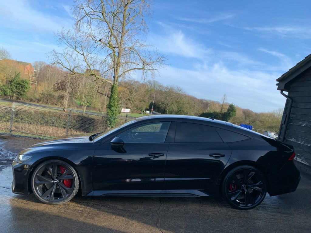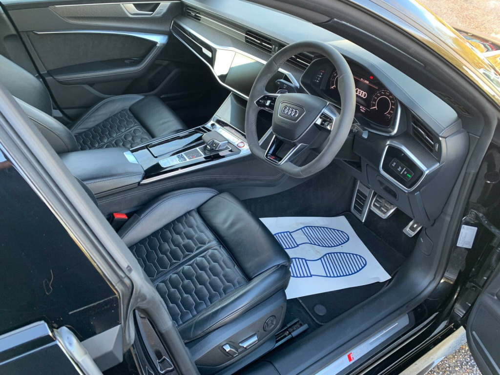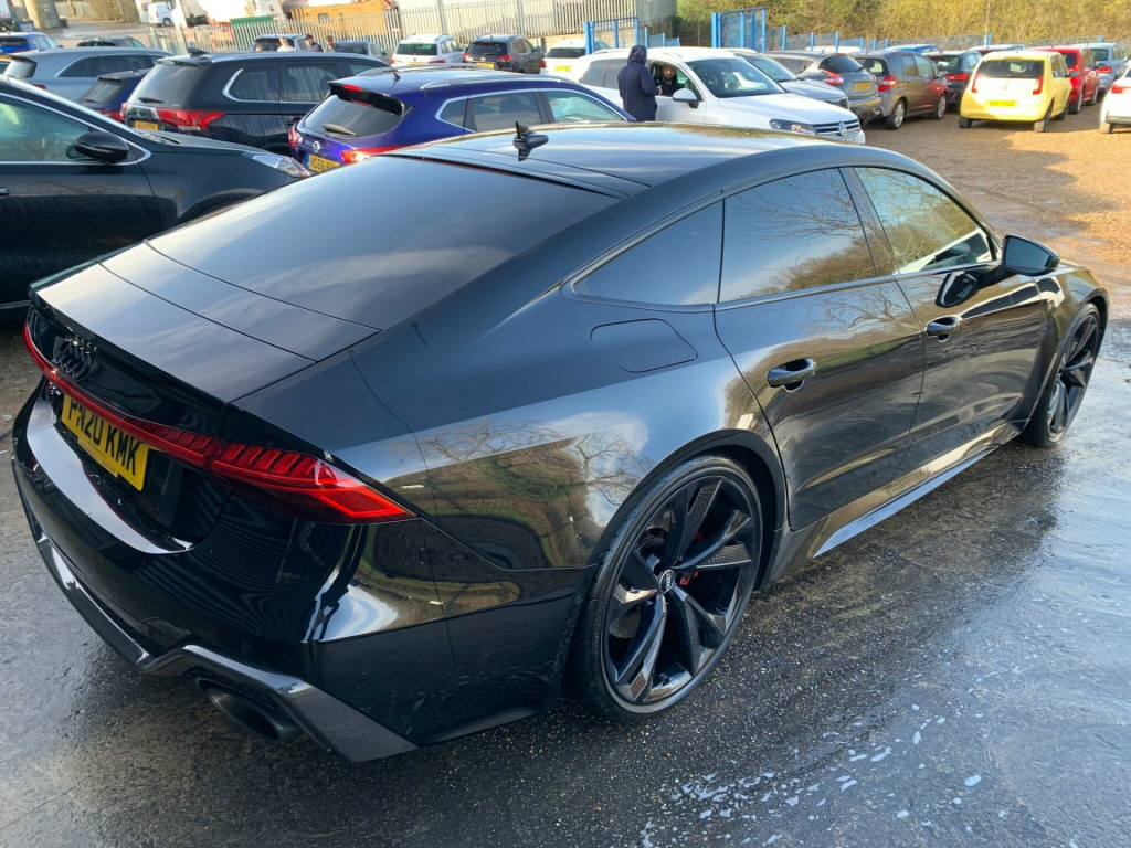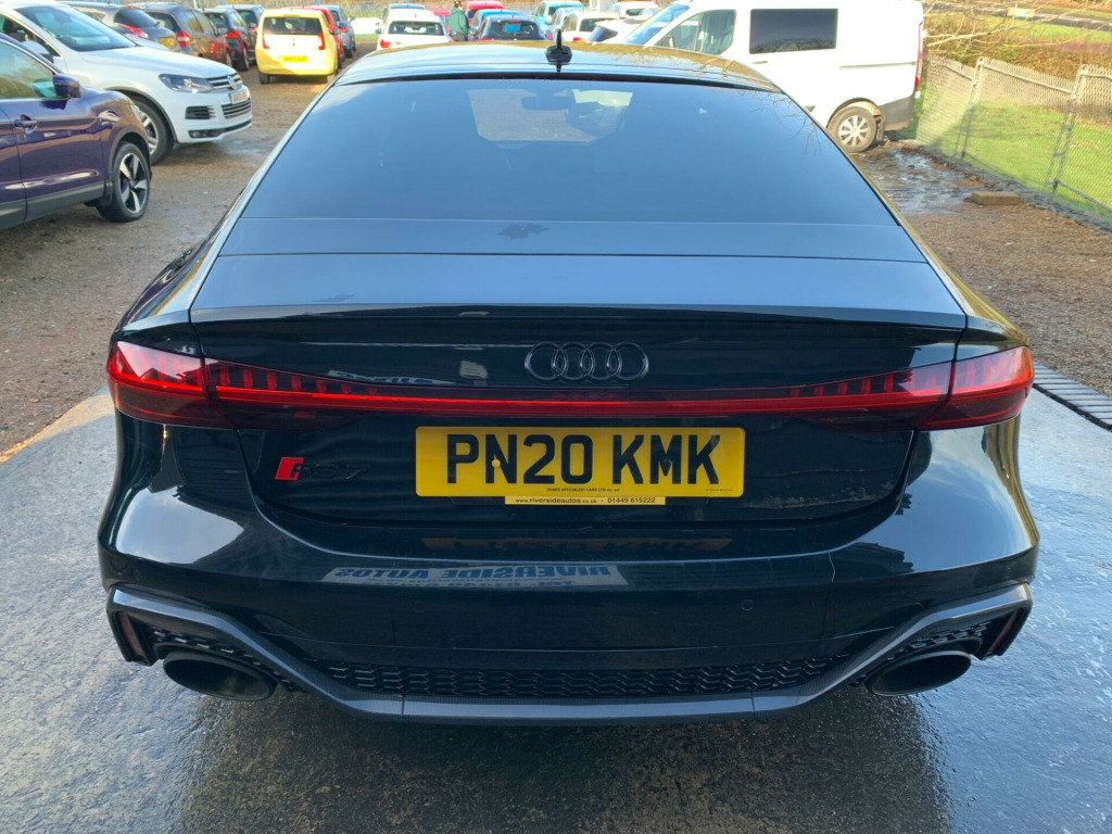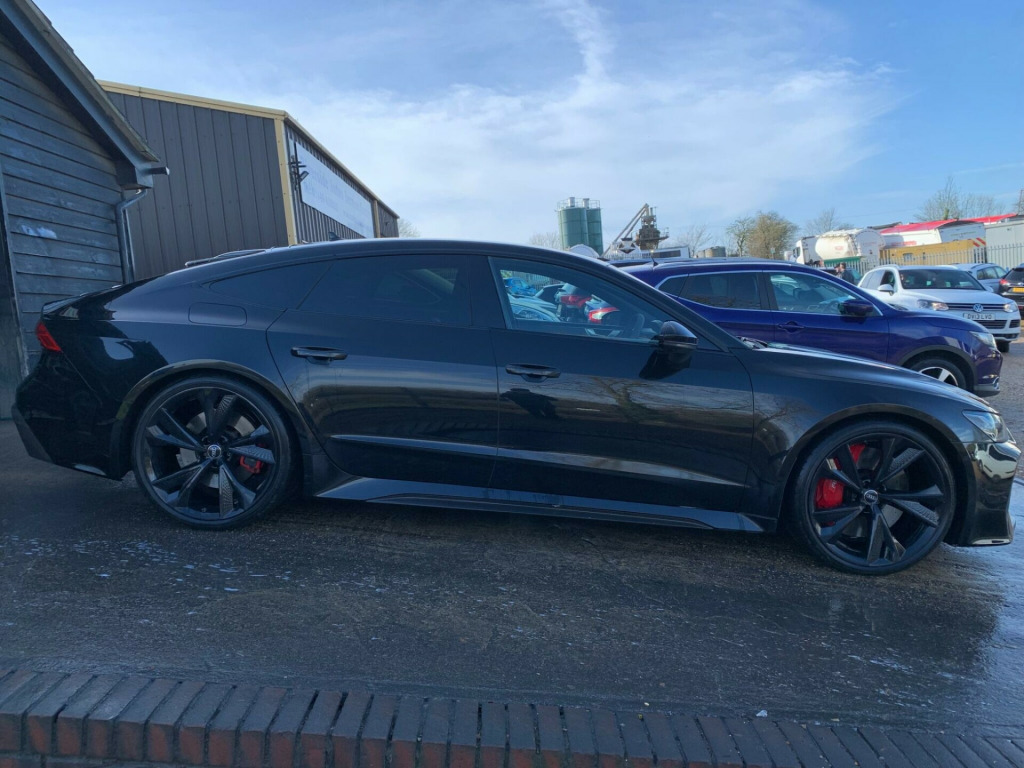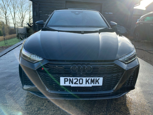 FREE UK DELIVERY - FINANCE AVAILABLE, CONTACT US NOW FOR A NO OBLIGATION QUOTE - CALL NOW TO ARRANGE A TEST DRIVE - PART EXCHANGE WELCOME - ONE YEAR WARRANTY MINIMUM, EXTENDED AVAILABLE, WARRANTY CAN BE REDEEMED AT VAT REGISETERED GARAGE - NO ADMIN FEES - ALL VEHICLES HPI CHECKED - FULL USED CAR INSPECTION MECHANICAL APPRAISAL CARRIED OUT ON ALL VEHICLES BEFORE LEAVING OURSELVES - YOU CAN REST ASSURED YOU'RE MAKING THE RIGHT DECISION WHEN PURCHASING YOUR NEW VEHICLE FROM US - OVER 100 VEHICLES IN STOCK - RIVERSIDE AUTOS LTD FAMILY RUN BUSINESS ESTABLISHED SINCE 2005 -This 2020 Audi RS7 TFSI V8 Carbon Black offers an exceptional blend of performance and luxury. As a Euro 6 compliant model, it features a potent 4.0 litre V8 petrol engine paired with Audi's renowned four wheel drive system, ensuring dynamic handling and exhilarating acceleration from 0 to 62 miles per hour in just 3.6 seconds. The Carbon Black trim enhances its appeal with striking HD Matrix LED headlamps incorporating Audi Laser Light, complete with dynamic light design and turn signals, while the Audi Virtual Cockpit presents RS specific information on a 12.3 inch display, also featuring a Head Up Display for convenience.Further enhancing the driving experience are electrically adjustable front seats with a driver memory function, and a rear view camera for easier manoeuvring. The generous boot space provides ample practicality for everyday use and longer journeys. These features collectively demonstrate how this Audi RS7 stands apart from other vehicles in its class, offering a sophisticated and powerful driving proposition.. 22in Alloy Wheels - Black Gloss Turned Finish, 4-Way Electric Lumbar Support, 4-Zone Deluxe Automatic Climate Control, ABS - Anti-Lock Braking System, AMI - Audi Music Interface, Air Quality Pack, Airbags - Driver, Airbags - Front Passenger, Amazon Alexa Integration - Part of Connect Navigation and Information Plus, Anti-Theft Alarm with Tow-Away Protection, Audi Connect (3 Year Subscription From New), Audi Connect Safety and Service - e-call, Audi Drive Select with Efficiency, Audi Phone Box with Wireless Charging, Audi Pre-Sense Front, Audi Smartphone Interface, Audi Sound System, Audi Sport Logo Projection - Audi Beam - Front and Rear, Audi Virtual Cockpit with RS Specific Design and 12.3in Display, Auto Dimming and Frameless Rear View Mirror, Automatic Start-Stop System, Black Cloth Headlining, Black Mirror Housings, Bluetooth Interface, Camera Based Traffic Sign Recognition, Carbon Black Styling Pack, Cruise Control System with Speed Limiter, DAB Digital Radio, Direct Tyre Pressure Monitoring System, Dynamic All-Wheel Steering, Electric Steering Column Adjustment, Electric Windows - Front and Rear, Electrically Adjustable Front Seats with Driver Memory Function, Electromechanical Parking Brake, Extended LED Interior Lighting Package - Multi-Coloured, Extended Pedestrian Protection Measures, Exterior Mirrors - Electrically Folding - Adjustable and Heated with Integrated LED Side Indicators and Kerb View Function for Passenger Side, First Aid Kit and Warning Triangle, Front Centre Armrest, Front Seat Ventilation, Front and Rear Floor Mats, Front and Rear Side Airbags with Head Airbag System, HD Matrix LED Headlamps with Audi Laser Light with Dynamic Light Design and Dynamic Turn Signal, Headlight Washers, Heated Front Seats, ISOFIX Child Seat Mounting and Top Tether - Front Passenger Airbag Deactivation, Inlays - Carbon Twill, Keyless Go, LED Rear Combination Lamps with Dynamic Light Design and Dynamic Turn Signal, Lane Departure Warning, Leatherette on Upper Instrument Panel and Door Shoulders, MMI Navigation with MMI Touch, Operating Buttons in Black - Glass Look with Haptic Feedback, Pedals and Footrest - Stainless Steel, Power-Operated Tailgate, Privacy Glass in Side and Rear Windows - Acoustic Glazing for Side Windows, RS Design Package - Grey, RS Flat Bottomed Leather Multifunction Steering Wheel, RS Illuminated Door Sill Trims with RS Lettering, RS Specific Front and Rear Bumpers, RS Sports Seats, RS Steel Brakes with Black Calipers, RS-Air Suspension - 4 Corner - with Electronic Shock Absorption Control - Sports Version, Radiator Protective Grille in Honeycomb Structure - Gloss Black with Large Front Air Inlets and Rear Diffuser in Gloss Black, Rear Spoiler, Rear-View Camera, Shift Paddles in Aluminium, Storage Package, Tow Bar Preparation, Voice Control System, Wheel Arch Extensions, quattro with Sports Differential, Power steering (dynamic steering), Safety steering column with electric axial and tilt adjustment, ''drive select'', Leather-wrapped multi-function sports steering wheel, Fresh air intake and air ionizer, Child seat anchors, Child seat anchors in front, Power seats in front, driver seat with memory feature, Seat heater for front seats separately controlled, Tailgate/trunk lid power closing, Seat ventilation in front, Central locking system ''Keyless Entry'', Airbag on driver and front passenger side, without knee airbag, with front passenger airbag deactivation, Breakaway interior rearview mirror, auto-dimming, Decorative trims, Rear spoiler (type 2), Front spoiler (type 2), Sun visors on driver and front passenger side, extractable, Front head restraints, Center armrest in front, Lane departure warning, pre sense city without pre care, Exterior mirrors with memory feature, auto-dimming, power-folding/adjustable/ heated, Speed limiter, Anti-theft alarm system, interior monitoring, backup horn, and towing protection, Leather variant 11, Tire pressure monitoring system, Start-stop system with regenerative br.