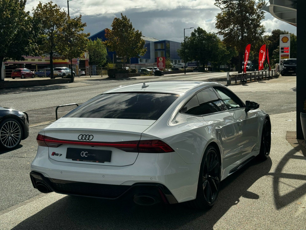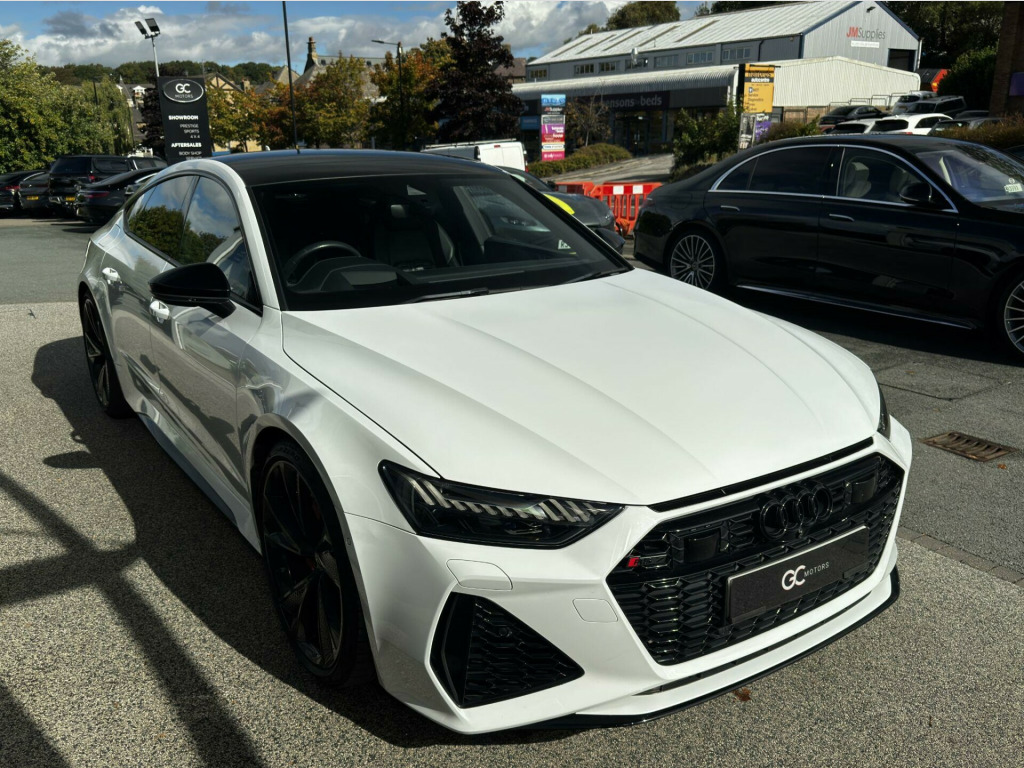 4.0 TFSI V8 VorsprungFactory Options: Dry Carbon Fibre Twill Interior Trim, Red RS Brake Calipers, Black Valcona Leather Interior. Standard Specification: Sliding Panoramic Roof, Soft Close Doors, Head Up Display, Black Pack, Bang & Olufsen Audio, Electric Heated & Cooled Front Sports Seats with Driver Memory, Electric Deployable Rear Spoiler, Heated Rear Seats, 22” Alloys, Leather Multi-Function Steering Wheel, Privacy Glass, 360 Camera, Adaptive Cruise Control, LED Matrix Headlights, Keyless Entry, Reversing Camera, Front Camera, Side Cameras, 360 Park Distance Control, Speed Limiter, Lane Keeping System, Lane Change Assist, Front Cross Traffic Assist, Traffic Jam Assist, 4 Zone Climate Control with Ionisation, Audi Drive Select, Audi Virtual Cockpit, Audi Multi-Media Interface, Satellite Navigation High, DAB Radio, Bluetooth, Apple CarPlay, Configurable Interior Ambient Lighting, Voice Control, Illuminated RS7 Kick Plates, Electric Sun Blind, Electric Steering Column, Electric Memory Heated Folding Wing Mirrors, Electric Tailgate, ISOFIX, 40/20/40 Split Folding Rear Seats, Leather Gear Knob, LED Rear Combination Lights, Tour Assistance Package, City Assistance Package. Finished in Glacier White Paint. Pan Roof, Pano Roof, Panorama Roof, Sunroof, Glass Roof, Climate Seats, Heated and Ventilated Seats. Proudly No.1 in the UK for customer service in 2024, as awarded by AutoTrader. Our bespoke customisation services include Upgrade Alloy Wheels/Colour Changed & Refurbishment, Carbon Dipping, Bodykits, Window Tints, Black Pack / De-chroming.All our cars are HPI clear. Please contact us for your own personal video presentation of this particular car. We offer competitive finance rates with our in-house team from PCP, lease purchase and HP. Whilst we make every effort to ensure that the specification and technical information for the cars on our website is correct, some of it is supplied by third party providers and we cannot guarantee its accuracy. It is therefore important that you do not solely rely on this information.. Sliding Panoramic Roof, Soft Close Doors, Head Up Display, Black Pack, Bang & Olufsen Audio, Electric Heated & Cooled Front Sports Seats with Driver Memory, Electric Deployable Rear Spoiler, Heated Rear Seats, 22” Alloys, Leather Multi-Function Steering Wheel, Privacy Glass, 360 Camera, Adaptive Cruise Control, LED Matrix Headlights, Keyless Entry, Reversing Camera, Front Camera, Side Cameras, 360 Park Distance Control, Speed Limiter, Lane Keeping System, Lane Change Assist, Front Cross Traffic Assist, Traffic Jam Assist, 4 Zone Climate Control with Ionisation, Audi Drive Select, Audi Virtual Cockpit, Audi Multi-Media Interface, Satellite Navigation High, DAB Radio, Bluetooth, Apple CarPlay, Configurable Interior Ambient Lighting, Voice Control, Illuminated RS7 Kick Plates, Electric Sun Blind, Electric Steering Column, Electric Memory Heated Folding Wing Mirrors, Electric Tailgate, ISOFIX, 40/20/40 Split Folding Rear Seats, Leather Gear Knob, LED Rear Combination Lights, Tour Assistance Package, City Assistance Package, Inlays - Carbon Twill, Red RS Brake Calipers, Black Valcona Leather Interior.