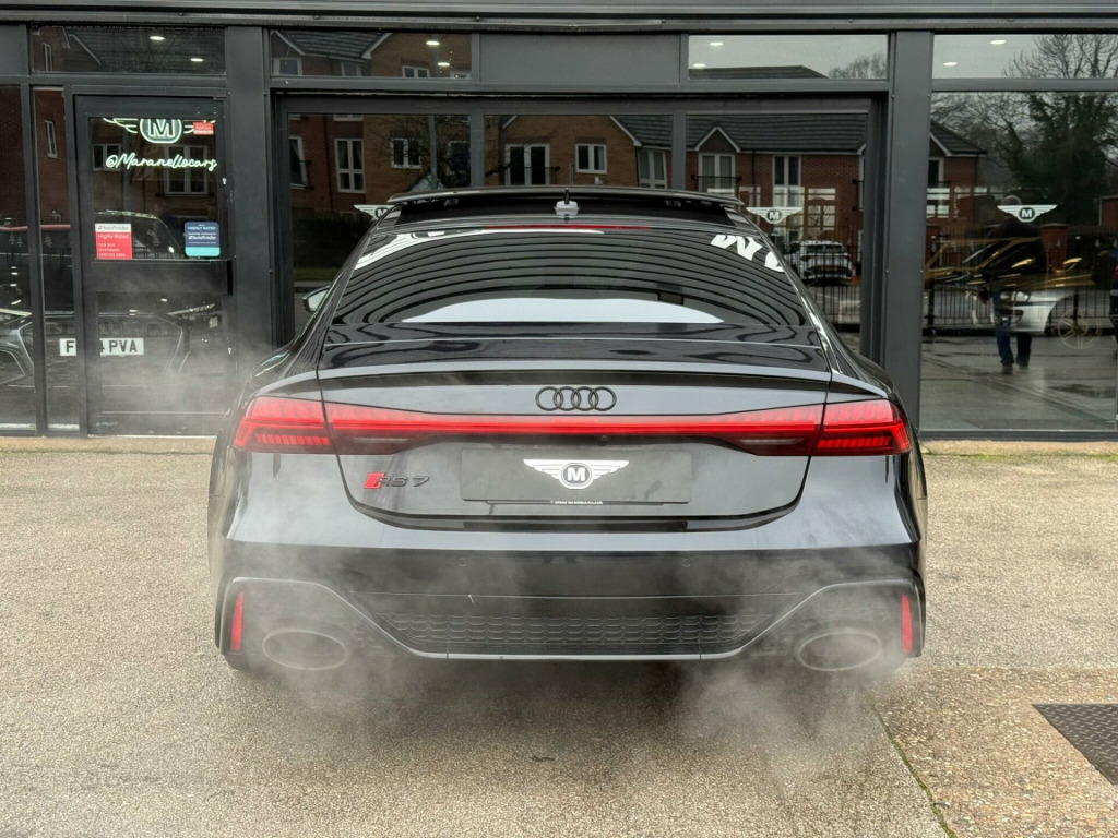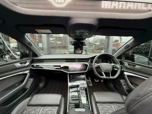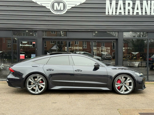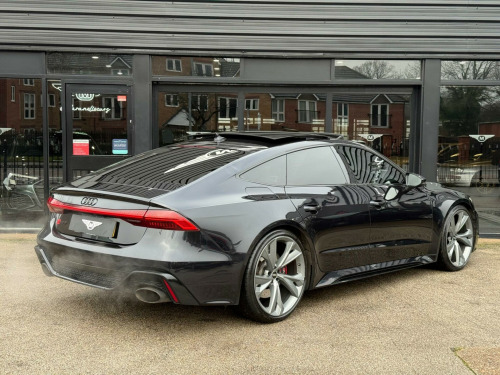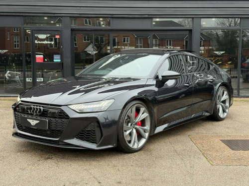 Full Specialist Service History, Panoramic Roof, Heated / Ventilated Seats, Multi Functional steering Wheel, Digital Dash, Heads up Display, Parking Cameras, Bang & Olufsen Sound SystemThis 2022 Audi RS7 TFSI V8 Vorsprung is a remarkable example of performance and luxury. Powered by a potent 4.0 litre petrol engine and featuring a sophisticated four wheel drive system, this Euro 6 compliant vehicle offers an exhilarating driving experience. The Vorsprung trim level ensures a wealth of premium features, including a Bluetooth interface for seamless connectivity, a City Assist Pack with Blind Spot Assistance for enhanced safety, and heated front and rear seats for year round comfort. Inside, you will find a 4 zone deluxe automatic climate control system and the impressive Audi Virtual Cockpit with an RS specific design and a 12.3 inch display, which also incorporates a Head Up Display.The performance of this RS7 is truly exceptional, capable of accelerating from 0 to 62 miles per hour in a mere 3.6 seconds, a figure that clearly sets it apart from many other vehicles in its class. Complementing this speed is a generously sized boot, offering ample practicality for your needs. This combination of rapid acceleration and spaciousness, alongside its advanced technology and comfort features, makes the 2022 Audi RS7 TFSI V8 Vorsprung a standout choice for those seeking a dynamic and well equipped car. ll leather package, inlays - matt brushed aluminium, valcona leather - black with black stitching honeycomb quilted design, rs steel brakes with red calipers, 2 usb-c ports with charging functionality in the rear, 22in alloy wheels - titanium matt gloss turned finish, 4-way electric lumbar support, 4-zone deluxe automatic climate control, abs - anti-lock braking system, ami - audi music interface, air quality pack, airbags - driver, airbags - front passenger, anti-theft alarm with tow-away protection, audi connect (3 year subscription from new), audi connect safety and service - e-call, audi connect with amazon alexa integration, audi drive select with efficiency, audi pre-sense front, audi smartphone interface, audi sport logo projection - audi beam - front and rear, audi virtual cockpit with rs specific design and 12.3in display, auto dimming and frameless rear view mirror, black cloth headlining, black mirror housings, bluetooth interface, camera based traffic sign recognition, city assist pack, comfort and sound package, dab digital radio, direct tyre pressure monitoring system, dynamic all-wheel steering, electric windows - front and rear, electrically adjustable front seats with driver memory function, electromechanical parking brake, extended led interior lighting package - multi-coloured, extended pedestrian protection measures, exterior mirrors - electrically adjustable - heated - folding and automatically-dimming, first aid kit and warning triangle, front centre armrest, front seat ventilation, front and rear floor mats, front and rear side airbags with head airbag system, gloss black styling package, hd matrix led headlamps with audi laser light with dynamic light design and dynamic turn signal, head-up display, headlight washers, heated front and rear seats, isofix child seat mounting and top tether - front passenger airbag deactivation, inlays - natural grey brown fine grain ash, keyless go, led rear combination lamps with dynamic light design and dynamic turn signal, lane departure warning, leatherette on upper instrument panel and door shoulders, mmi navigation with mmi touch, operating buttons in black - glass look with haptic feedback, panoramic glass sunroof, pedals and footrest - stainless steel, power door closure, power latching for the doors, power-operated tailgate, privacy glass in side and rear windows - acoustic glazing for side windows, rs flat bottomed leather multifunction steering wheel, rs illuminated door sill trims with rs lettering, rs specific front and rear bumpers, rs sport suspension plus with dynamic ride control - drc, rs sports seats, rs steel brakes with black calipers, radiator protective grille in honeycomb structure - gloss black with large front air inlets and rear diffuser in gloss black, rear spoiler, rear sports exhaust system - black, shift paddles in aluminium, storage package, top speed restriction increase to 174mph, tour pack, tow bar preparation, voice control system, wheel arch extensions