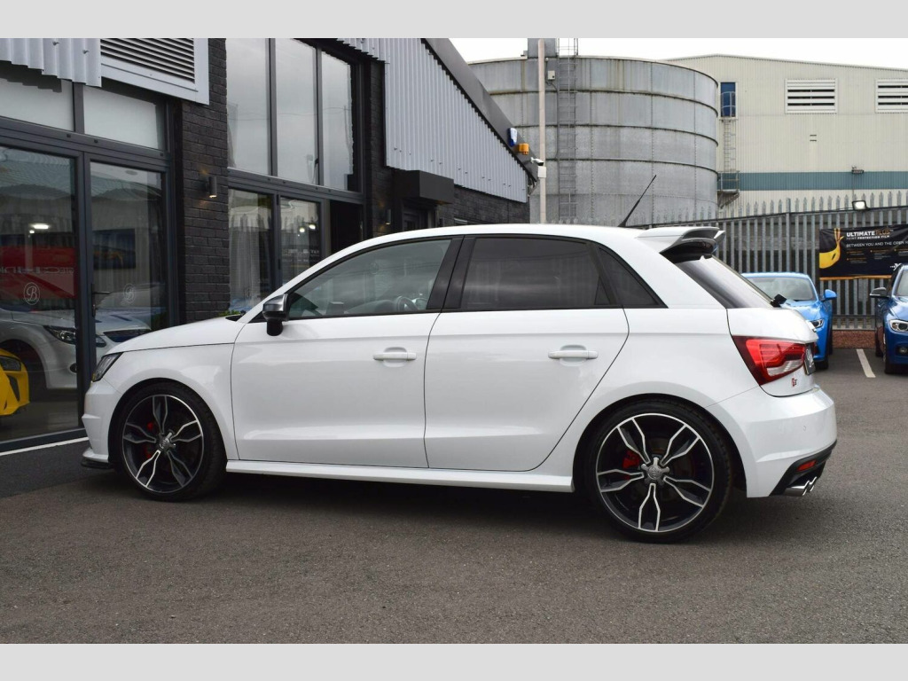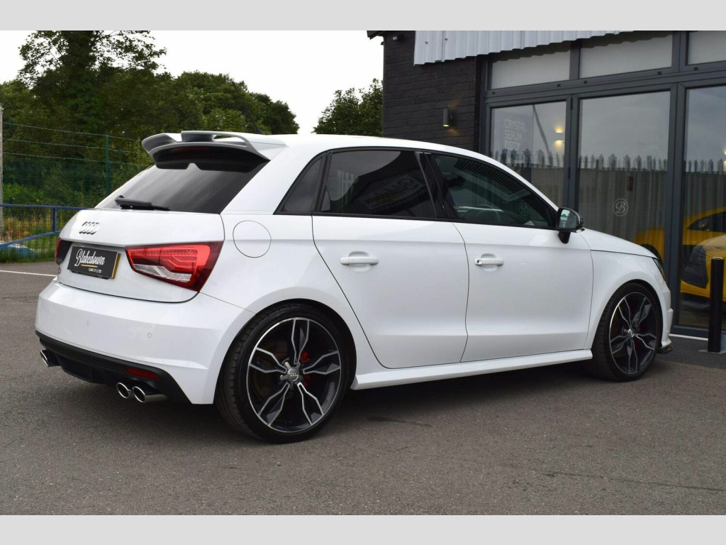2016 66 Audi S1 2.0 TFSI Sportback Quattro finished in sought after Glacier White Metallic (not to be confused with standard flat Ibis White) with full black Fine Nappa leather interior. Just 27250 miles covered which is supported by full annual documented service history. This consists of 2 Audi services, 2 specialist services (including Haldex) and we have also completed an additional service and brake fluid change ready for the next owner. This S1 is boasting an incredible factory spec with over £7000 in optional factory equipment fitted which includes: Quattro Exterior Styling Package (18 Diamond Cut Alloys, Rear Spoiler, Red Headlight Elements etc), Quattro Interior Styling Package (SuperSport Seats, Gloss Black Interior Trims, Nappa Leather with Yellow Contrast Stitching, Flat-Bottom Multifunction Steering Wheel etc), Comfort Package (Drivers Information System, Cruise control, Auto-dimming rear-view mirror, Rear parking sensors, Light and rain sensors and High-beam assist), Technology Package (High Resolution HDD Satellite Navigation with Audi Connect, Voice control, SD card readers, 40GB hard drive, Audi Connect services including Wi-fi hotspot, Traffic information online etc). BOSE Surround Sound System, Door Mirrors - Electrically Folding, Advanced Key, Privacy Glass, Brake Calipers - Red, Heated Front Seats, Front Centre Armrest and Aluminium Gear Knob. In addition to the fantastic factory spec this car has also been tastefully modified with the following upgrades: VRS Stage 1 ECU calibration (335bhp with dyno printout), Racingline induction kit with high flow tuebo intake, Racingline turbo muffler delete, 4H-Tech short shifter, Mid silencer delete, H&R lowering springs, TRC front splitter and Forge wheel spacers along with extended wheel bolts. This car is supplied with two keys and all correct documentation, handbooks etc. Beautiful condition inside and out - enthusiast owned and maintained with no expense spared. FINANCE FROM 6.9% APR | GTECHNIQ DETAILING & CERAMIC COATINGS | XPEL PAINT PROTECTION FILM