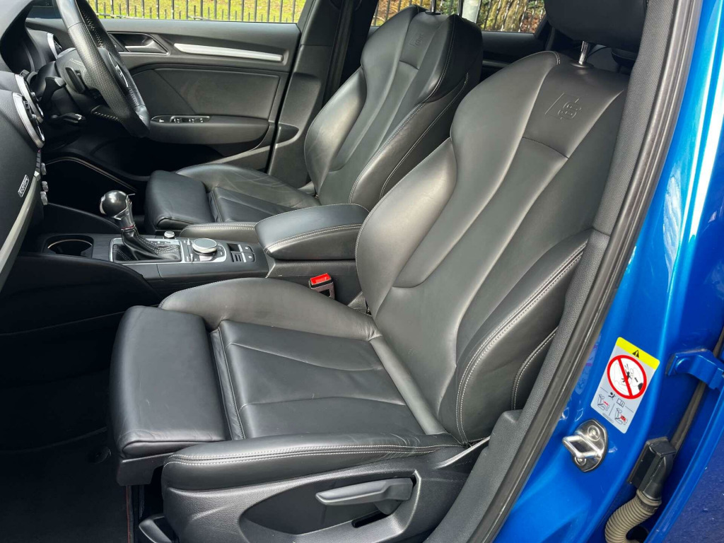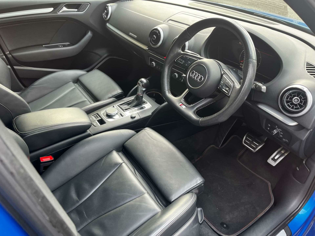 Introducing the Audi S3 - the epitome of luxury and performance in one sleek package. This stunning Blue Edition is sure to turn heads wherever you go.With its powerful 2.0 TFSI engine and Quattro 4WD system, the Audi S3 delivers an exhilarating driving experience like no other. The Semi-Auto transmission ensures smooth gear changes, while the sporty design and Black Edition trim add a touch of sophistication to this already impressive vehicle.Step inside the Audi S3 and you'll be greeted by a premium interior that exudes elegance and comfort. Packed with the latest technology and features, every journey is a pleasure in this exceptional car.Don't miss your chance to own the Audi S3 - the ultimate combination of style, performance, and luxury. Visit us today and experience the thrill of driving this incredible machine for yourself.. Storage Package, Voice Control System, Tyre Repair Kit, Tyre Pressure Warning Light, Tool Kit, Storage Compartments in the Door Side Trims-Centre Console-Under Drivers Seat, Steering Wheel - 3-Spoke Leather-Multi-function-Flat Bottomed-Sports-Shift Paddles, Sport Side Air Inlet Grille and Diffuser Insert, Split Folding Rear Seat Bench - 60-40 or Fully, Seats - Heated Front, Seat Belt Monitoring, S Sport Suspension, S Design Body Styling, Remote Central Locking, Rear Parking Sensors, Progressive Steering, Privacy Glass, Bang and Olufsen Sound System, Dual-Zone Electronic Climate Control, Door Mirrors - Electrically Adjustable and Heated with Integrated LED Side Indicators, Door Mirrors - Black Housing, DAB Digital Radio, Cruise Control, Colour Drivers Information System - DIS, Cloth Headlining in Black, CD Drive, Brake Calipers Painted in Black with S3 Logo at the Front, Bluetooth Interface, Black Styling Package, ESC - Electronic Stabilisation Control inc ABS - ASR and EDL, Auto-Dimming Rear-View Mirror, Audi Smartphone Interface, Audi Drive Select, Audi Connect Infotainment Services (3 Month Subscription From New), Audi Beam, Anti-Theft Alarm, Anti Theft Locking Wheel Bolts, Aluminium Interior Elements, 8 Passive Loudspeakers, 6-Airbag System with Knee Airbag for Driver, 2 x USB Charging Ports and 1 x AUX-IN, Instrument Dials with S3 Logo, Platinum Grey S Grille with Chrome Plated Dual Struts and S3 Logo, Pedals in Stainless Steel, Online Media Streaming, Manual Seat Adjustment, MMI Radio Plus with 7in Electrically Retractable Colour MMI Screen, MMI Navigation - SD Card Based, Light and Rain Sensor, Lashing Points in Luggage Compartment, LED Interior Light Package, LED Headlights with LED Rear Lights and Dynamic Rear Indicators, Interior Lighting, 18in Alloy Wheels - 5-Arm Trapezoid Design Audi Sport in Gloss Anthracite Black - Diamond Cut Finish, Inlays - Matt Brushed Aluminium, Illuminated Door Sill Trims with S Logo, ISOFIX Child Seat Mounting and Top Tether, Hill Hold Assist, Headlights Washers, Front Centre Armrest, First Aid Kit and Warning Triangle, Exhaust Tailpipe - Dual-Branch Oval Twin with Chrome Finish, Email and Text Messages can be Displayed on your Vehicles MMI, Electric Windows - Front.