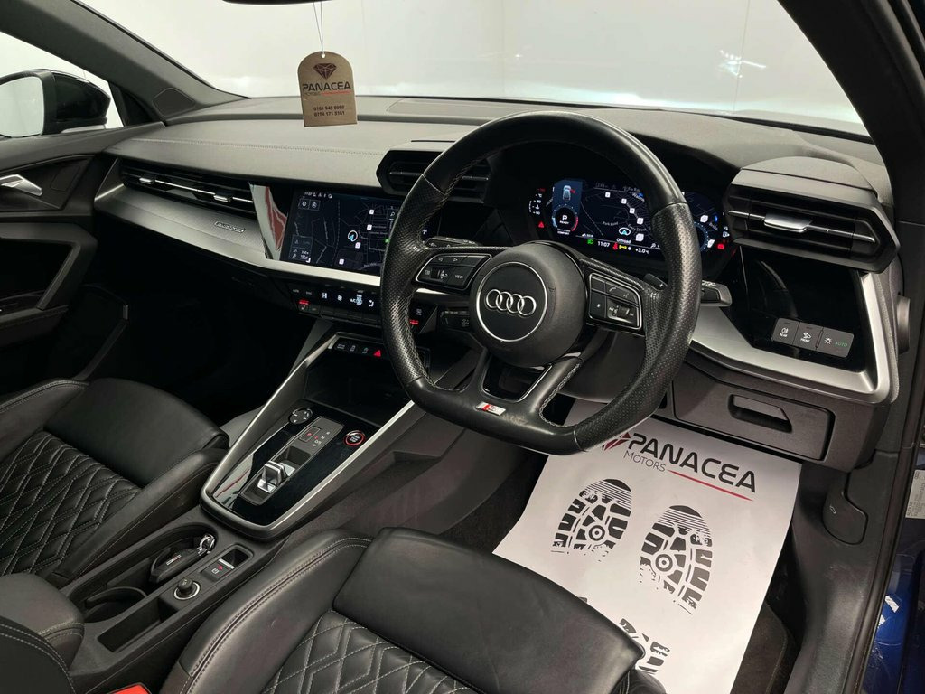 REF : AUDI S3 2.0 TFSI SPORT BACK 5DR PETROL S TRONIC QUATTRO EURO 6 310BHP FINISHED IN AUDI EXCLUSIVE NAVARA BLUE WITH BLACK LEATHER SPORT SEATS INTERIOR. THIS HIGH SPECIFICATION EXAMPLE BOASTS A FULL AUDI SERVICE RECORD EQUIPPED WITH OVER ?10K OF FACTORY EXTRAS WHICH INCLUDE | TECHNOLOGY PACK | AUDI VIRTUAL DASH | BLACK STYLING PACK | HEATED FRONT SEATS | REVERSING CAMERA | FRONT AND REAR PARKING SENSORS | 3 SPOKE MULTI FUNCTIONAL STEERING WHEEL | EMERGENCY ASSIST | KEYLESS GO | CRUISE CONTROL | 19 INCH 5 ARM TRAPEZOID ALLOY WHEELS | STORAGE PACK | 2 KEYS | APPLE CAR PLAY | HEATED AND FOLDING MIRRORS | BE FAST - A RARE FIND IN THIS SPECIFICATION AND NOT TO BE MISSED.... Further to this all vehicles are provided with a comprehensive AA Dealer Care Extended Guarantee and Full AA Roadside, Recovery and Home Start & Onward travel (where not covered under the manufactures own warranty). HPI checks are carried out making sure all cars are clear from any concern, offering you total piece of mind. Every vehicle's mileage is fully guaranteed as genuine. Included with your purchase you will receive a minimum of 3 months Warranty with the option to extended and tailor your package at the time of purchase. Our vehicles are supplied fully valeted to the highest standards and include up to date servicing with a minimum of 9 months MOT. We are regulated by the FCA and can provide a range of flexible finance options, tailoring a package to your needs. We aim to a make the numbers 12v Socket and Storage Compartment in Fr, 18in Alloy Wheels - 10-Spoke Star Style, 19in Alloy Wheels - 5-Arm Trapezoid Desi, 2 USB-C Ports with Charge and Data Funct, 4-Way Lumbar Support for Front Seats, 6 Passive Loudspeakers, Advanced Key, Airbags - Driver and Front Passenger wit, Aluminium Interior Elements, Aluminium Look Door Mirror Housings, Aluminium Window Trims, Anti Theft Locking Wheel Bolts, Anti-Theft Alarm, Audi Beam, Audi Connect Emergency Call and Service, Audi Connect Navigation and Infotainment, Audi Drive Select, Audi Pre-Sense Front with Pedestrian and, Audi Smartphone Interface, Audi Virtual Cockpit, Auto Dimming and Frameless Rear View Mir, Automatic Start-Stop System w