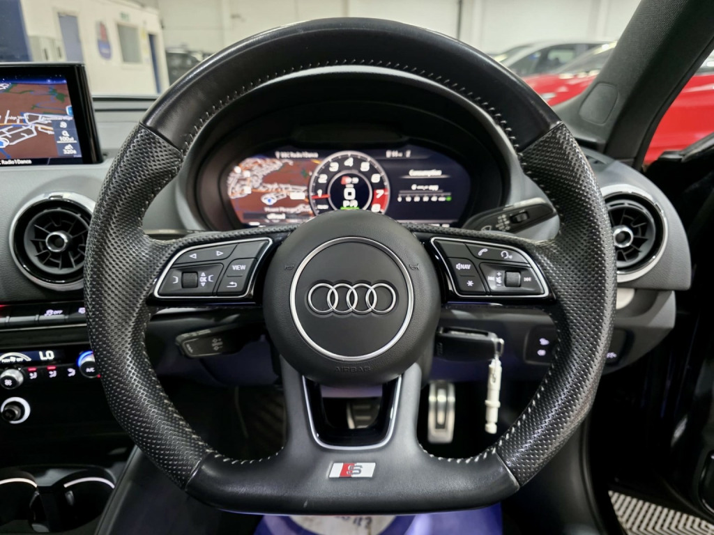 2020 20 AUDI S3 2.0 TFSI BLACK EDITION SPORTBACK 5DR QUATTRO DSG AUTO. , This Vehicle Comes With Warranty As Standard, Please Call Us For More Details!, , Stunning Example With Only 2 Previous Keepers From New Presented In Audi Mythos Black Paintwork With Contrasting Black Super Sport Leather Seats Complete With 18 Inch Revo RF018 Alloy Wheels Finished In Gloss Black Paintwork Wrapped In Four Michelin Tyres. , Enthusiast Owned Example Covering 49,000 Miles From New, Backed Up With Full Audi Service History Which Is Up To Date With The Digital Service Record Which Is To Hand. Very Clean Throughout With Excellent Bodywork, Unmarked Interior And Outstanding Wheels, New Owner Wont Be Disappointed. This Car Comes With Two Keys. , Its 2.0 Litre Turbo Petrol Engine Produces 296Bhp And 400Nm Of Torque. This Is Matched With Its 7 Speed Automatic Gearbox With The Option Of Changing Gear With F1 Style Paddle Shifters Partnered With Its Quattro All Wheel System Which Makes For A Superb Drive!, , This Example Benefits From Some Subtle Modifications Including The Following;, *Revo RF018 Alloy Wheels. *Racing Line Lowering Springs. *RS Front Grille. *Exhaust Resonator Delete, *C Hook Brake Discs. *Maxton Spoiler Lip. , Outstanding Spec Includes;, *Audi Mythos Black Paintwork. *Black Heated Leather Super Sport Seats. *18 Inch Revo RF018 Alloy Wheels Finished In Gloss Black Paintwork. *Electronic Tilt And Slide Panoramic Sunroof. *Audi Drive Select. (Efficiency, Comfort, Auto, Dynamic, Individual), *Multi Function Steering Wheel. *Cruise Control System. *Virtual Dash. *Digital Dual Climate Control. *Black Exterior Styling Pack. *Electric Folding Wing Mirrors. *Heated Wing Mirrors. *Parking Sensors. *Automatic Xenon Headlights. *Automatic Windscreen Wipers. *Upgraded Bang & Olufsen Sound System. *Audi Multi Media Interface. *Apple Car Play. *Satellite Navigation. *DAB Radio. *Bluetooth Connectivity. *Electronic Parking Brake. *Illuminated Door Sills. *Split Folding Rear Seats. , Excellent Standard Spec Includes; Height Adjustable Steering Wheel, Cup Holders, Traction Control, Arm Rest, Auto Dimming Rear View Mirror, 12V And Much More. , All Our Vehicles Have Been Road Tested With Multi Point Checks And We Welcome RAC Or AA Inspections, For Your Added Peace Of Mind All Of Our Vehicles Are HPI Clear. , We Can Provide A Decision Within 30 Minutes Please Call Us To Discuss Your Requirements, Our Finance Partners Include Close Brothers | CF247 | Motonovo | Evolution And Others. , We Offer Full Dealer Facilities Including A Comfortable Customer Office An Indoor Viewing Area And We Accept All Methods Of Payment, We Are Open 7 Days A Week Please Call Ahead To Ensure The Vehicle Of Interest Is Still Available, Sales 0161 336 2007 Or General Enquiries 0161 335 0008. , Every effort has been made to ensure the vehicle has been described accurately in accordance with its age and mileage, The data above details the usual specification of the most recent model of this vehicle and may vary for the actual vehicle for sale. , Please always check the vehicle specification prior to purchase. If You Have Any Questions Please Get In Touch And We Will Be Happy To Help. , All Our Vehicles Come With Warranty Included, Extended Warranty Options Available, We Offer Finance With Competitive HP And PCP Deals Available, Visit Our Website To Use Our Online Calculator And Apply Online Today!