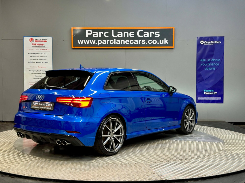 Parc Lane Cars of Gosforth proudly present this beautiful Audi S3 2.0 TFSI Quattro Black Edition, finished in the highly desirable Ara Blue Crystal Effect, complemented by black Fine Nappa leather Super Sport seats for a premium, performance-focused interior.A superb example with strong performance, quattro grip, desirable factory upgrades and an excellent maintenance record.Mileage & Service HistoryThis Audi S3 has covered 91,000 miles and comes with a comprehensive service history, serviced at Audi and reputable independent specialists at the following intervals:• 29/04/2019 - 17,641 miles - Audi• 16/03/2020 - 30,728 miles - Audi• 07/05/2021 - 38,622 miles - Independent• 10/03/2022 - 48,221 miles - Independent• 05/12/2022 - 56,702 miles - Independent• 23/11/2023 - 67,939 miles - Independent• 10/10/2024 - 79,041 miles - Independent• 10/06/2025 - 88,045 miles - IndependentSupplied with 2 remote keys.Factory-Fitted Extras (Approx. £5,000 of Options)• Technology Pack Advanced• Audi Magnetic Ride• 19'' 5-V-Spoke Matt Titanium Diamond-Cut Alloy Wheels• Front Super Sport Seats in Fine Nappa Leather with S Embossing• Privacy Glass• Ara Blue Crystal Effect PaintworkA highly desirable and sought-after specification.Vehicle HighlightsThis Audi S3 Black Edition combines performance, style and technology in one exceptional package. The 2.0 TFSI engine delivers thrilling acceleration, while the quattro all-wheel-drive system provides confidence and control in all conditions.Finished in stunning Ara Blue Crystal Effect, paired with gloss black exterior styling and premium Nappa leather Super Sport seats, this S3 stands out for all the right reasons.A genuinely cherished example and not one to be missed.Finance & Part ExchangeFinance options are available, and part exchange is welcome. Our team can provide tailored finance packages to suit your needs.Contact Parc Lane Cars Gosforth today to arrange a viewing or test drive of this stunning Audi S3 Black Edition.Listed specification is shown as accurately as possible. Errors may occur. Please confirm details before purchase.REG NO. ND67DJJ in alloy wheels - 5-arm turbine design in magnesium look - diamond cut finish, anti theft locking wheel bolts, black styling package, door mirrors - black housing, door mirrors - electrically adjustable and heated with integrated led side indicators, electric windows - front, exhaust tailpipe - dual-branch oval twin with chrome finish, privacy glass, s design body styling, s3 front bumper, s3 roof spoiler, space saver spare wheel, 2 x usb charging ports and 1 x aux-in, audi connect infotainment services - 3 month trial, audi smartphone interface, bluetooth interface, cd drive, dab digital radio, mmi navigation - sd card based, mmi radio plus with 7in electrically retractable colour mmi screen, 6-airbag system with knee airbag for driver, anti-theft alarm, esc - electronic stabilisation control inc abs - asr and edl, electromechanical parking brake, first aid kit, isofix child seat mounting and top tether for front passenger and outer rear seats, remote central locking with 2 fold away keys, seat belt monitoring, warning triangle, aluminium interior elements, auto-dimming rear-view mirror, dual-zone electronic climate control, front centre armrest, front and rear floor mats, heated front seats, illuminated door sill trims with s logo, inlays - matt brushed aluminium, instrument dials with s3 logo, led interior light package, luggage compartment - lashing points x4, manual front seat adjustment, non-smoking package, pedals in stainless steel, seats - split folding rear - 60-40, steering wheel - 3-spoke leather-multifunction-flat bottomed, storage compartments in the door side trims-centre console-under drivers seat, storage package, tool kit and car jack, audi beam, headlights washers, led headlights with led rear lights and dynamic rear indicators, light and rain sensor, audi drive select, colour drivers information system - dis, cruise control, progressive steering, rear parking sensors, s sport suspension, tyre pressure monitoring system, voice control