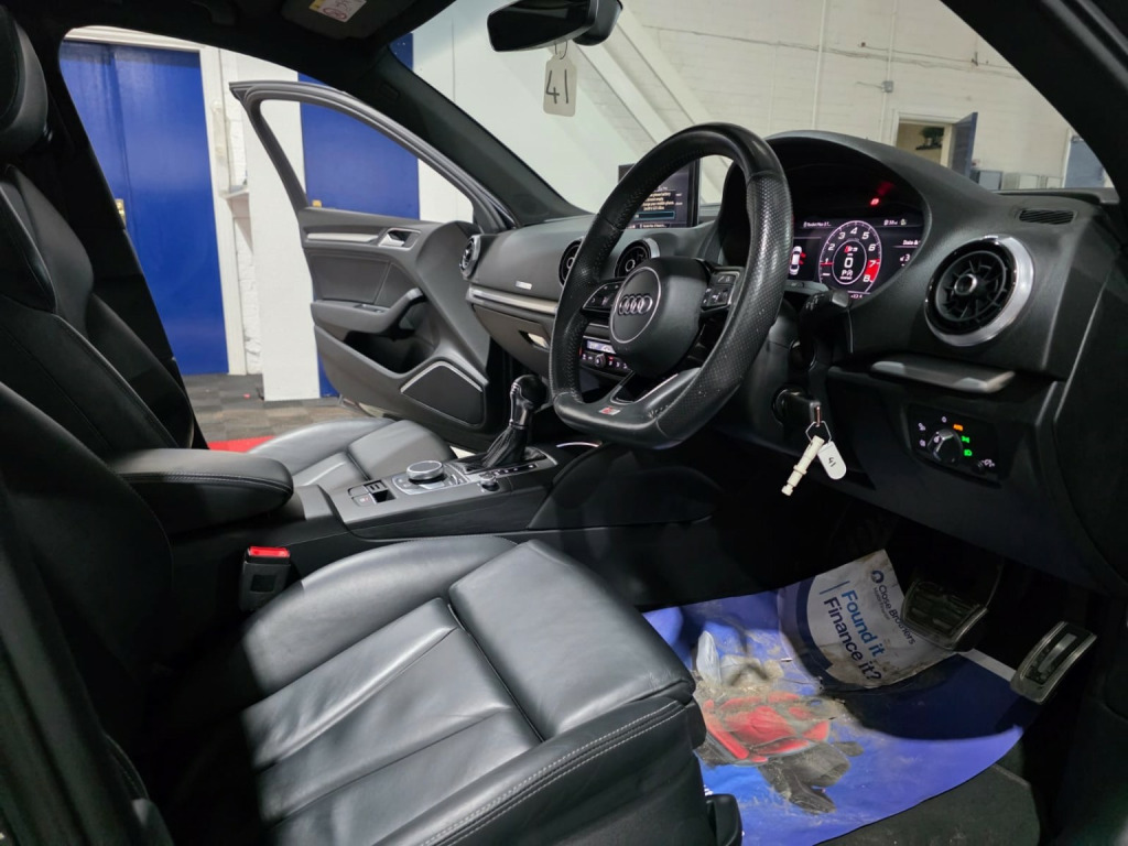 This 2017 Audi S3 2.0 TFSI Black Edition PANROOF+VIRTUALDASH+19S+2FORMER+BANGOLUFSEN Saloon is currently available for £21,990 in Dukinfield with Petrol engine and Auto Clutch Manual gearbox. For more information or to arrange a viewing, click here to send us an email using form below.