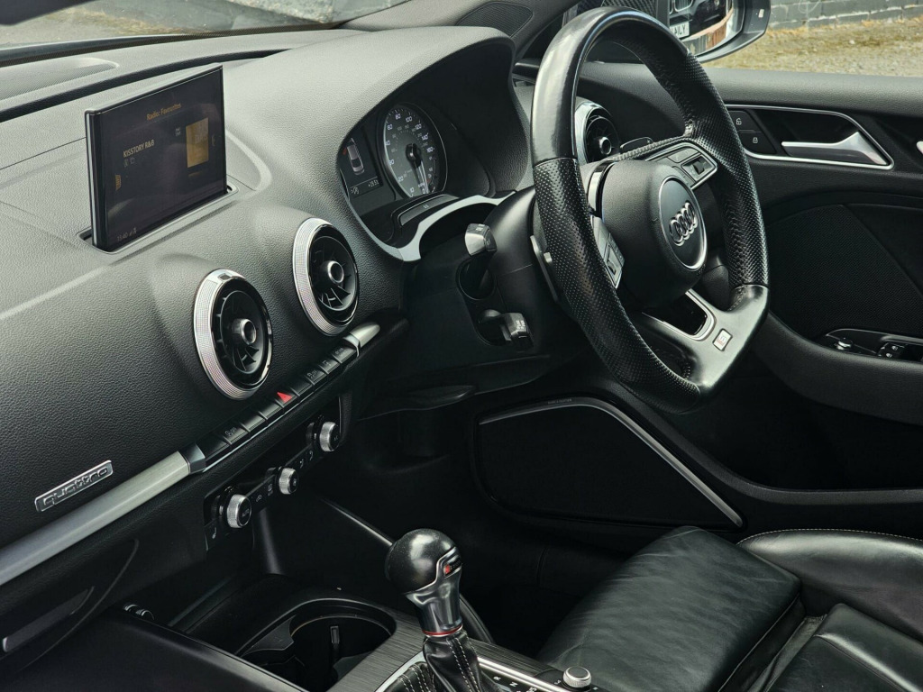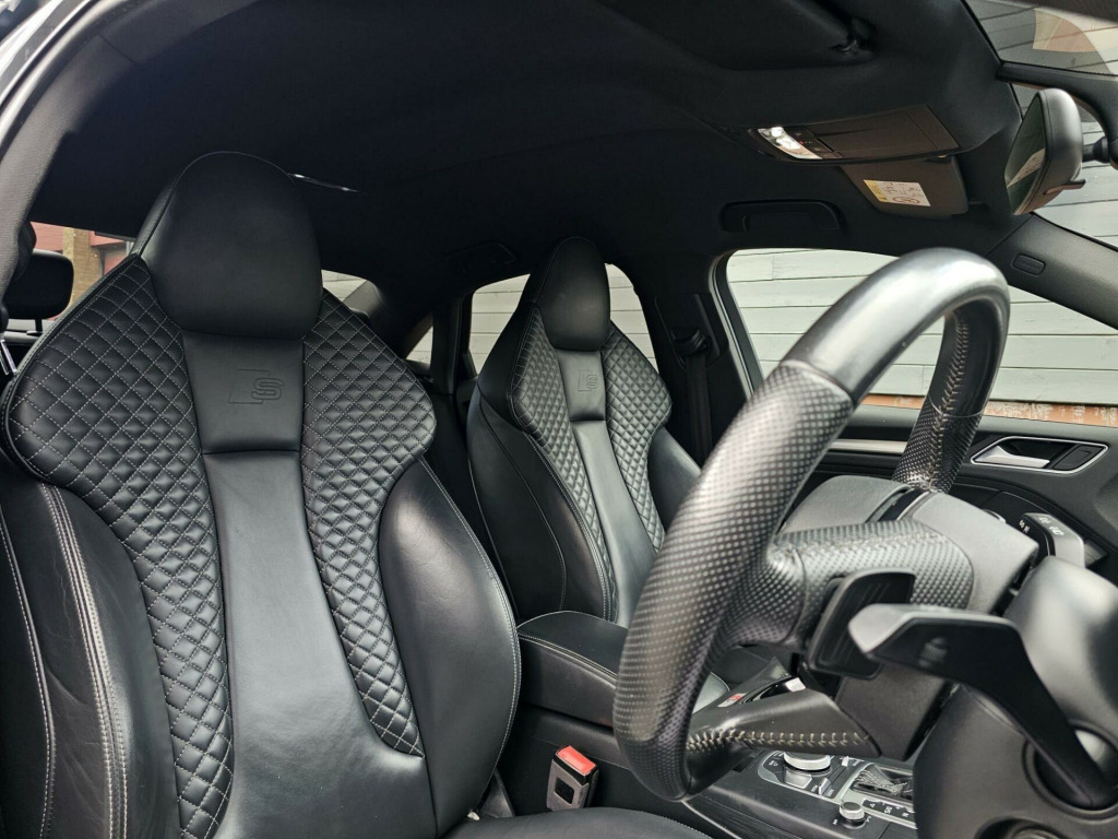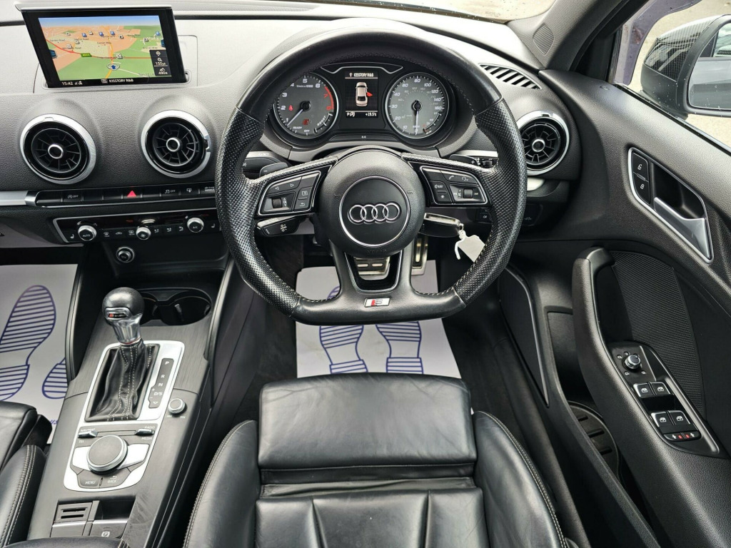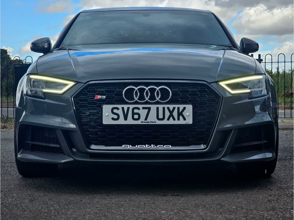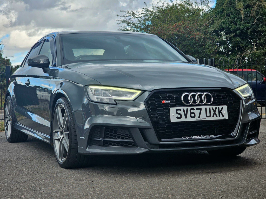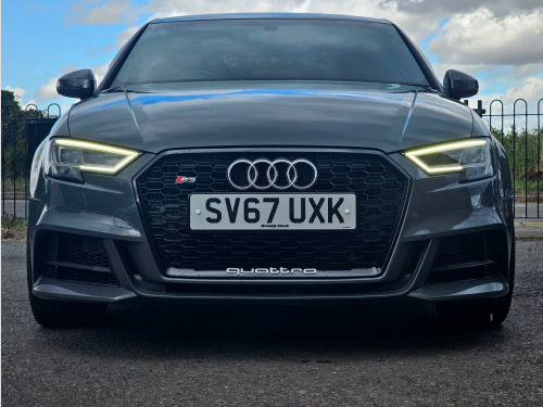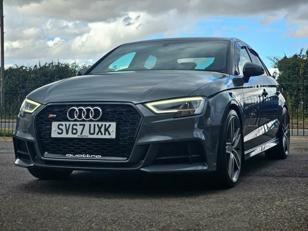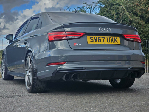 This 2017 Audi S3 TFSI Black Edition boasts a full service history, with its most recent service completed on 8th April 2025 at 77,181 miles, ensuring excellent provenance. This stylish hatchback features a powerful 2.0 litre petrol engine paired with Audi's renowned four wheel drive system, delivering a dynamic driving experience. As a Euro 6 compliant vehicle, it meets modern emissions standards. The Black Edition trim enhances its appeal with striking LED headlights and rear lights, complete with dynamic rear indicators. Inside, you'll find comfort and convenience with dual zone electronic climate control and the impressive Bang and Olufsen sound system. Connectivity is seamless thanks to the integrated Bluetooth interface, and parking is made effortless with the Park Assist system, which includes front and rear parking sensors. A 12 month MOT will be provided upon purchase, offering further peace of mind.The performance of this Audi S3 is truly exceptional, with a rapid 0 to 62mph acceleration time of just 4.6 seconds, indicating its superior capability compared to many other vehicles in its class. Furthermore, its fuel economy is a notable highlight, achieving an impressive 44 miles per gallon, demonstrating a strong balance between performance and efficiency. This combination of exhilarating speed and sensible running costs makes the 2017 Audi S3 TFSI Black Edition a compelling choice for those seeking a premium driving experience.The car has been lightly modified with Akrapovic Exhaust system and an induction air kit.In Addition the car comes with 2 Keys, a long MOT, A mechanical/safety check and will be valeted. ----------------------------------FREE DELIVERY AVAILABLE! NATIONWIDE CONTACTLESS DELIVERY (terms and conditions apply).We include 90 day warranty as standard plus an option to extend a comprehensive warranty for up to 3 years!Reserve the car for £99 (Refundable)We accept all major debit and credit cards. Bank transfer and cashFinance also available, personalized to meet your requirements. Part exchange welcome. rk assist, 19in alloy wheels - 5-v spoke design in matt titanium look - diamond cut finish, 19in alloy wheels - 5-arm wing design in gloss titanium look, 2 x usb charging ports and 1 x aux-in, 6-airbag system with knee airbag for driver, aluminium interior elements, anti theft locking wheel bolts, anti-theft alarm, audi beam, audi connect infotainment services - 3 month trial, audi drive select, audi magnetic ride, audi smartphone interface, bang and olufsen sound system, black styling package, bluetooth interface, cd drive, child locks - manual, colour drivers information system - dis, cruise control, dab digital radio, door mirrors - black housing, door mirrors - electrically adjustable and heated with integrated led side indicators, dual-zone electronic climate control, esc - electronic stabilisation control inc abs - asr and edl, electric windows - front and rear, electromechanical parking brake, exhaust tailpipe - dual-branch oval twin with chrome finish, first aid kit, front centre armrest, front and rear floor mats, headlights washers, heated front seats, isofix child seat mounting and top tether, illuminated door sill trims with s logo, immobiliser, inlays - matt brushed aluminium, instrument dials with s3 logo, led headlights with led rear lights and dynamic rear indicators, led interior light package, light and rain sensor, luggage compartment - lashing points x4, mmi navigation - sd card based, mmi radio plus with 7in electrically retractable colour mmi screen, manual front seat adjustment, non-smoking package, pedals in stainless steel, privacy glass, progressive steering, remote central locking with 2 fold away keys, s design body styling, s sport suspension, s3 front bumper, s3 rear spoiler, seat belt monitoring, seat belt reminder for all seats, seats - split folding rear - 60-40, space saver spare wheel, sport side air inlet grille and diffuser insert, steering wheel - 3-spoke leather-multifunction-flat bottomed-shift paddles, storage compartments in the door side trims-centre console-under drivers seat, storage package, tool kit and car jack, tyre pressure monitoring system, warning triangle, window surrounds - aluminium