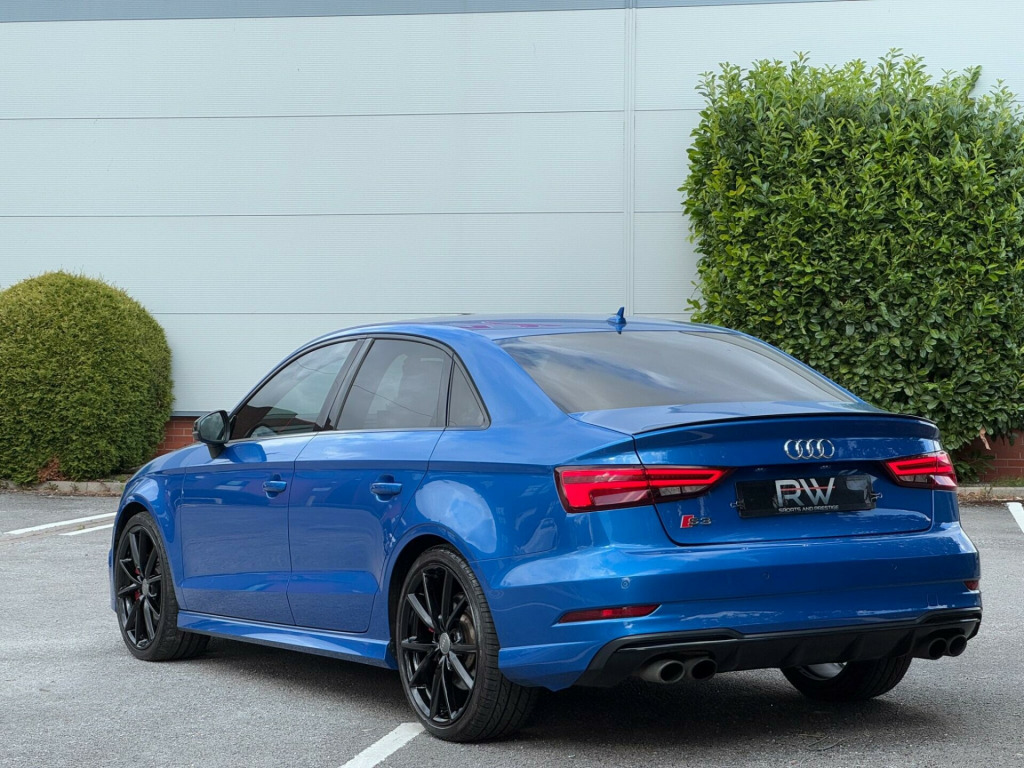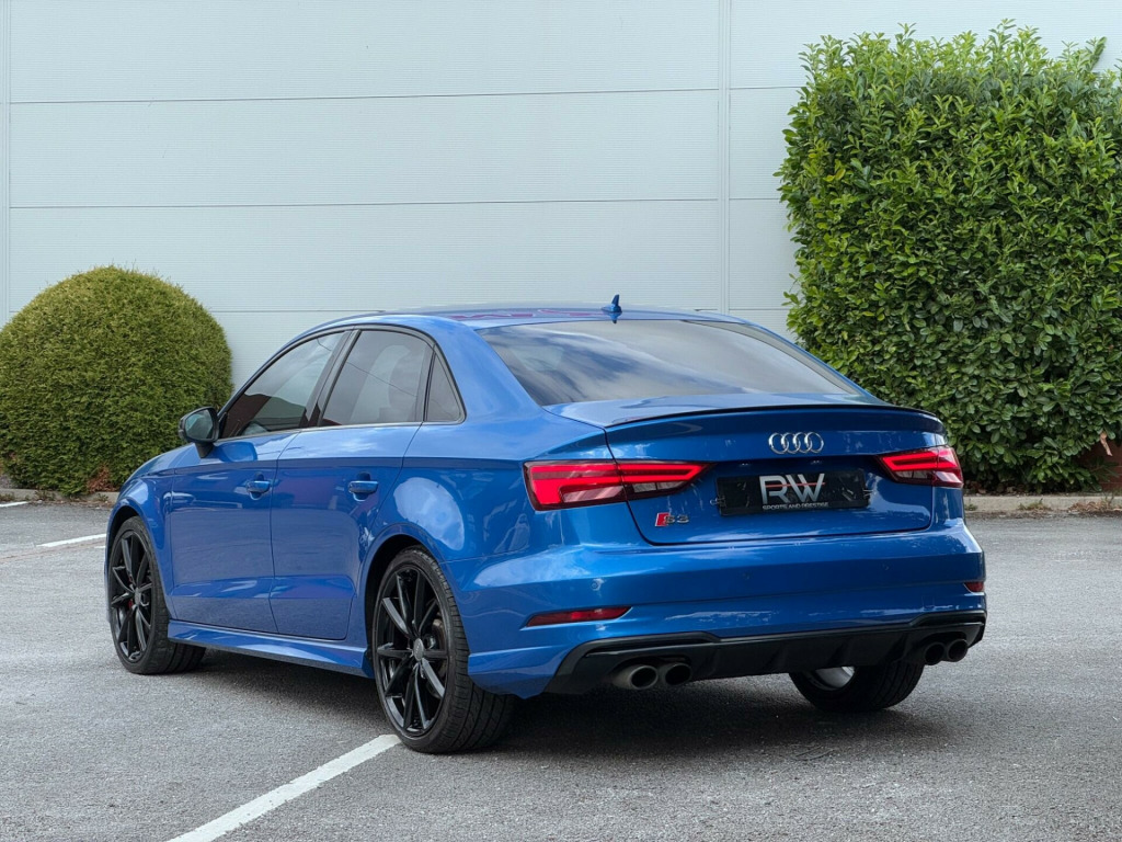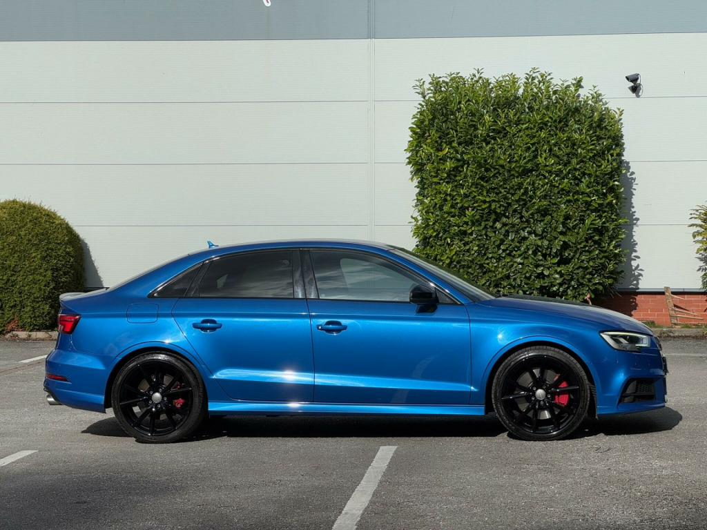 AUDI S3 2.0 TFSI BLACK EDITION S TRONIC QUATTRO EURO 6|OVER £3,900 IN OPTIONAL EXTRAS|RS LOOKS | TECHNOLOGY PACKAGE PLUS|SUSPENSION CONTROL| DRIVE SELECT MODES| SALOON MODEL| RED BRAKE CALLIPERS|AUDI PARKING PLUS|LED INTERIOR LIGHTING|STORAGE PACKAGE|HIGH BEAM ASSIST|19'' ALLOYS| FLAT BOTTOM STEERING WHEEL|HEATED SEATS|ARA BLUE|BLACK EDTION| AUDI SERVICE HISTORY|PARKING SENSORS|PRIVACY GLASS| CRYSTAL EFFECT PAINT| RECENTLY SERVICED @ 57K| FINANCE ARRANGED £0 DEPOSIT NEEDED | PART EXCHANGE WELCOME | FINANCE DEALS AVAILABLE | HP FINANCE DEALS AVAILABLE | RAC APPROVED DEALERSHIP| HIGHLY RATED FOR OUR CUSTOMER SERVICE OVER 300 5 STAR REVIEWS ON AUTOTRADER. 19in Alloy Wheels - 5-Arm Wing Design in Gloss Titanium Look, 2 x USB Charging Ports and 1 x AUX-IN, 6-Airbag System with Knee Airbag for Driver, Aluminium Interior Elements, Anti Theft Locking Wheel Bolts, Anti-Theft Alarm, Audi Beam, Audi Connect Infotainment Services - 3 Month Trial, Audi Drive Select, Audi Magnetic Ride, Audi Smartphone Interface, Bang and Olufsen Sound System, Black Styling Package, Bluetooth Interface, CD Drive, Child Locks - Manual, Colour Drivers Information System - DIS, Cruise Control, DAB Digital Radio, Door Mirrors - Black Housing, Door Mirrors - Electrically Adjustable and Heated with Integrated LED Side Indicators, Dual-Zone Electronic Climate Control, ESC - Electronic Stabilisation Control inc ABS - ASR and EDL, Electric Windows - Front and Rear, Electromechanical Parking Brake, Exhaust Tailpipe - Dual-Branch Oval Twin with Chrome Finish, First Aid Kit, Front Centre Armrest, Front and Rear Floor Mats, Headlights Washers, Heated Front Seats, ISOFIX Child Seat Mounting and Top Tether, Illuminated Door Sill Trims with S Logo, Immobiliser, Inlays - Matt Brushed Aluminium, Instrument Dials with S3 Logo, LED Headlights with LED Rear Lights and Dynamic Rear Indicators, LED Interior Light Package, Light and Rain Sensor, Luggage Compartment - Lashing Points x4, MMI Navigation - SD Card Based, MMI Radio Plus with 7in Electrically Retractable Colour MMI Screen, Manual Front Seat Adjustment, Non-Smoking Package, Pedals in Stainless Steel, Privacy Glass, Progressive Steering, Remote Central Locking with 2 Fold Away Keys, S Design Body Styling, S Sport Suspension, S3 Front Bumper, S3 Rear Spoiler, Seat Belt Monitoring, Seat Belt Reminder for All Seats, Seats - Split Folding Rear - 60-40, Space Saver Spare Wheel, Sport Side Air Inlet Grille and Diffuser Insert, Steering Wheel - 3-Spoke Leather-Multifunction-Flat Bottomed-Shift Paddles, Storage Compartments in the Door Side Trims-Centre Console-Under Drivers Seat, Storage Package, Tool Kit and Car Jack, Tyre Pressure Monitoring System, Warning Triangle, Window Surrounds - Aluminium, Technology Package, Technology Package - Advanced, 19in Alloy Wheels - 5-V Spoke Design in Matt Titanium Look - Diamond Cut Finish, Extended Interior Upholstery Pack.