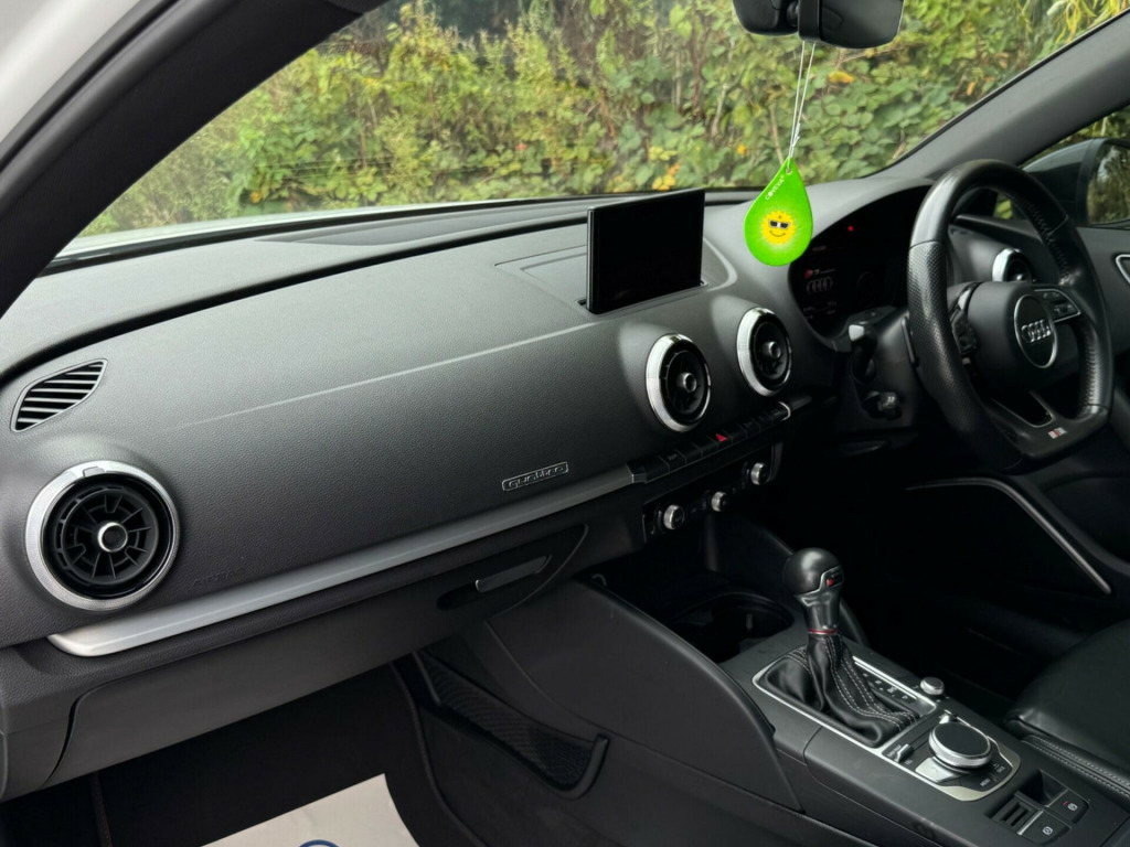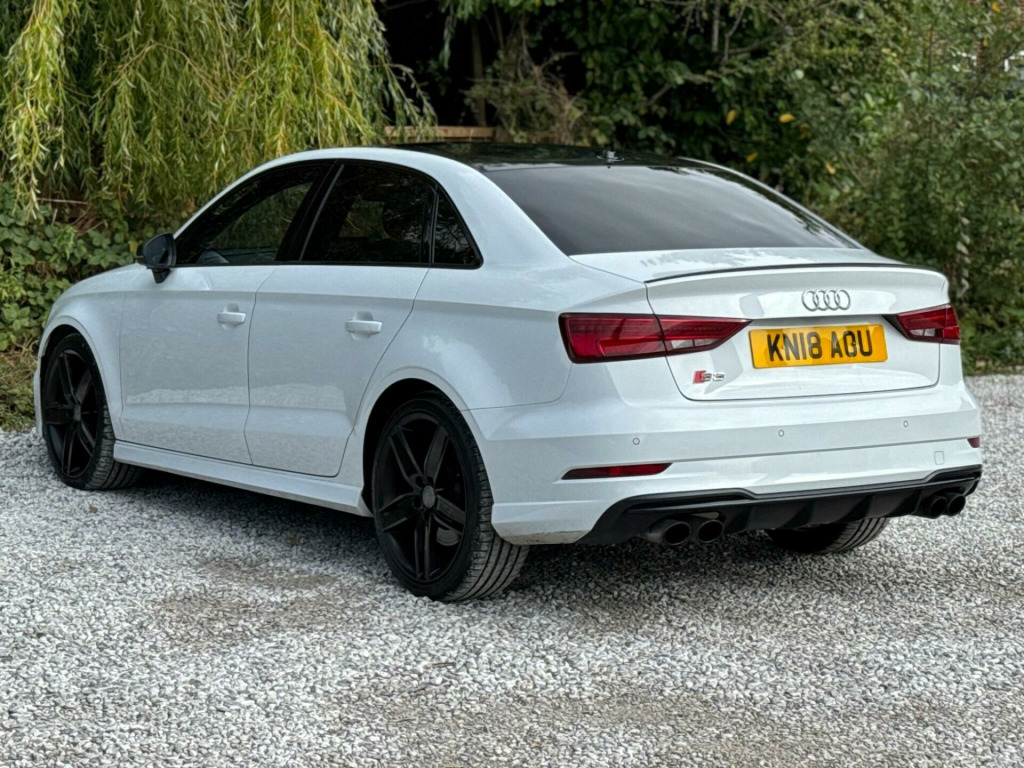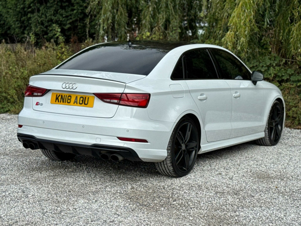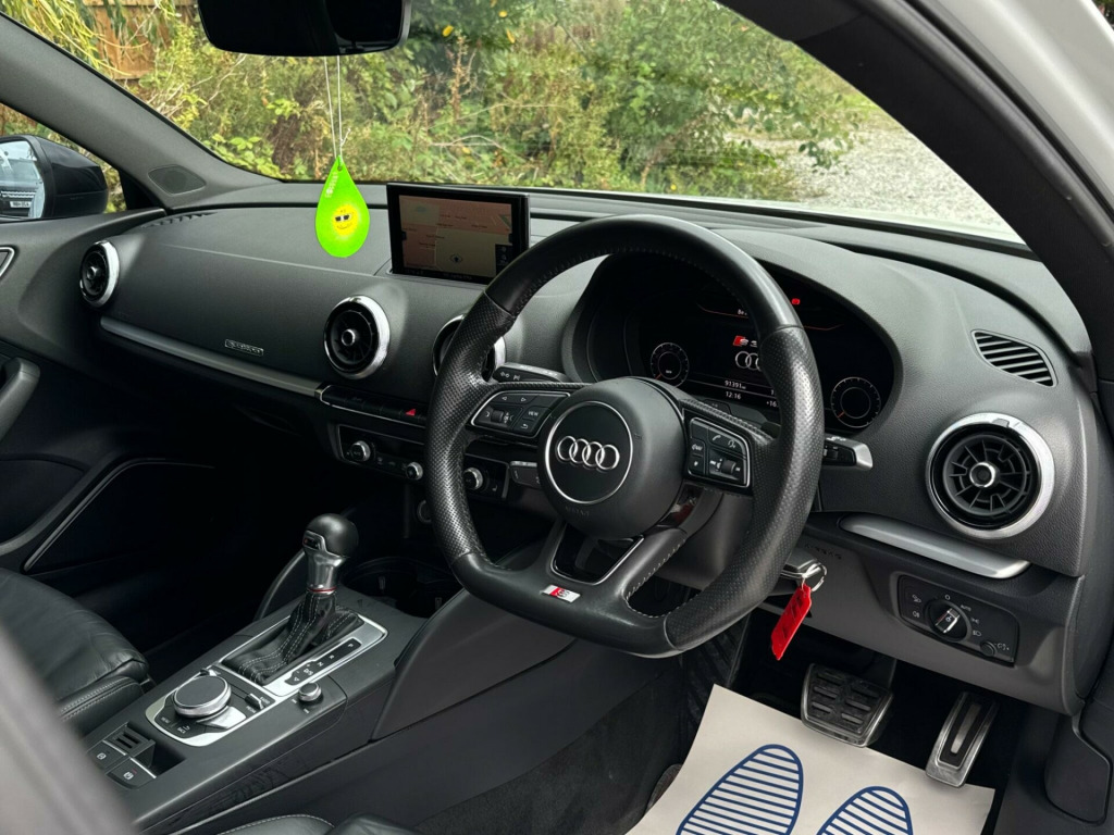 2 FORMER KEEPERS2 KEYSFULL SERVICE HISTORY - 5 SERVICE STAMPS - 2 MAIN DEALER SERVICES - MOST RECENT SERVICE DONE 90,138LOGBOOK£2,995 WORTH OF EXTRASOptional Equipment when new£2,995inc. VATTechnology Pack Advanced£1,395Front Super Sport seats with 'S' embossed logo in Fine Nappa leather£650Metallic Paint£550LED Interior Lighting Pack£225Storage Pack£175Glacier white, metallic-Matt brushed aluminium-Total price when new£41,455inc. VATAdaptive Cruise Control including Pre-Sense FrontVery rareTechnology PackageValuableMatrix LED Exterior Lighting PackRareDoor Mirrors - Heated-Electrically Adjustable-FoldingRare19in Alloy Wheels - 5-V Spoke Design in Matt Titanium Look - Diamond Cut FinishFine Nappa Leather - S Embossed Sports Seats - Black with Rock Grey StitchingEquipment:Navigation HDDNavigation SystemParking Sensor(s)Climate ControlLeather Trim19'' Alloy WheelsPrivacy GlassThis 2018 Audi S3 TFSI Black Edition boasts a clear vehicle history, offering you peace of mind. Finished in the striking Black Edition trim, this model features a powerful 2.0 litre petrol engine paired with Audi's renowned four wheel drive system, ensuring excellent traction and performance. It meets Euro 6 emissions standards. Inside, you'll find comfort and convenience with dual zone electronic climate control and heated front seats. The car also includes a Bluetooth interface for seamless connectivity, and automatic LED headlights with dynamic rear indicators, complemented by a light and rain sensor for effortless driving.Experience impressive performance with this Audi S3, capable of accelerating from 0 to 62 miles per hour in just 4.6 seconds. This rapid acceleration indicates a superior driving experience compared to many other vehicles. Furthermore, its fuel economy is a notable highlight, achieving an impressive 44 miles per gallon, demonstrating its efficiency alongside its performance capabilities. aptive cruise control including pre-sense front, technology package, matrix led exterior lighting pack, door mirrors - heated-electrically adjustable-folding, 19in alloy wheels - 5-v spoke design in matt titanium look - diamond cut finish, fine nappa leather - s embossed sports seats - black with rock grey stitching, 19in alloy wheels - 5-arm wing design in gloss titanium look, 2 x usb charging ports and 1 x aux-in, 6-airbag system with knee airbag for driver, aluminium interior elements, anti theft locking wheel bolts, anti-theft alarm, audi beam, audi connect infotainment services - 3 month trial, audi drive select, audi magnetic ride, audi smartphone interface, bang and olufsen sound system, black styling package, bluetooth interface, cd drive, child locks - manual, colour drivers information system - dis, cruise control, dab digital radio, door mirrors - black housing, door mirrors - electrically adjustable and heated with integrated led side indicators, dual-zone electronic climate control, esc - electronic stabilisation control inc abs - asr and edl, electric windows - front and rear, electromechanical parking brake, exhaust tailpipe - dual-branch oval twin with chrome finish, first aid kit, front centre armrest, front and rear floor mats, headlights washers, heated front seats, isofix child seat mounting and top tether, illuminated door sill trims with s logo, immobiliser, inlays - matt brushed aluminium, instrument dials with s3 logo, led headlights with led rear lights and dynamic rear indicators, led interior light package, light and rain sensor, luggage compartment - lashing points x4, mmi navigation - sd card based, mmi radio plus with 7in electrically retractable colour mmi screen, manual front seat adjustment, non-smoking package, pedals in stainless steel, privacy glass, progressive steering, remote central locking with 2 fold away keys, s design body styling, s sport suspension, s3 front bumper, s3 rear spoiler, seat belt monitoring, seat belt reminder for all seats, seats - split folding rear - 60-40, space saver spare wheel, sport side air inlet grille and diffuser insert, steering wheel - 3-spoke leather-multifunction-flat bottomed-shift paddles, storage compartments in the door side trims-centre console-under drivers seat, storage package, tool kit and car jack, tyre pressure monitoring system, warning triangle, window surrounds - aluminium