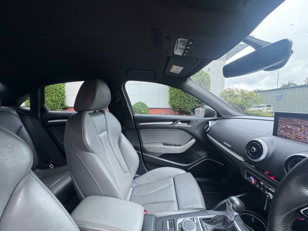 AUDI S3 2.0 TFSI BLACK EDITION S TRONIC QUATTRO EURO 6|OVER £4,500 IN OPTIONAL EXTRAS|RS LOOKS | TECHNOLOGY PACKAGE PLUS|HALDEX AND DSG SERVICE BEEN DONE| SUSPENSION CONTROL| DRIVE SELECT MODES| SALOON MODEL| RED BRAKE CALLIPERS|AUDI PARKING PLUS|LED INTERIOR LIGHTING|STORAGE PACKAGE|HIGH BEAM ASSIST|19'' ALLOYS| FLAT BOTTOM STEERING WHEEL|HEATED SEATS|ARA BLUE|BLACK EDTION| AUDI SERVICE HISTORY|PARKING SENSORS|PRIVACY GLASS| CRYSTAL EFFECT PAINT| RECENTLY SERVICED @ 57K| FINANCE ARRANGED £0 DEPOSIT NEEDED | PART EXCHANGE WELCOME | FINANCE DEALS AVAILABLE | HP FINANCE DEALS AVAILABLE | RAC APPROVED DEALERSHIP| HIGHLY RATED FOR OUR CUSTOMER SERVICE OVER 300 5 STAR REVIEWS ON AUTOTRADER| Please note: The above advert has been carefully written by our expert sales team to provide precise information. unfortunately some errors may occur. Please contact a sales person if you have any queries.. 19in Alloy Wheels - 5-Arm Wing Design in Gloss Titanium Look, 2 x USB Charging Ports and 1 x AUX-IN, 6-Airbag System with Knee Airbag for Driver, Aluminium Interior Elements, Anti Theft Locking Wheel Bolts, Anti-Theft Alarm, Audi Beam, Audi Connect Infotainment Services - 3 Month Trial, Audi Drive Select, Audi Magnetic Ride, Audi Smartphone Interface, Bang and Olufsen Sound System, Black Styling Package, Bluetooth Interface, CD Drive, Child Locks - Manual, Colour Drivers Information System - DIS, Cruise Control, DAB Digital Radio, Door Mirrors - Black Housing, Door Mirrors - Electrically Adjustable and Heated with Integrated LED Side Indicators, Dual-Zone Electronic Climate Control, ESC - Electronic Stabilisation Control inc ABS - ASR and EDL, Electric Windows - Front and Rear, Electromechanical Parking Brake, Exhaust Tailpipe - Dual-Branch Oval Twin with Chrome Finish, First Aid Kit, Front Centre Armrest, Front and Rear Floor Mats, Headlights Washers, Heated Front Seats, ISOFIX Child Seat Mounting and Top Tether, Illuminated Door Sill Trims with S Logo, Immobiliser, Inlays - Matt Brushed Aluminium, Instrument Dials with S3 Logo, LED Headlights with LED Rear Lights and Dynamic Rear Indicators, LED Interior Light Package, Light and Rain Sensor, Luggage Compartment - Lashing Points x4, MMI Navigation - SD Card Based, MMI Radio Plus with 7in Electrically Retractable Colour MMI Screen, Manual Front Seat Adjustment, Non-Smoking Package, Pedals in Stainless Steel, Privacy Glass, Progressive Steering, Remote Central Locking with 2 Fold Away Keys, S Design Body Styling, S Sport Suspension, S3 Front Bumper, S3 Rear Spoiler, Seat Belt Monitoring, Seat Belt Reminder for All Seats, Seats - Split Folding Rear - 60-40, Space Saver Spare Wheel, Sport Side Air Inlet Grille and Diffuser Insert, Steering Wheel - 3-Spoke Leather-Multifunction-Flat Bottomed-Shift Paddles, Storage Compartments in the Door Side Trims-Centre Console-Under Drivers Seat, Storage Package, Tool Kit and Car Jack, Tyre Pressure Monitoring System, Warning Triangle, Window Surrounds - Aluminium, Technology Package - Advanced, Technology Package, 19in Alloy Wheels - 5-V Spoke Design in Matt Titanium Look - Diamond Cut Finish, Tyre Repair Kit, Audi Parking System Plus.