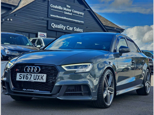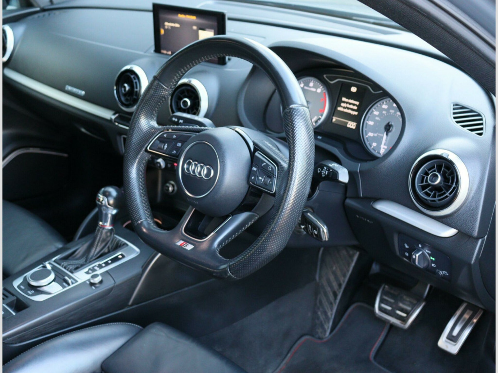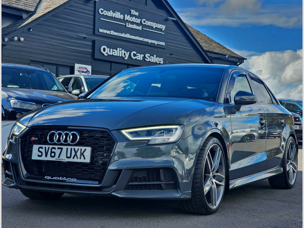 This immaculate 2017 Audi S3 TFSI Black Edition boasts a full service history and a clear vehicle history check, offering you complete peace of mind. This striking model features a powerful 2.0 litre petrol engine paired with a four wheel drive system, ensuring excellent performance and grip. The Black Edition trim enhances its already sophisticated appearance, while the Euro 6 emission class signifies its modern efficiency. You'll also benefit from a 12 month MOT provided on purchase, and convenient features such as Park Assist with front and rear sensors, red brake calipers with an S3 logo, and electrically adjustable 4 way lumbar support for ultimate comfort. The illuminated matt brushed aluminium inlays and heated, electrically adjustable, folding door mirrors add to the premium feel.Experience the impressive capabilities of this Audi S3, which achieves a remarkable 0-62mph in just 4.6 seconds, Furthermore, its fuel economy is a notable highlight, returning an impressive 44 miles per gallon which indicates its efficiency.The Vehicle has been lightly upgraded to feature an Akrapovic exhaust system and air induction system. In Addition the car comes with 2 Keys, Full Service History, a recent MOT, A mechanical/safety check and will be valeted. FREE DELIVERY AVAILABLE! NATIONWIDE CONTACTLESS DELIVERY (terms and conditions apply).We include 90 day warranty as standard plus an option to extend a comprehensive warranty for up to 3 years!Reserve the car for £99 (Refundable) online visit us at www.thecoalvillemotorcompany.com or via telephoneTest drive before you buy, with no commitment and completely hassle free experience. We accept all major debit and credit cards. Bank transfer and cashFinance also available, personalized to meet your requirements. Part exchange welcome.Please contact our friendly sales team for more information on 01164843301.FCA Approved - VAT Registered - All Vehicles HPI Clean **** THE COALVILLE MOTOR COMPANY LIMITED - 145 Thornborough Road, Coalville, LE67 3TN. **** in alloy wheels - 5-arm wing design in gloss titanium look, 2 x usb charging ports and 1 x aux-in, 6-airbag system with knee airbag for driver, aluminium interior elements, anti theft locking wheel bolts, anti-theft alarm, audi beam, audi connect infotainment services - 3 month trial, audi drive select, audi magnetic ride, audi smartphone interface, bang and olufsen sound system, black styling package, bluetooth interface, cd drive, child locks - manual, colour drivers information system - dis, cruise control, dab digital radio, door mirrors - black housing, door mirrors - electrically adjustable and heated with integrated led side indicators, dual-zone electronic climate control, esc - electronic stabilisation control inc abs - asr and edl, electric windows - front and rear, electromechanical parking brake, exhaust tailpipe - dual-branch oval twin with chrome finish, first aid kit, front centre armrest, front and rear floor mats, headlights washers, heated front seats, isofix child seat mounting and top tether, illuminated door sill trims with s logo, immobiliser, inlays - matt brushed aluminium, instrument dials with s3 logo, led headlights with led rear lights and dynamic rear indicators, led interior light package, light and rain sensor, luggage compartment - lashing points x4, mmi navigation - sd card based, mmi radio plus with 7in electrically retractable colour mmi screen, manual front seat adjustment, non-smoking package, pedals in stainless steel, privacy glass, progressive steering, remote central locking with 2 fold away keys, s design body styling, s sport suspension, s3 front bumper, s3 rear spoiler, seat belt monitoring, seat belt reminder for all seats, seats - split folding rear - 60-40, space saver spare wheel, sport side air inlet grille and diffuser insert, steering wheel - 3-spoke leather-multifunction-flat bottomed-shift paddles, storage compartments in the door side trims-centre console-under drivers seat, storage package, tool kit and car jack, tyre pressure monitoring system, warning triangle, window surrounds - aluminium, park assist, brake calipers - red with s3 logo, 19in alloy wheels - 5-v spoke design in matt titanium look - diamond cut finish, door mirrors - heated-electrically adjustable-folding, electrically adjustable 4-way lumbar support, inlays - matt brushed aluminium - illuminated design