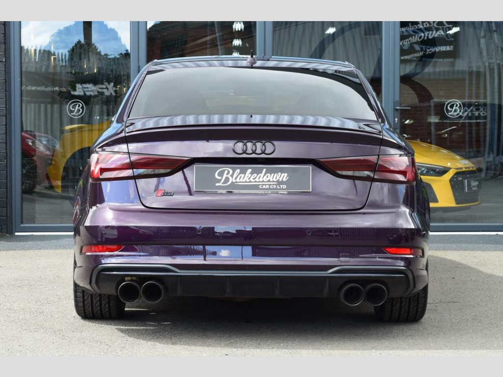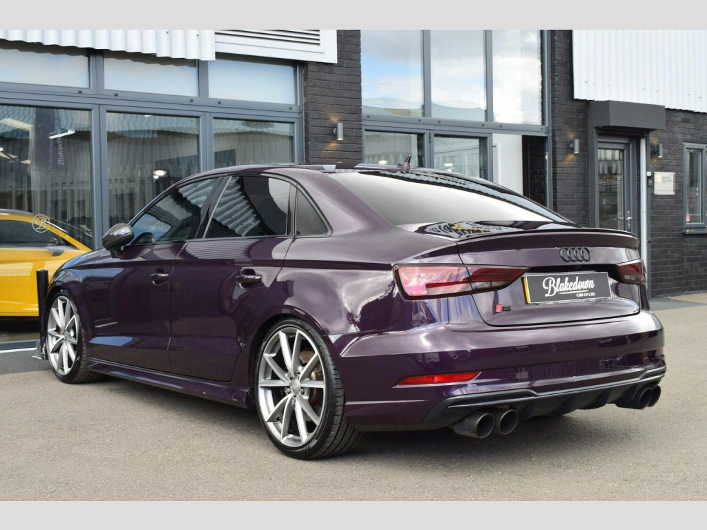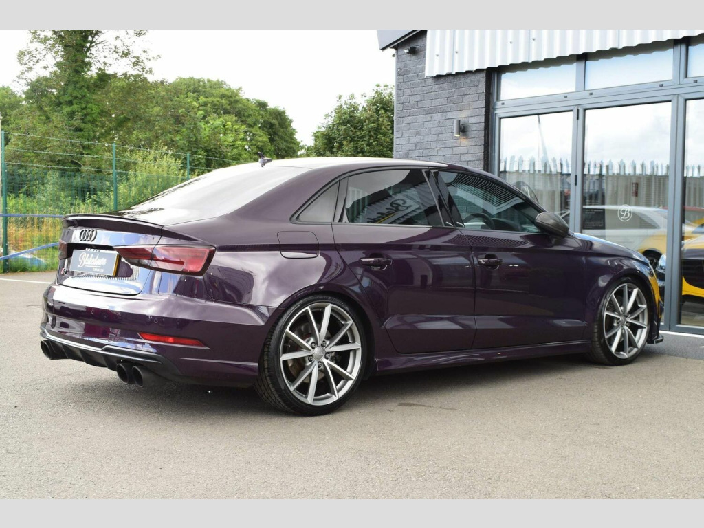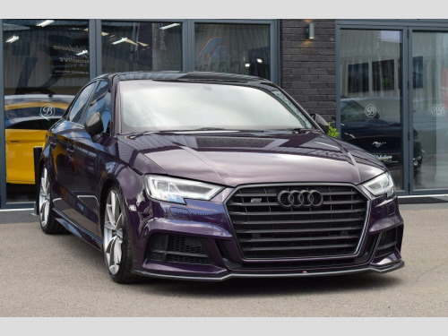 2018 18 Audi S3 Saloon Black Edition S Tronic finished in Audi Exclusive and very rare Merlin Purple Pearl Effect with full Black Fine Nappa Leather interior. 29250 miles have been covered with early Audi history plus we will service the car and replace the NGKR7438-8 racing spark plugs prior to sale. Showroom condition throughout in terms of bodywork, alloys, interior and all mechanical aspects - brakes, tyres etc. Supplied with two keys, handbooks and all correct documentation, bookpacks etc. This S3 is boasting one of the most complete factory specifications we’ve ever seen with options totalling over £5000. This includes: Technology Package (Virtual Dash, Audi Phone Box with Wireless Charging, MMI Navigation Plus and more), Technology Package, Panoramic Glass Sunroof, Matrix LED Exterior Lighting Pack, Fine Nappa Leather - S Embossed Super Sports Seats - Rotor Grey with Anthracite Stitching, 19in Alloy Wheels - 5-V Spoke Design in Matt Titanium Look - Diamond Cut Finish, Rear-View Camera, Audi Parking System Plus, Advanced Key, Auto-Dimming Rear-View Mirror, Door Mirrors - Heated-Electrically Adjustable-Folding-Auto-Dimming and Electrically Adjustable 4-Way Lumbar Support. In addition to the superb factory spec this particular car has also been tuned to stage 2 by industry leading VAG specialists MRC Tuning. Supporting/additional modifications include: Wagner front mounted intercooler, P3 boost gauge, carbon interior trim, carbon mirror caps, Racingline R600 intake, paddle shift extenders, Racingline coolant cap, Racingline oil management system, Racingline dipstick, custom valved exhaust system, sports cat, Maxton Design front splitter, TCU remap, 20mm lowering springs and finally a Ghost immobiliser has been fitted for additional security. Also included is a personalised registration which is currently assigned to the car - S3 YUP which in itself holds some value. Other features include: Audi Magnetic Ride, Bang and Olufsen Sound System, Black Styling Package, Cruise Control, Heated Front Seats and more. FINANCE FROM 6.9% APR | GTECHNIQ DETAILING & CERAMIC COATINGS | XPEL PAINT PROTECTION FILM
