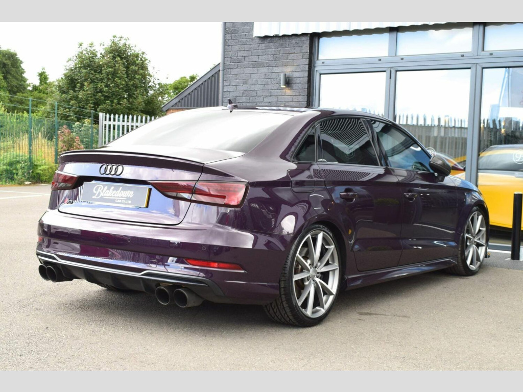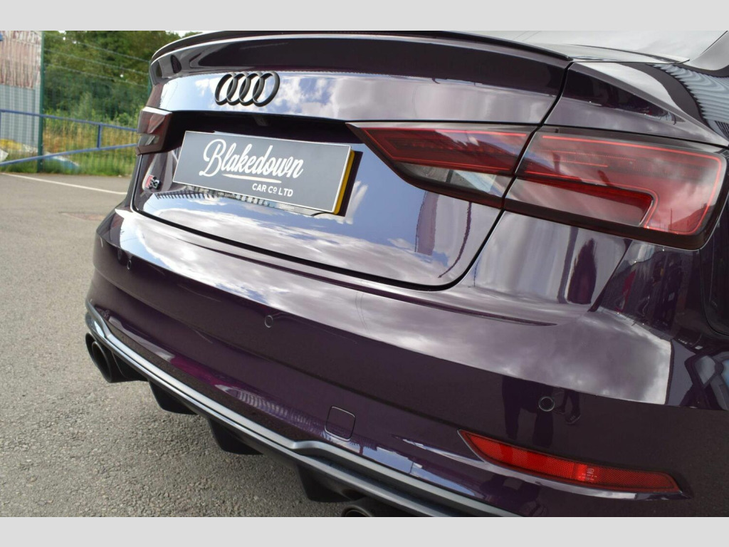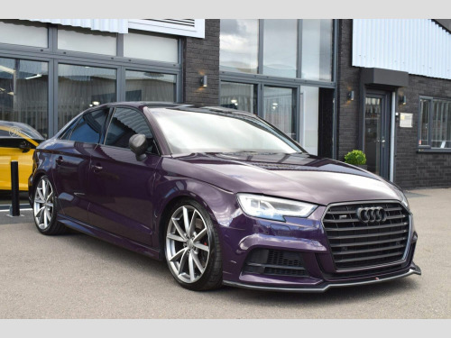 2018 18 Audi S3 Saloon Black Edition S Tronic finished in Audi Exclusive and very rare Merlin Purple Pearl Effect with full Black Fine Nappa Leather interior. 29250 miles have been covered with early Audi history plus we will service the car and replace the NGKR7438-8 racing spark plugs prior to sale. Showroom condition throughout in terms of bodywork, alloys, interior and all mechanical aspects - brakes, tyres etc. Supplied with two keys, handbooks and all correct documentation, bookpacks etc. This S3 is boasting one of the most complete factory specifications weâve ever seen with options totalling over £5000. This includes: Technology Package (Virtual Dash, Audi Phone Box with Wireless Charging, MMI Navigation Plus and more), Technology Package, Panoramic Glass Sunroof, Matrix LED Exterior Lighting Pack, Fine Nappa Leather - S Embossed Super Sports Seats - Rotor Grey with Anthracite Stitching, 19in Alloy Wheels - 5-V Spoke Design in Matt Titanium Look - Diamond Cut Finish, Rear-View Camera, Audi Parking System Plus, Advanced Key, Auto-Dimming Rear-View Mirror, Door Mirrors - Heated-Electrically Adjustable-Folding-Auto-Dimming and Electrically Adjustable 4-Way Lumbar Support. In addition to the superb factory spec this particular car has also been tuned to stage 2 by industry leading VAG specialists MRC Tuning. Supporting/additional modifications include: Wagner front mounted intercooler, P3 boost gauge, carbon interior trim, carbon mirror caps, Racingline R600 intake, paddle shift extenders, Racingline coolant cap, Racingline oil management system, Racingline dipstick, custom valved exhaust system, sports cat, Maxton Design front splitter, TCU remap, 20mm lowering springs and finally a Ghost immobiliser has been fitted for additional security. Also included is a personalised registration which is currently assigned to the car - S3 YUP which in itself holds some value. Other features include: Audi Magnetic Ride, Bang and Olufsen Sound System, Black Styling Package, Cruise Control, Heated Front Seats and more. FINANCE FROM 6.9% APR | GTECHNIQ DETAILING & CERAMIC COATINGS | XPEL PAINT PROTECTION FILM