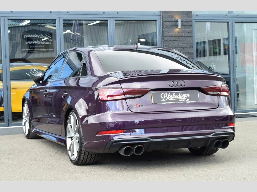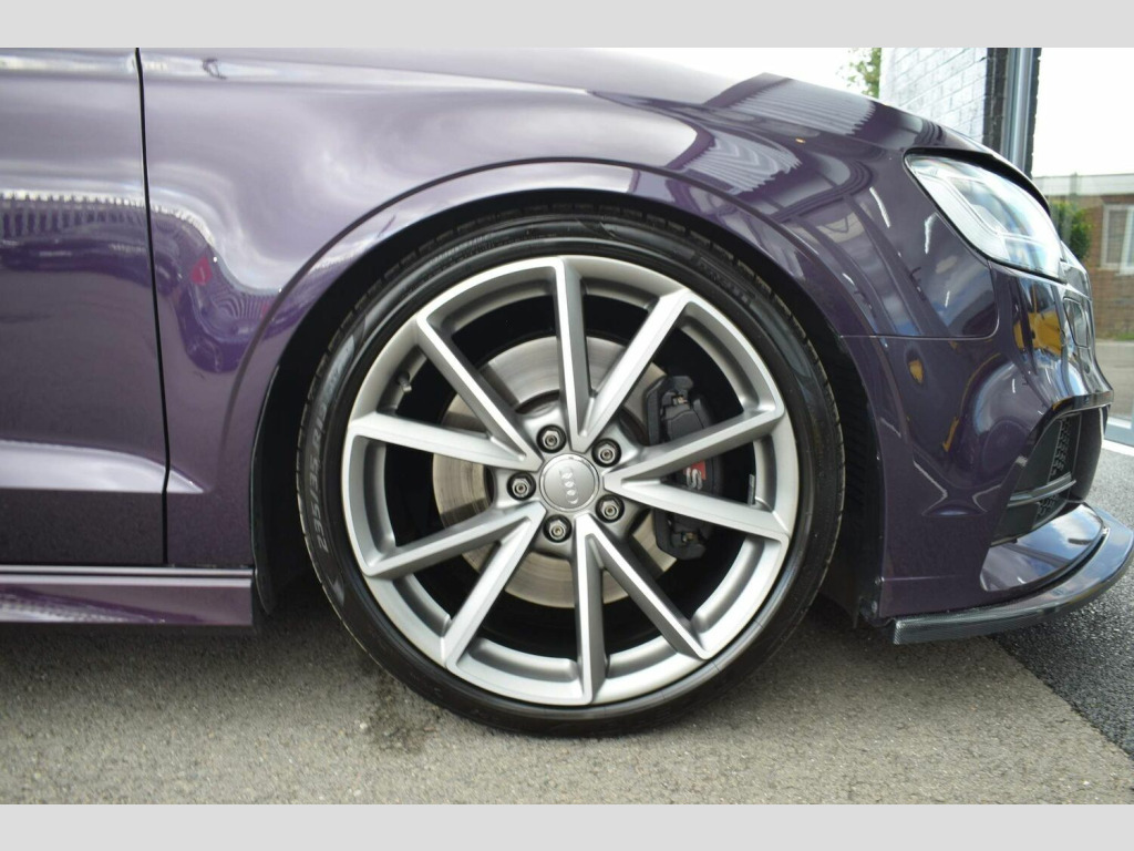 2018 18 Audi S3 Saloon Black Edition S Tronic finished in Audi Exclusive and very rare Merlin Purple Pearl Effect with full Black Fine Nappa Leather interior. 29250 miles have been covered with early Audi history plus we will service the car and replace the NGKR7438-8 racing spark plugs prior to sale. Showroom condition throughout in terms of bodywork, alloys, interior and all mechanical aspects - brakes, tyres etc. Supplied with two keys, handbooks and all correct documentation, bookpacks etc. This S3 is boasting one of the most complete factory specifications we’ve ever seen with options totalling over £5000. This includes: Technology Package (Virtual Dash, Audi Phone Box with Wireless Charging, MMI Navigation Plus and more), Technology Package, Panoramic Glass Sunroof, Matrix LED Exterior Lighting Pack, Fine Nappa Leather - S Embossed Super Sports Seats - Rotor Grey with Anthracite Stitching, 19in Alloy Wheels - 5-V Spoke Design in Matt Titanium Look - Diamond Cut Finish, Rear-View Camera, Audi Parking System Plus, Advanced Key, Auto-Dimming Rear-View Mirror, Door Mirrors - Heated-Electrically Adjustable-Folding-Auto-Dimming and Electrically Adjustable 4-Way Lumbar Support. In addition to the superb factory spec this particular car has also been tuned to stage 2 by industry leading VAG specialists MRC Tuning. Supporting/additional modifications include: Wagner front mounted intercooler, P3 boost gauge, carbon interior trim, carbon mirror caps, Racingline R600 intake, paddle shift extenders, Racingline coolant cap, Racingline oil management system, Racingline dipstick, custom valved exhaust system, sports cat, Maxton Design front splitter, TCU remap, 20mm lowering springs and finally a Ghost immobiliser has been fitted for additional security. Also included is a personalised registration which is currently assigned to the car - S3 YUP which in itself holds some value. Other features include: Audi Magnetic Ride, Bang and Olufsen Sound System, Black Styling Package, Cruise Control, Heated Front Seats and more. FINANCE FROM 6.9% APR | GTECHNIQ DETAILING & CERAMIC COATINGS | XPEL PAINT PROTECTION FILM