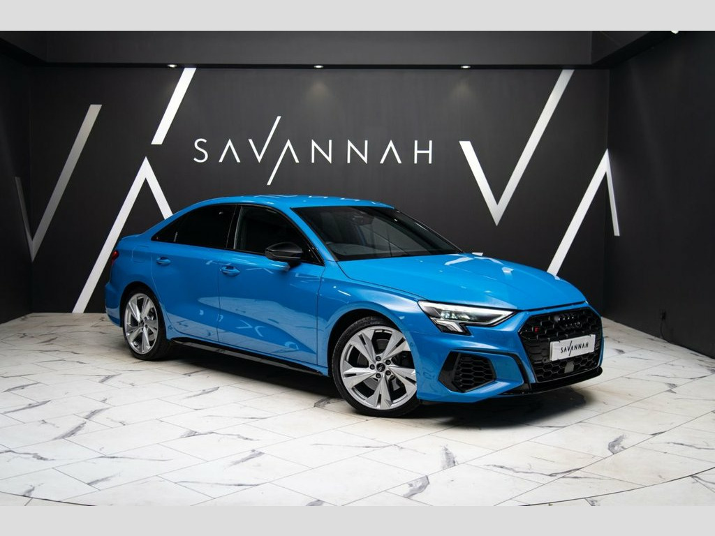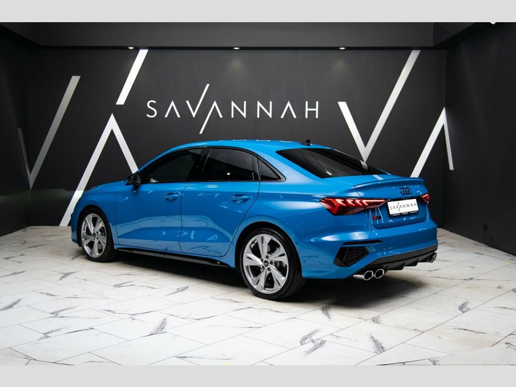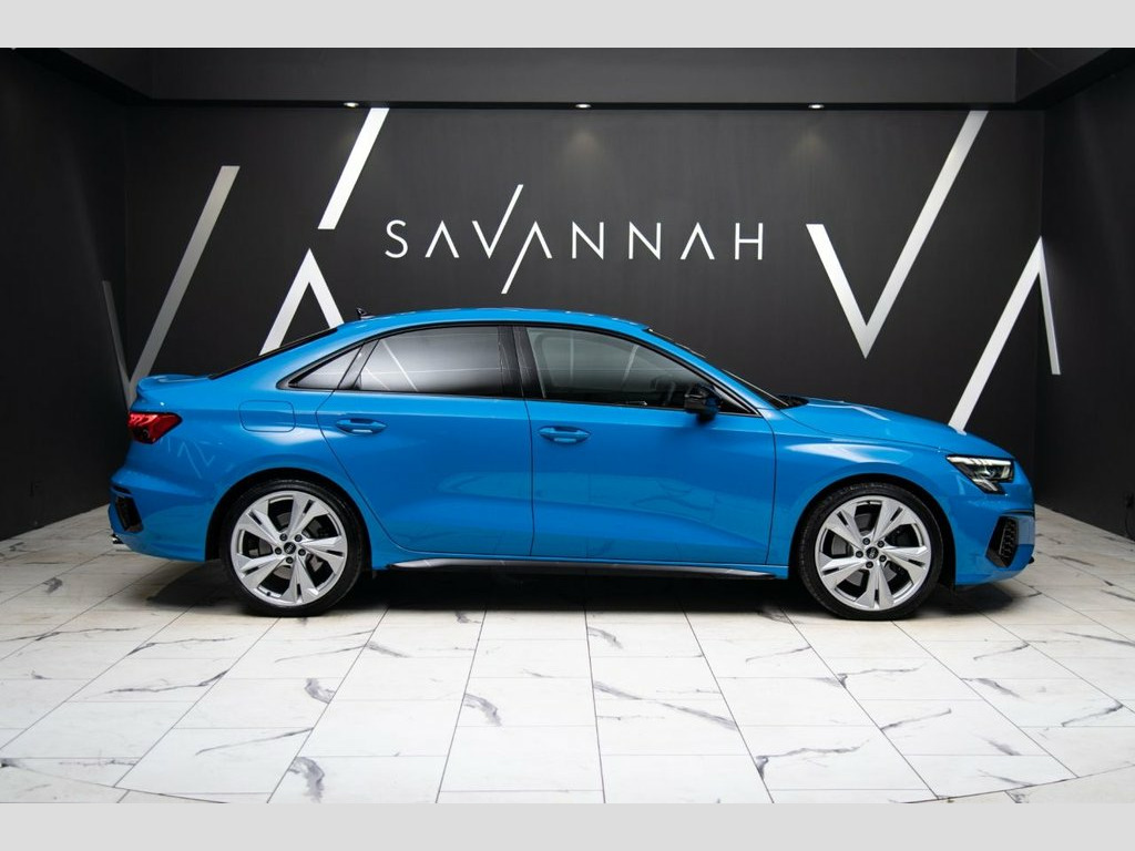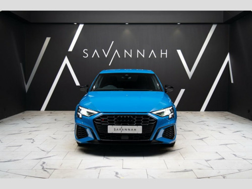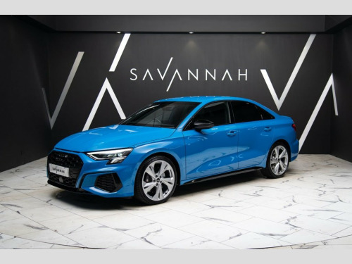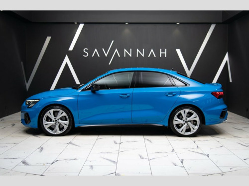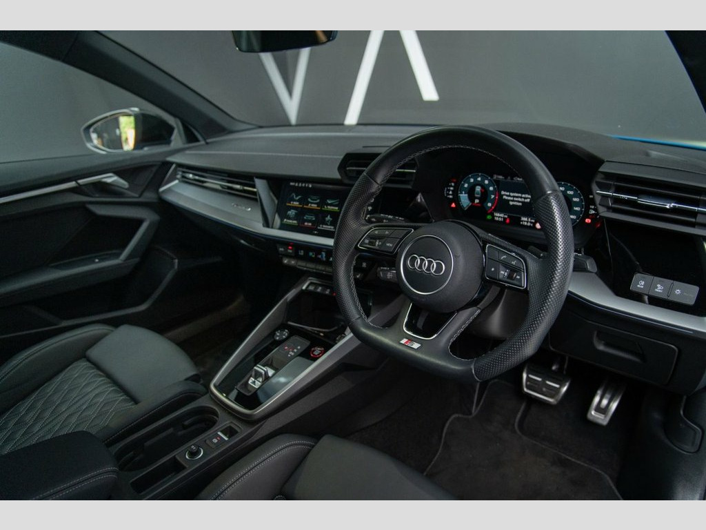 Audi S3 2.0 TFSI Black Edition Saloon 4dr Petrol S Tronic quattro Euro 6 (s/s) (310 ps) – a striking performance saloon that blends everyday usability with thrilling dynamics. Finished in commanding Black Edition styling, it sits on 19-inch 5-Y-arm structure alloys in matt grey with diamond-turned detail, complemented by gloss black brake calipers, privacy glass, and dual-branch oval tailpipes in chrome. The aggressive S body styling and LED headlights with dynamic indicators ensure an unmistakable road presence. Inside, the cabin combines premium materials with driver-focused design, featuring front sports seats, aluminium inlays, extended ambient lighting, and a flat-bottomed leather multifunction steering wheel with paddle shift. Technology is at the forefront with Audi Virtual Cockpit, MMI Navigation Plus on a 10.1-inch touchscreen, smartphone interface, and an immersive LED interior lighting package. Comfort and practicality are refined with dual-zone climate control, split-folding rear seats, illuminated S door sills, and storage solutions throughout. Driving dynamics are sharpened with S sport suspension, progressive steering, Audi Drive Select, and quattro all-wheel drive, while safety is assured with Audi Pre-Sense Front, lane departure warning, traffic sign recognition, and a full complement of airbags. A true all-rounder, this Audi S3 delivers precision performance, everyday comfort, and unmistakable style in equal measure. 12v Socket and Storage Compartment in Fr, 19in Alloy Wheels - 5-Y-Arm Structure De, 2 USB-C Ports with Charge and Data Funct, 4-Way Lumbar Support for Front Seats, Airbags - Driver and Front Passenger wit, Aluminium Interior Elements, Anti Theft Locking Wheel Bolts, Anti-Theft Alarm, Audi Beam, Audi Connect Navigation and Infotainment, Audi Drive Select, Audi Pre-Sense Front with Pedestrian and, Audi Smartphone Interface, Audi Virtual Cockpit, Auto Dimming and Frameless Rear View Mir, Black Styling Pack, Bluetooth Interface, Brake Calipers Painted in Glossy Black, Camera Based Traffic Sign Recognition, Cloth Headlining in Black, Collision Avoidance Assistant, Cruise Control, DAB Digital Radi