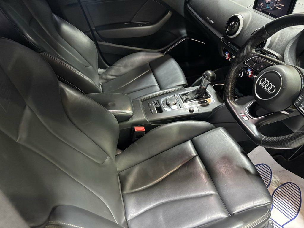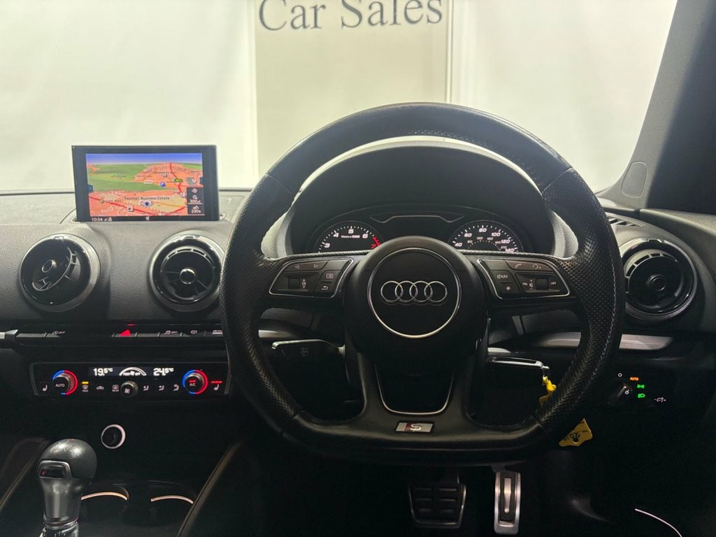 AN EXCELLENT EXAMPLE OF A AUDI S3 2.0 TFSI Black Edition Sportback 5dr Petrol S Tronic quattro Euro 6 (s/s) (310 ps). THIC VEHICLE COMES WITH FULL DEALER SERVICE HISTORY, HEATED SEATS, SAT NAV, 19 INCH ALLOYS, LEATHER TRIM, PARKING SENSORS, CLIMATE CONTROL,2 KEYS, 12 MONTHS MOT AND SERVICE, ANY PARY EXCHANGE WELCOME, FINANCE AVAILABLE UP TO 5 YEARS WITH NO DEPOSIT. 18in Alloy Wheels - 5-Arm Turbine Design, 2 x USB Charging Ports and 1 x AUX-IN, 6-Airbag System with Knee Airbag for Dri, Aluminium Interior Elements, Anti Theft Locking Wheel Bolts, Anti-Theft Alarm, Audi Beam, Audi Connect Infotainment Services - 3 M, Audi Drive Select, Audi Hill Hold Assist, Audi Smartphone Interface, Auto-Dimming Rear-View Mirror with Light, Bang and Olufsen Sound System, Black Styling Package, Bluetooth Interface, Brake Calipers Painted in Black with S3 , CD Drive, Cloth Headlining in Black, Colour Drivers Information System - DIS, Cruise Control, DAB Digital Radio, Door Mirrors - Black Housing, Door Mirrors - Electrically Adjustable a, Dual-Zone Electronic Climate Con