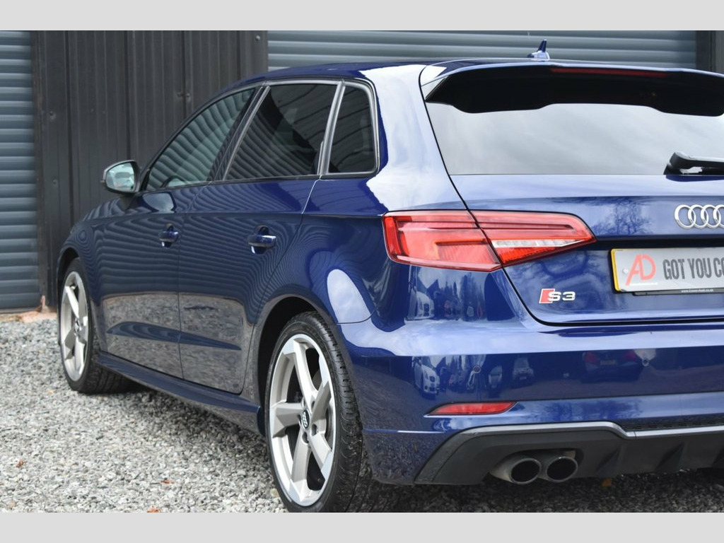 This is a fantastic opportunity to own one of the best looking S3's on the market! This particular model is finished in Navarra Blue metallic. It comes with the 18 inch alloy wheels, with great service history its been well cared for by its 2 former keepers. The huge specification is listed below: Factory fitted satellite navigation, full black heated leather interior, DAB radio, Bang & Olufsen hi fi upgrade, Xenon headlights, headlamp wash, LED day running lights, front fogs lights, front and rear parking sensors, privacy glass, rear spoiler, quad exhaust, LED rear lights, full S3 body styling kit, automatic S Tronic with steering wheel gear change, flat bottom multi function steering wheel, voice activation, driver select function, dual climate control, stop start function, onboard computer, music interface, Bluetooth telephone & music streaming, auto lights & wipers, Isofix child seat anchors, rear head rests, front centre armrest, superb looks! 18in Alloy Wheels - 5-Arm Turbine Design, 2 x USB Charging Ports and 1 x AUX-IN, 6-Airbag System with Knee Airbag for Dri, Aluminium Interior Elements, Anti Theft Locking Wheel Bolts, Anti-Theft Alarm, Audi Beam, Audi Connect Infotainment Services - 3 M, Audi Drive Select, Audi Hill Hold Assist, Audi Smartphone Interface, Auto-Dimming Rear-View Mirror with Light, Bang and Olufsen Sound System, Black Styling Package, Bluetooth Interface, Brake Calipers Painted in Black with S3 , CD Drive, Cloth Headlining in Black, Colour Drivers Information System - DIS, Cruise Control, DAB Digital Radio, Door Mirrors - Black Housing, Door Mirrors - Electrically Adjustable a, Dual-Zone Electronic Climate Con