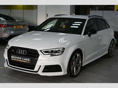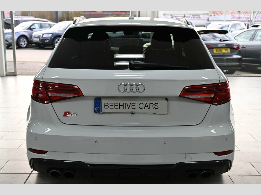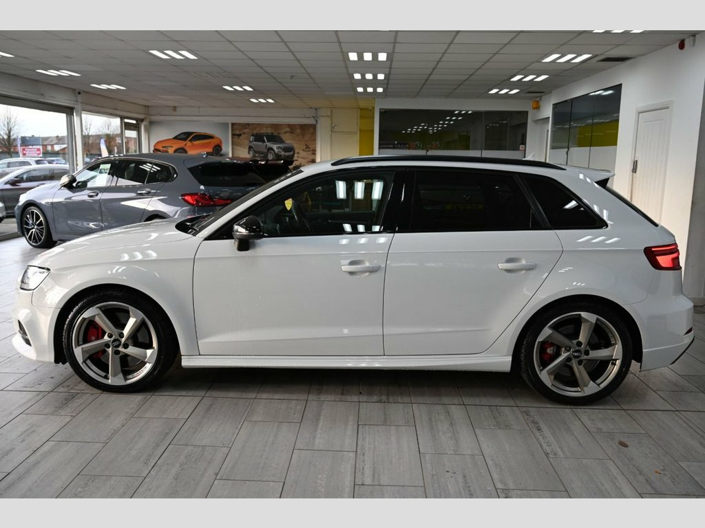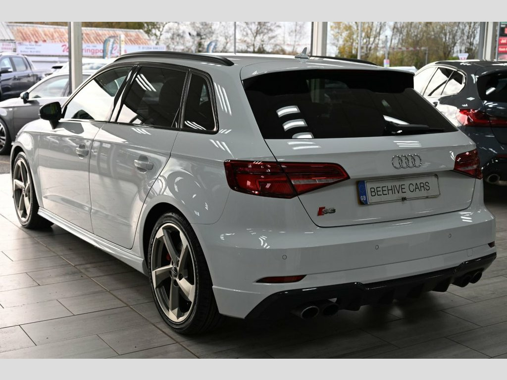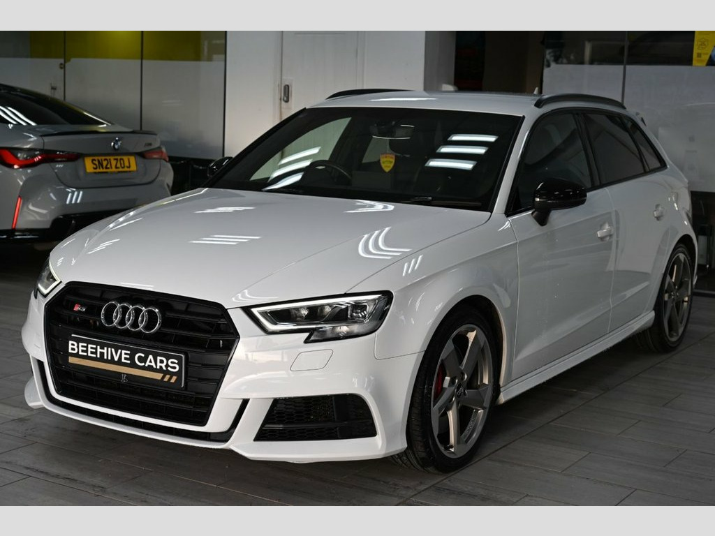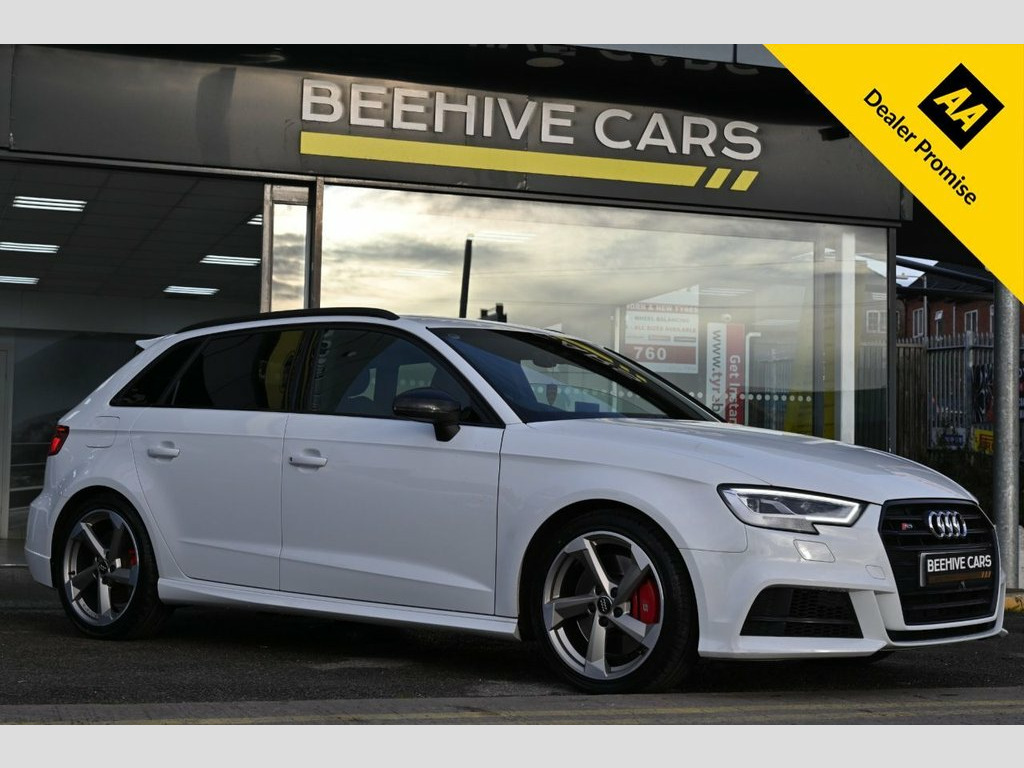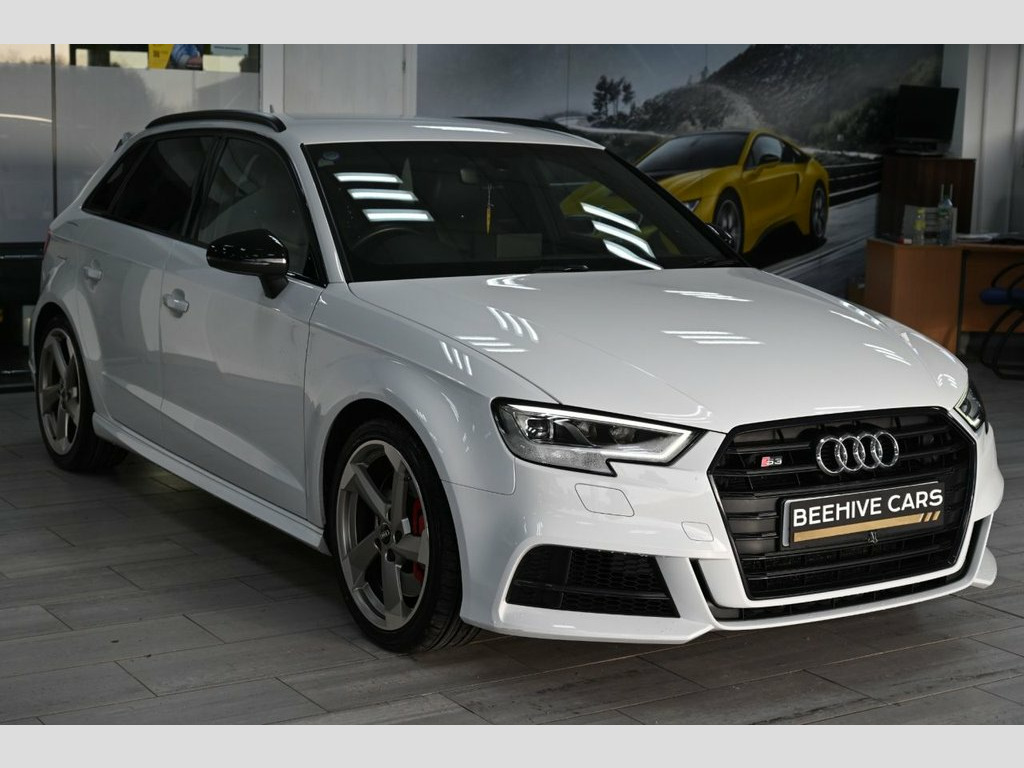 DRIVE AWAY TODAY OR FREE HOME DELIVERY TO YOUR DOORSTEP FINANCE & PART EXCHANGE ARRANGED ONLINE** 7 DAY MONEY BACK GUARANTEE** Lovely Audi s3 tfsi black edition quattro s-tronic sportback in metallic white with full audi service history 1 owner from new sat nav dab radio bluetooth media usb bose surround sound full black s-line leather seats with armrest heated seats electric heated folding door mirrors rear parking aid sensors xenon lights flat bottom s-line steering wheel with f1 style paddleshifts auto comfort efficiency individual dynamic audi drive select driving modes alloys privacy