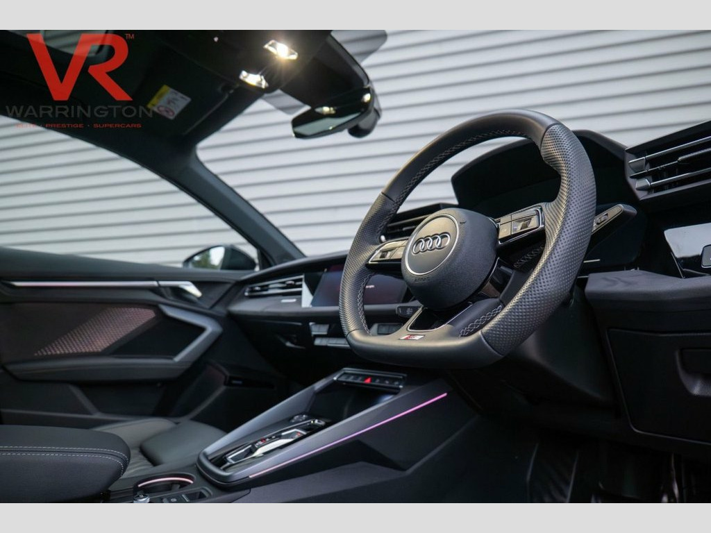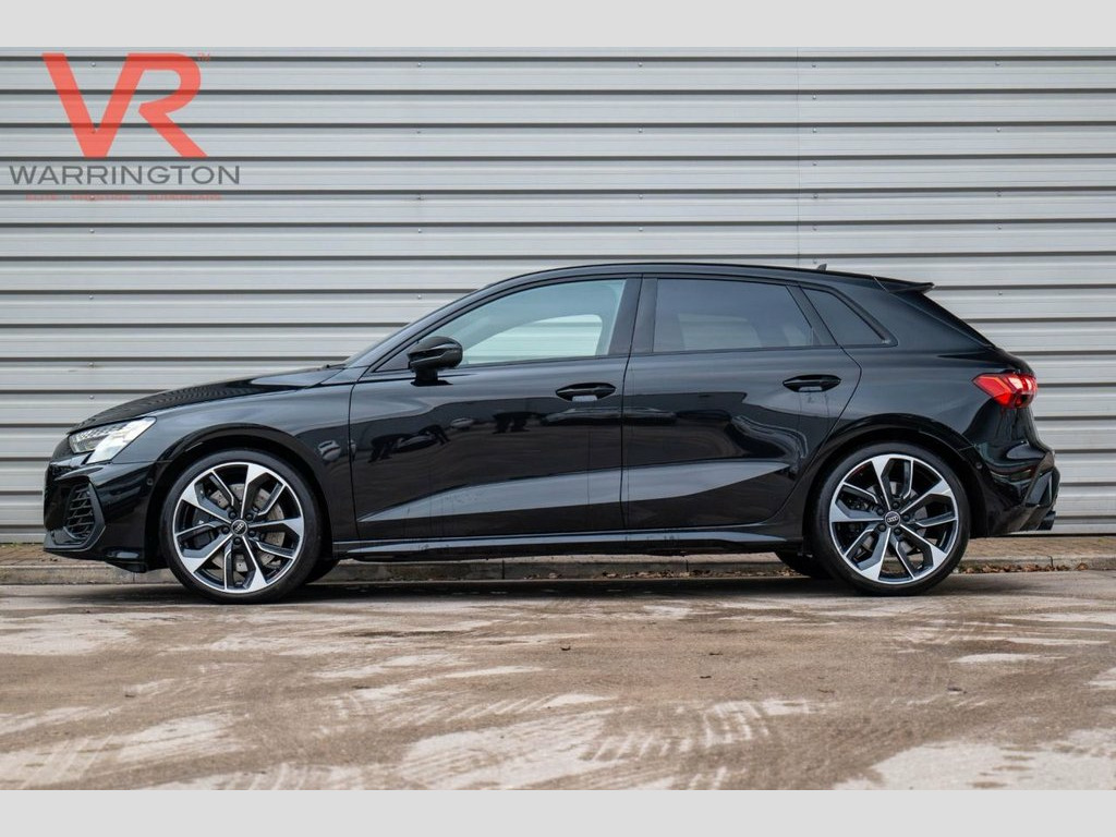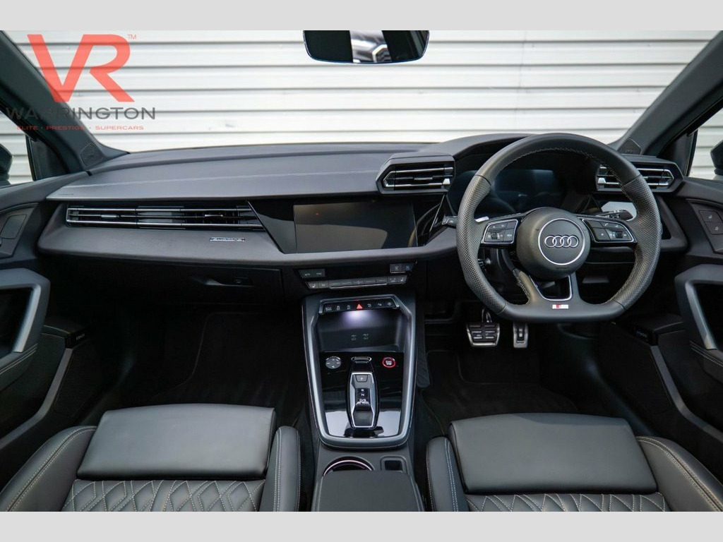 Here at VR EPS Warrington, we are pleased to offer the stunning 2025 - 25 plate - Audi S3 2.0 TFSI Black Edition Sportback 5dr Petrol S Tronic quattro finished in Mythos Black with Black Interior. First registered in April 2025, this vehicle has 2 previous owners and comes with... Audi Warranty for 4 Years |HEAD UP DISPLAY Apple CarPlay | Android Auto | Bluetooth Phone and Media Connectivity | Audi Virtual Cockpit | Electronic Glass Sunroof | Ambient Lighting | Front Heated Seats | Satellite Navigation | SONOS Sound System | Electronic Heated Mirrors | Audi Drive Select | Traction Control | Automatic Stop/Start | USB-C Compatibility | Reverse Parking Camera with Front and Rear Parking Sensors | At VR EPS Warrington you can enjoy a buying experience like no other! You can either... Visit our Boutique showroom in Warrington Cheshire or order directly through our website and arrange delivery to your door. Or as most of our customers have done… Do both!! Our talented team of advisors are available to provide their knowledge and match you to your dream car. All our cars are supplied with two keys, an 82-point vehicle inspection, 6 months fully comprehensive RAC Warranty, and 12 months RAC roadside assistance. Head Up Display - HUD, Mythos Black, Audi Warranty 4 Years - 75000 Miles - Wh, Fine Nappa Leather - S Embossed Sports S, Body Coloured Door Mirrors, 19in Alloy Wheels - Multi-Spoke S Design, 12v Socket and Storage Compartment in Fr, 19in Alloy Wheels - 5-Twin Spoke Edge - , 3-Zone Deluxe Automatic Air Conditioning, 4-Way Lumbar Support for Front Seats, Airbags - Driver and Front Passenger wit, Aluminium Interior Elements, Aluminium Window Trims, Anti Theft Locking Wheel Bolts, Anti-Theft Alarm, Audi Beam, Audi Connect Navigation and Infotainment, Audi Drive Select, Audi Phone Box Light with Wireless Charg, Audi Pre-Sense Front with Pedestrian and, Audi Smartphone Interface, Audi Virtual Cock