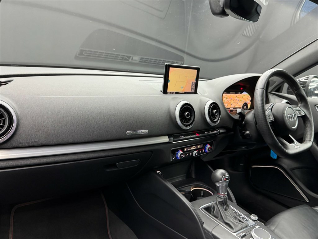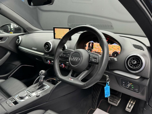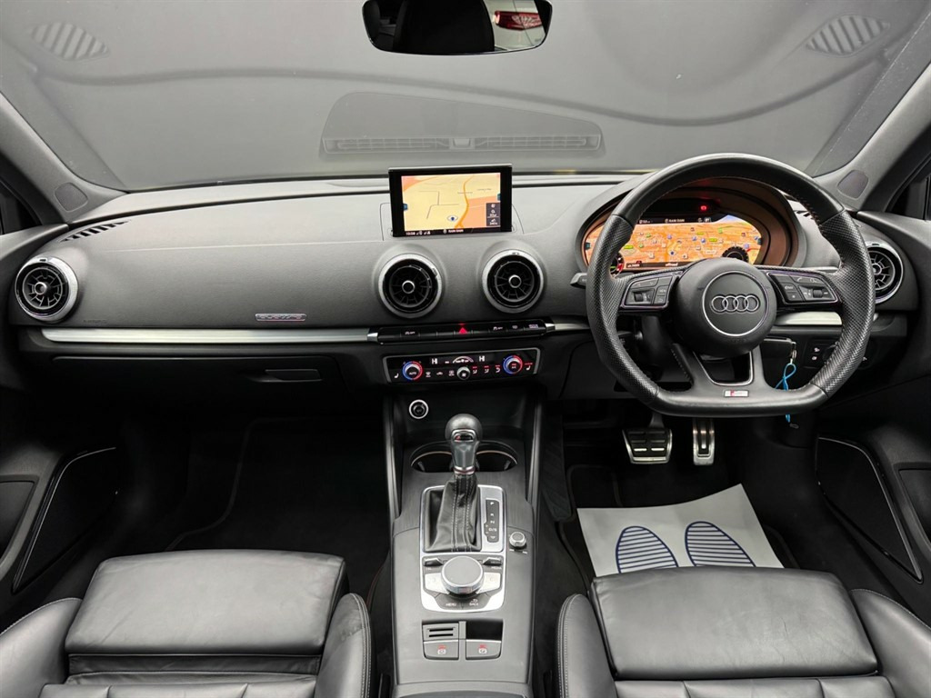Here at Motor Gurus we are delighted to offer an Audi S3 2.0 TFSI Black Edition Sportback S Tronic quattro. This vehicle is in immaculate condition inside and out. This specific vehicle is finished in a GLOSS BLACK and is matched with a BLACK LEATHER interior. This vehicle comes included with: FRONT & REAR PARKING SENSORS, SWEEPING REAR INDICATORS, BANG & OLUFSEN SOUND SYSTEM, PERFORATED GRIPPED LEATHER STEERING WHEEL, CRUISE CONTROL, DIGITAL COCKPIT, AUTOMATIC HEADLIGHT CONTROL, AUTOMATIC BRAKE HOLD, TWIN CUPHOLDERS, FRONT HEATED SEATS, CLIMATE CONTROL, SAT NAVIGATION, TELEPHONE CONNECTIVITY, BLUETOOTH AUDIO, DAB RADIO, AUDI DRIVE SELECT AND MUCH MORE! Our Audi S3 2.0 TFSI Black Edition Sportback S Tronic quattro has come to us with SERVICE HISTORY, 2 KEYS and is a 1 FORMER KEEPER FROM NEW! We will also provide this vehicle with a 12 MONTH MOT as well as a FRESH OIL SERVICE before it leaves our premises (OTR). 18in Alloy Wheels - 5-Arm Trapezoid Design Audi Sport in Gloss Anthracite Black - Diamond Cut Finish,2 x USB Charging Ports and 1 x AUX-IN,6-Airbag System with Knee Airbag for Driver,Aluminium Interior Elements,Anti Theft Locking Wheel Bolts,Anti-Theft Alarm,Audi Beam,Audi Connect,Audi Connect Infotainment Services - 3 Month Trial,Audi Drive Select,Audi Smartphone Interface,Auto-Dimming Rear-View Mirror with Light and Rain Sensor,Bang and Olufsen Sound System,Black Styling Package,Bluetooth Interface,Brake Calipers Painted in Black with S3 Logo at the Front,CD Drive,Cloth Headlining,Colour Drivers Information System - DIS,Cruise Control,DAB Digital Radio,Door Mirrors - Black Housing,Door Mirrors - Electrically Adjustable and Heated with Integrated LED Side Indicators,Dual-Zone Electronic Climate Control,ESC - Electronic Stabilisation Control inc ABS - ASR and EDL,Electric Windows - Front and Rear,Electromechanical Parking Brake,Exhaust Tailpipe - Dual-Branch Oval Twin with Chrome Finish,First Aid Kit and Warning Triangle,Front Centre Armrest,Front and Rear Floor Mats,Headlights Washers,Heated Front Seats,Heated Windscreen Washer Jets,Hill Hold Assist,ISOFIX Child Seat Mounting and Top Tether,Illuminated Door Sill Trims with S Logo,Inlays - Matt Brushed Aluminium,Instrument Dials with S3 Logo,LED Headlights with LED Rear Lights and Dynamic Rear Indicators,LED Interior Light Package,Lashing Points in Luggage Compartment,MMI Navigation - SD Card Based,MMI Radio Plus with 7in Electrically Retractable Colour MMI Screen,Manual Seat Adjustment,Non-Smoking Package,Pedals in Stainless Steel,Privacy Glass,Progressive Steering,Rear Parking Sensors,Remote Central Locking with 2 Fold Away Keys,S Design Body Styling,S Sport Suspension,Seat Belt Monitoring,Split Folding Rear Seat Bench - 60-40 or Fully,Steering Wheel - 3-Spoke Leather-Multifunction-Flat Bottomed-Shift Paddles,Storage Compartments in the Door Side Trims-Centre Console-Under Drivers Seat,Storage Package,Tool Kit,Tyre Pressure Warning Light,Tyre Repair Kit,Fine Nappa Leather - S Embossed Sports Seats - Black with Rock Grey Stitching,Technology Pack,Technology Package