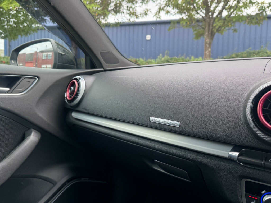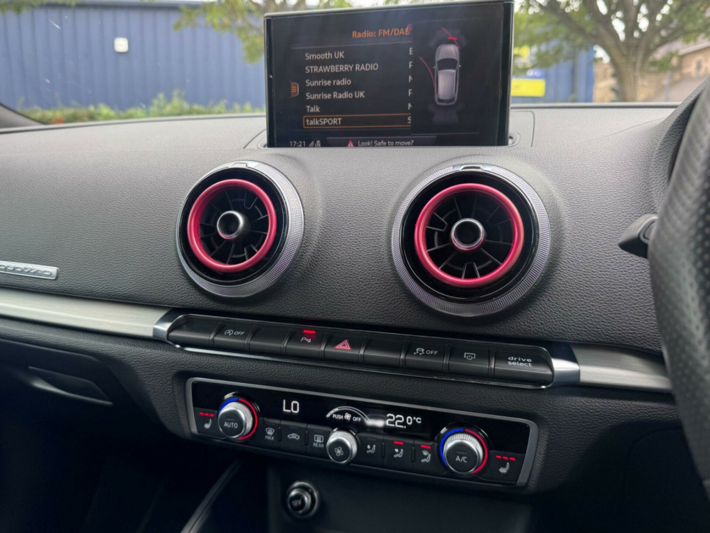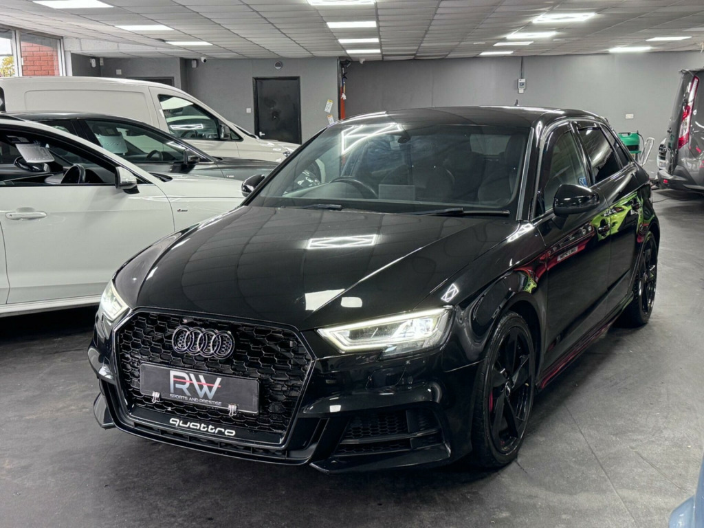 2018 AUDI S3 2.0 TFSI BLACK EDITION SPORTBACK S TRONIC QUATTRO EURO 6| RS LOOKS| TECHNOLOGY PACKAGE | VIRTUAL DASH| BLACK PACK| BANG & OLUSFEN SOUND SYSTEM | HALDEX SERVICE COMPLETED | 18” ALLOYS| FLAT BOTTOM STEERING WHEEL| 2 FORMER KEEPERS|SERVICE HISTORY | SATNAV|HEATED SEATS| DYNAMIC INDICATORS | IMMACULATE CONDITION INSIDE OUT| FINANCE ARRANGED £0 DEPOSIT NEEDED| PART EXCHANGE WELCOME| 12 MONTHS MOT| HP & PCP FINANCE DEALS AVAILABLE| RAC APPROVED DEALERSHIP| HIGHLY RATED FOR OUR CUSTOMER SERVICE OVER 300 5 STAR REVIEWS ON AUTOTRADER | Please note: The above advert has been carefully written by our expert sales team to provide precise information. unfortunately some errors may occur. Please contact a sales person if you have any queries. ||. 18in Alloy Wheels - 5-Arm Turbine Design in Magnesium Look - Diamond Cut Finish, 2 x USB Charging Ports and 1 x AUX-IN, 6-Airbag System with Knee Airbag for Driver, Aluminium Interior Elements, Anti Theft Locking Wheel Bolts, Anti-Theft Alarm, Audi Beam, Audi Connect Infotainment Services - 3 Month Trial, Audi Drive Select, Audi Hill Hold Assist, Audi Smartphone Interface, Auto-Dimming Rear-View Mirror with Light and Rain Sensor, Bang and Olufsen Sound System, Black Styling Package, Bluetooth Interface, Brake Calipers Painted in Black with S3 Logo at the Front, CD Drive, Cloth Headlining in Black, Colour Drivers Information System - DIS, Cruise Control, DAB Digital Radio, Door Mirrors - Black Housing, Door Mirrors - Electrically Adjustable and Heated with Integrated LED Side Indicators, Dual-Zone Electronic Climate Control, ESC - Electronic Stabilisation Control inc ABS - ASR and EDL, Electric Windows - Front, Electromechanical Parking Brake, Email and Text Messages can be Displayed on your Vehicles MMI, Exhaust Tailpipe - Dual-Branch Oval Twin with Chrome Finish, First Aid Kit and Warning Triangle, Front Centre Armrest, Front and Rear Floor Mats, Headlights Washers, Heated Front Seats, Heated Windscreen Washer Jets, ISOFIX Child Seat Mounting and Top Tether, Illuminated Door Sill Trims with S Logo, Inlays - Matt Brushed Aluminium, Instrument Dials with S3 Logo, LED Headlights with LED Rear Lights and Dynamic Rear Indicators, LED Interior Light Package, Lashing Points in Luggage Compartment, MMI Navigation - SD Card Based, MMI Radio Plus with 7in Electrically Retractable Colour MMI Screen, Non-Smoking Package, Online Media Streaming - Audi MMI Connect App Required, Pedals in Stainless Steel, Privacy Glass, Progressive Steering, Rear Parking Sensors, Remote Central Locking with 2 Fold Away Keys, S Design Body Styling, S Sport Suspension, Seat Belt Monitoring, Space Saver Spare Wheel, Split Folding Rear Seat Bench - 60-40 or Fully, Steering Wheel - 3-Spoke Leather-Multifunction-Flat Bottomed-Shift Paddles, Storage Compartments in the Door Side Trims-Centre Console-Under Drivers Seat, Storage Package, Tool Kit and Car Jack, Tyre Pressure Warning Light, Technology Pack, Brake Calipers Painted in Red with S3 Logo at the Front.