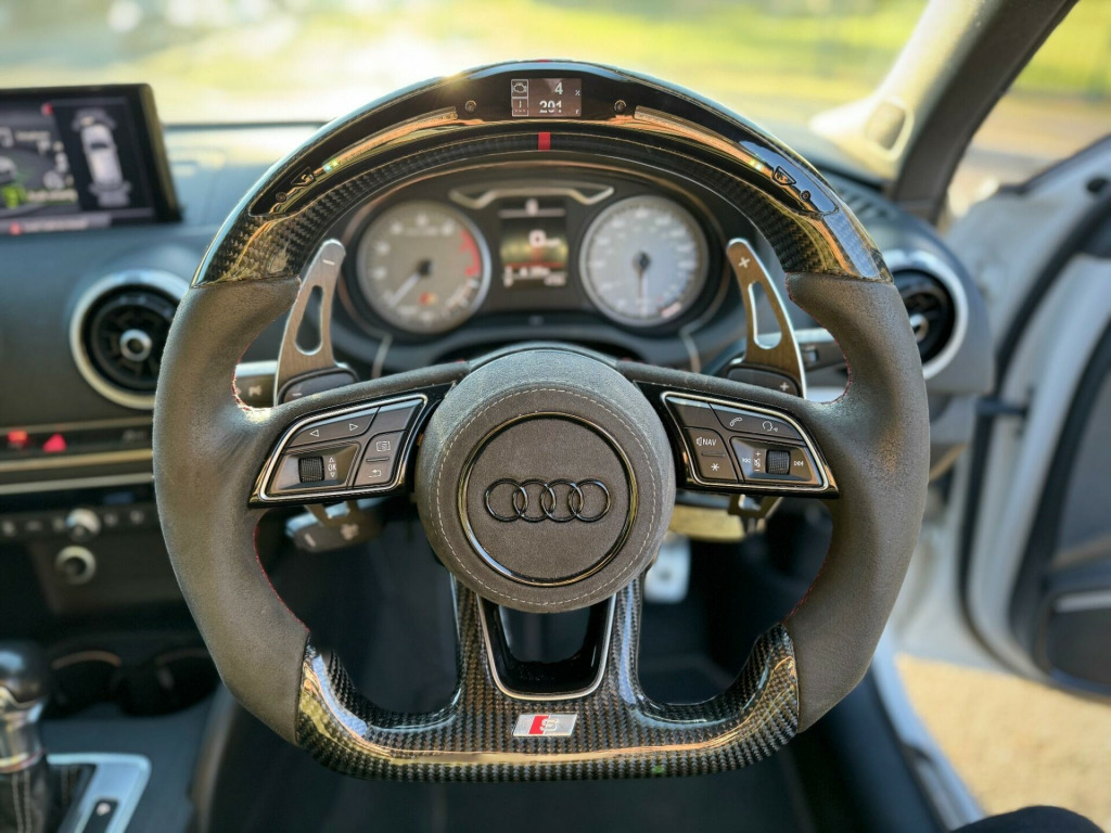STAGE 2 S3 WITH DYNO + 406 BHP + APR COILPACKS + UPGRADE EXHAUST SYSTEM + ROTIFORM ALLOYS + CARBON FIBRE INTERIOR + CUSTOM LED CARBON FIBRE STEERING WHEEL + B&O SURROUND SOUND SYSTEM + FULL MAXTON BODYKIT + PARKING SENSORS + HEATED SEATS + CRUISE CONTROL + BLACK BADING & STYLING ALL AROUND + BLACK ROOF +FINANCE FROM 8.9% APR + WARRANTY 6 MONTHS + PX WELCOMEThis 2017 Audi S3 TFSI Black Edition boasts a full service history, offering peace of mind alongside its impressive performance. Under the bonnet, a potent 2.0 litre petrol engine powers this four wheel drive model, ensuring excellent grip and responsiveness. As a Euro 6 compliant vehicle, it meets modern emissions standards. The Black Edition trim enhances its already striking appearance, featuring distinctive black roof rails and eye catching 19 inch alloy wheels in a matt titanium look with a diamond cut finish. Adding a touch of sporty flair, the brake calipers are painted red and proudly display the S3 logo at the front.Experience the thrill of rapid acceleration, with the S3 capable of reaching 0 to 62 miles per hour in just 4.6 seconds, a performance that sets it apart from many other vehicles in its class. This Audi S3 also comes equipped with Park Assist, making manoeuvring in tight spaces effortless thanks to front and rear parking sensors. Inside, you will find a luxurious Bang and Olufsen sound system, providing an exceptional audio experience. Furthermore, this model offers generous boot space, making it a practical choice for everyday use and longer journeys alike.. 18in Alloy Wheels - 5-Arm Turbine Design in Magnesium Look - Diamond Cut Finish, 2 x USB Charging Ports and 1 x AUX-IN, 6-Airbag System with Knee Airbag for Driver, Aluminium Interior Elements, Anti Theft Locking Wheel Bolts, Anti-Theft Alarm, Audi Beam, Audi Connect Infotainment Services - 3 Month Trial, Audi Drive Select, Audi Smartphone Interface, Bang and Olufsen Sound System, Black Styling Package, Bluetooth Interface, CD Drive, Colour Drivers Information System - DIS, Cruise Control, DAB Digital Radio, Door Mirrors - Black Housing, Door Mirrors - Electrically Adjustable and Heated, Dual-Zone Electronic Climate Control, ESC - Electronic Stabilisation Control inc ABS - ASR and EDL, Electric Windows - Front and Rear, Electromechanical Parking Brake, Exhaust Tailpipe - Dual-Branch Oval Twin with Chrome Finish, First Aid Kit, Front Centre Armrest, Front and Rear Floor Mats, Headlights Washers, Heated Front Seats, ISOFIX Child Seat Mounting and Top Tether for Front Passenger and Outer Rear Seats, Illuminated Door Sill Trims with S Logo, Immobiliser, Inlays - Matt Brushed Aluminium, Instrument Dials with S3 Logo, LED Headlights with LED Rear Lights and Dynamic Rear Indicators, LED Interior Light Package, Light and Rain Sensor, Luggage Compartment - Lashing Points x4, MMI Navigation - SD Card Based, MMI Radio Plus with 7in Electrically Retractable Colour MMI Screen, Manual Front Seat Adjustment, Non-Smoking Package, Pedals in Stainless Steel, Platinum Grey S Grille with Chrome Plated Dual Struts and S3 Logo, Pollen Filter, Privacy Glass, Progressive Steering, Remote Central Locking with 2 Fold Away Keys, S Design Body Styling, S Sport Suspension, S3 Front Bumper, S3 Roof Spoiler, Seat Belt Monitoring, Seats - Split Folding Rear - 60-40, Space Saver Spare Wheel, Steering Wheel - 3-Spoke Leather-Multifunction-Flat Bottomed-Shift Paddles, Storage Compartments in the Door Side Trims-Centre Console-Under Drivers Seat, Storage Package, Tool Kit and Car Jack, Tyre Pressure Monitoring System, Voice Control, Warning Triangle, Park Assist, 19in Alloy Wheels - 5-V Spoke Design in Matt Titanium Look - Diamond Cut Finish, Brake Calipers Painted in Red with S3 Logo at the Front, Black Roof Rails, ROTIFORM ALLOYS, CARBON INTERIOR, CARBON FIBRE LED CUSTOM STEERING WHEEL, STAGE 2, B&O SURROUND SOUND SYSTEM. Full service history