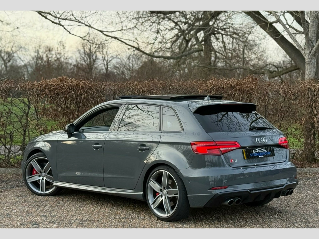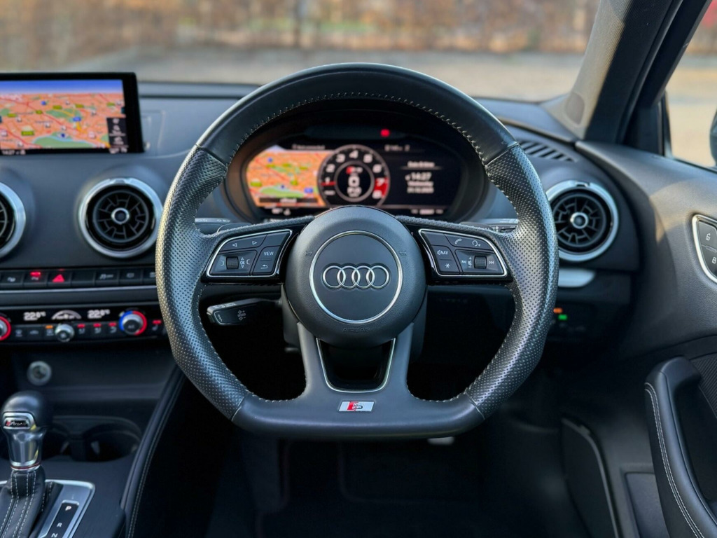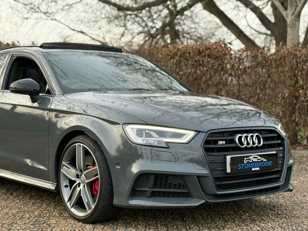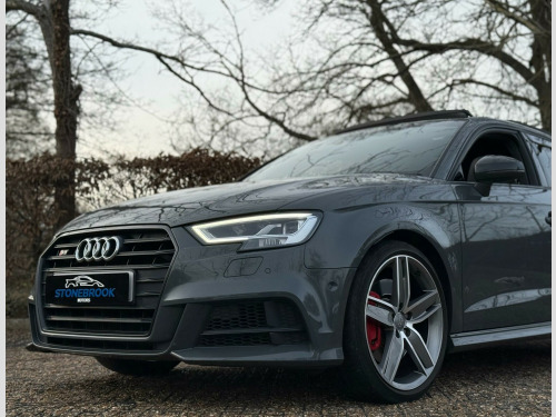 2017 Audi S3 2.0 TFSI Quattro Black Edition S tronic - 38,500 mile - £24989This 2017 Audi S3 2.0 TFSI S line is a sharp, premium four-door that combines sleek styling, advanced tech, and refined performance. Finished in Nano Grey with the sought-after Black Edition trim, Virtual Cockpit, and Magnetic Ride, this is a superb example of Audi's compact executive hatchback.Under the bonnet is a 2.0-litre TFSI petrol engine producing 310 PS, paired with the smooth and responsive S tronic automatic gearbox, delivering a perfect balance of performance and comfort and it's ULEZ compliant.Spec highlights include: • Panoramic Sunroof • Bang and Olufsen Sound System • Magnetic Ride • Comfort and Sound • Technology Pack Advanced • Rear View Camera • Hill Hold Assist•Black Edition Styling Pack (Sportier bumpers, side skirts, badging)•Audi Virtual Cockpit (12.3'' Customisable Digital Display)•Apple CarPlay & Android Auto•MMI Navigation Plus with Touchpad Interface• Front Super Sport seats with 'S' embossed logo in Fine Nappa leather•LED Headlights with LED Daytime Running Lights•Front & Rear Parking Sensors•Cruise Control with Speed Limiter•Audi Drive Select (Comfort, Auto, Dynamic, Efficiency)•Dual-Zone Climate Control•Bluetooth with Audio Streaming & Voice Control•Flat-Bottom Leather Multifunction Steering Wheel•19'' Black Edition Alloy Wheels (original)Stylish, well-equipped and sporty, this S3 delivers premium Audi feel in a compact, efficient, and ULEZ-compliant package perfect for commuting, long journeys, or professional use. ar-view camera, technology pack, audi phone box with wireless charging, technology package - advanced, brake calipers painted in red with s3 logo at the front, door mirrors - heated-electrically adjustable-folding-auto-dimming, panoramic glass sunroof, 19in alloy wheels - 5-v spoke design in matt titanium look - diamond cut finish, brake calipers - red with s3 logo, door mirrors - heated-electrically adjustable-folding, fine nappa leather - s embossed super sports seats - rotor grey with anthracite stitching, technology package, matrix led exterior lighting pack, audi magnetic ride, 18in alloy wheels - 5-arm turbine design in magnesium look - diamond cut finish, 2 x usb charging ports and 1 x aux-in, 6-airbag system with knee airbag for driver, aluminium interior elements, anti theft locking wheel bolts, anti-theft alarm, audi beam, audi connect infotainment services - 3 month trial, audi drive select, audi smartphone interface, bang and olufsen sound system, black styling package, bluetooth interface, cd drive, colour drivers information system - dis, cruise control, dab digital radio, door mirrors - black housing, door mirrors - electrically adjustable and heated, dual-zone electronic climate control, esc - electronic stabilisation control inc abs - asr and edl, electric windows - front and rear, electromechanical parking brake, exhaust tailpipe - dual-branch oval twin with chrome finish, first aid kit, front centre armrest, front and rear floor mats, headlights washers, heated front seats, isofix child seat mounting and top tether for front passenger and outer rear seats, illuminated door sill trims with s logo, immobiliser, inlays - matt brushed aluminium, instrument dials with s3 logo, led headlights with led rear lights and dynamic rear indicators, led interior light package, light and rain sensor, luggage compartment - lashing points x4, mmi navigation - sd card based, mmi radio plus with 7in electrically retractable colour mmi screen, manual front seat adjustment, non-smoking package, pedals in stainless steel, platinum grey s grille with chrome plated dual struts and s3 logo, pollen filter, privacy glass, progressive steering, remote central locking with 2 fold away keys, s design body styling, s sport suspension, s3 front bumper, s3 roof spoiler, seat belt monitoring, seats - split folding rear - 60-40, space saver spare wheel, steering wheel - 3-spoke leather-multifunction-flat bottomed-shift paddles, storage compartments in the door side trims-centre console-under drivers seat, storage package, tool kit and car jack, tyre pressure monitoring system, voice control, warning triangle