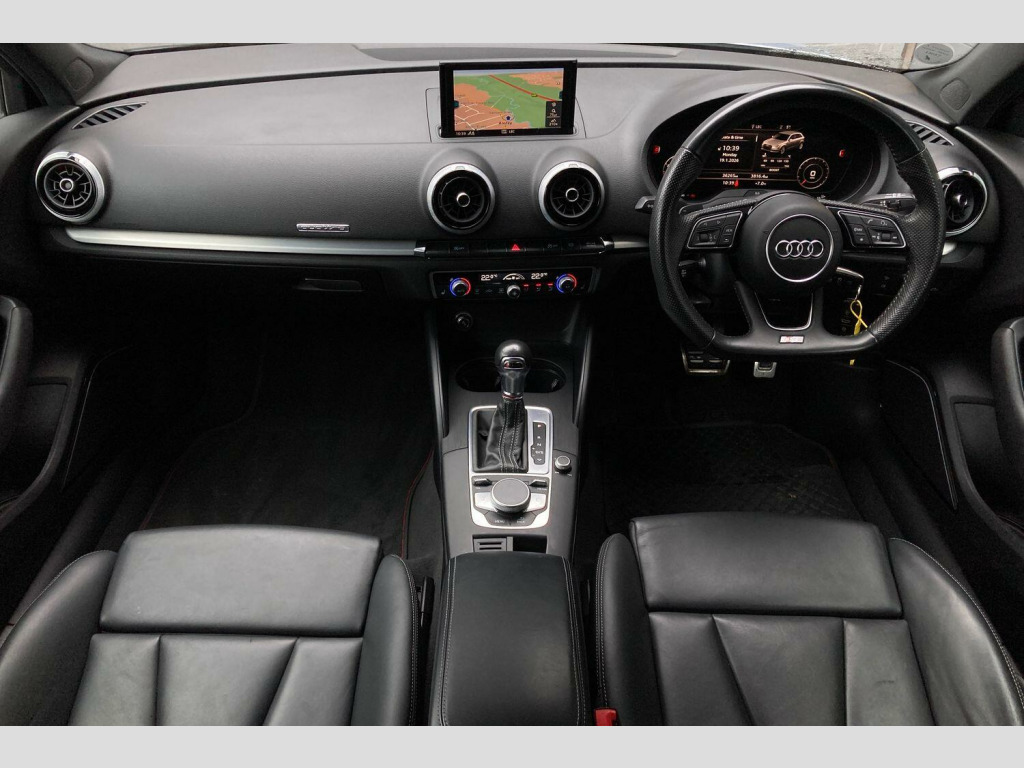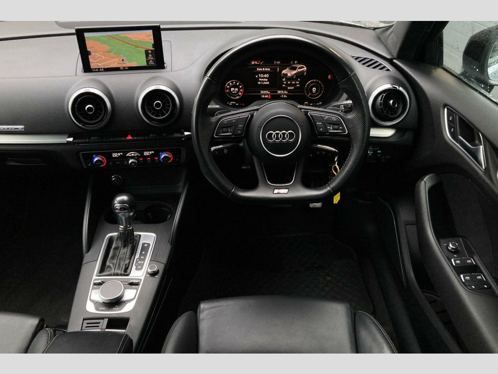 Boasting exceptionally low mileage for its age, this 2019 Audi S3 TFSI Black Edition presents a compelling proposition. This four wheel drive model, powered by a 2.0 litre petrol engine, meets Euro 6 emissions standards and comes with a three month warranty for your peace of mind. Its MOT is valid until January 2027, and it benefits from partial service history. Features include rear parking sensors for easier manoeuvring, an auto dimming rear view mirror complemented by automatic headlights, and dual zone electronic climate control to ensure comfort for all occupants. The striking LED headlights and dynamic rear indicators, along with the premium Bang and Olufsen sound system, further enhance the driving experience.Peace of Mind Package:- Partial Service History- Mot Valid until January 2027- 3 Months Comprehensive Warranty – Included FREE- 3 Months Roadside Assistance – Included FREEThis Audi S3 TFSI Black Edition offers impressive performance, achieving 0 to 62 miles per hour in a swift 4.7 seconds, a figure that highlights its dynamic capabilities compared to many similar vehicles. The large boot space provides excellent practicality for everyday use and longer journeys. The combination of its advanced technology, refined interior, and potent performance makes this S3 a standout choice for those seeking a premium and engaging driving experience.Buy Your Next Car Your Way! Reserve online for just £100, pay in full, or apply for tailored finance. We welcome part exchanges with competitive valuations and offer a 14-day money-back guarantee plus nationwide delivery (subject to availability and cost to be paid by customer). Explore our wide range of vehicles or request a personalised video. *Unaccompanied test drives available on request. T&Cs apply.Disclaimer: While every effort has been made to ensure accuracy, please confirm specific features with our sales team before purchase.. 18in Alloy Wheels - 5-Arm Trapezoid Design Audi Sport in Gloss Anthracite Black - Diamond Cut Finish, 2 x USB Charging Ports and 1 x AUX-IN, 6-Airbag System with Knee Airbag for Driver, Aluminium Interior Elements, Anti Theft Locking Wheel Bolts, Anti-Theft Alarm, Audi Beam, Audi Connect, Audi Connect Infotainment Services - 3 Month Trial, Audi Drive Select, Audi Smartphone Interface, Auto-Dimming Rear-View Mirror with Light and Rain Sensor, Bang and Olufsen Sound System, Black Styling Package, Bluetooth Interface, Brake Calipers Painted in Black with S3 Logo at the Front, CD Drive, Cloth Headlining, Colour Drivers Information System - DIS, Cruise Control, DAB Digital Radio, Door Mirrors - Black Housing, Door Mirrors - Electrically Adjustable and Heated with Integrated LED Side Indicators, Dual-Zone Electronic Climate Control, ESC - Electronic Stabilisation Control inc ABS - ASR and EDL, Electric Windows - Front and Rear, Electromechanical Parking Brake, Exhaust Tailpipe - Dual-Branch Oval Twin with Chrome Finish, First Aid Kit and Warning Triangle, Front Centre Armrest, Front and Rear Floor Mats, Headlights Washers, Heated Front Seats, Heated Windscreen Washer Jets, Hill Hold Assist, ISOFIX Child Seat Mounting and Top Tether, Illuminated Door Sill Trims with S Logo, Inlays - Matt Brushed Aluminium, Instrument Dials with S3 Logo, LED Headlights with LED Rear Lights and Dynamic Rear Indicators, LED Interior Light Package, Lashing Points in Luggage Compartment, MMI Navigation - SD Card Based, MMI Radio Plus with 7in Electrically Retractable Colour MMI Screen, Manual Seat Adjustment, Non-Smoking Package, Pedals in Stainless Steel, Privacy Glass, Progressive Steering, Rear Parking Sensors, Remote Central Locking with 2 Fold Away Keys, S Design Body Styling, S Sport Suspension, Seat Belt Monitoring, Split Folding Rear Seat Bench - 60-40 or Fully, Steering Wheel - 3-Spoke Leather-Multifunction-Flat Bottomed-Shift Paddles, Storage Compartments in the Door Side Trims-Centre Console-Under Drivers Seat, Storage Package, Tool Kit, Tyre Pressure Warning Light, Tyre Repair Kit. Part service history