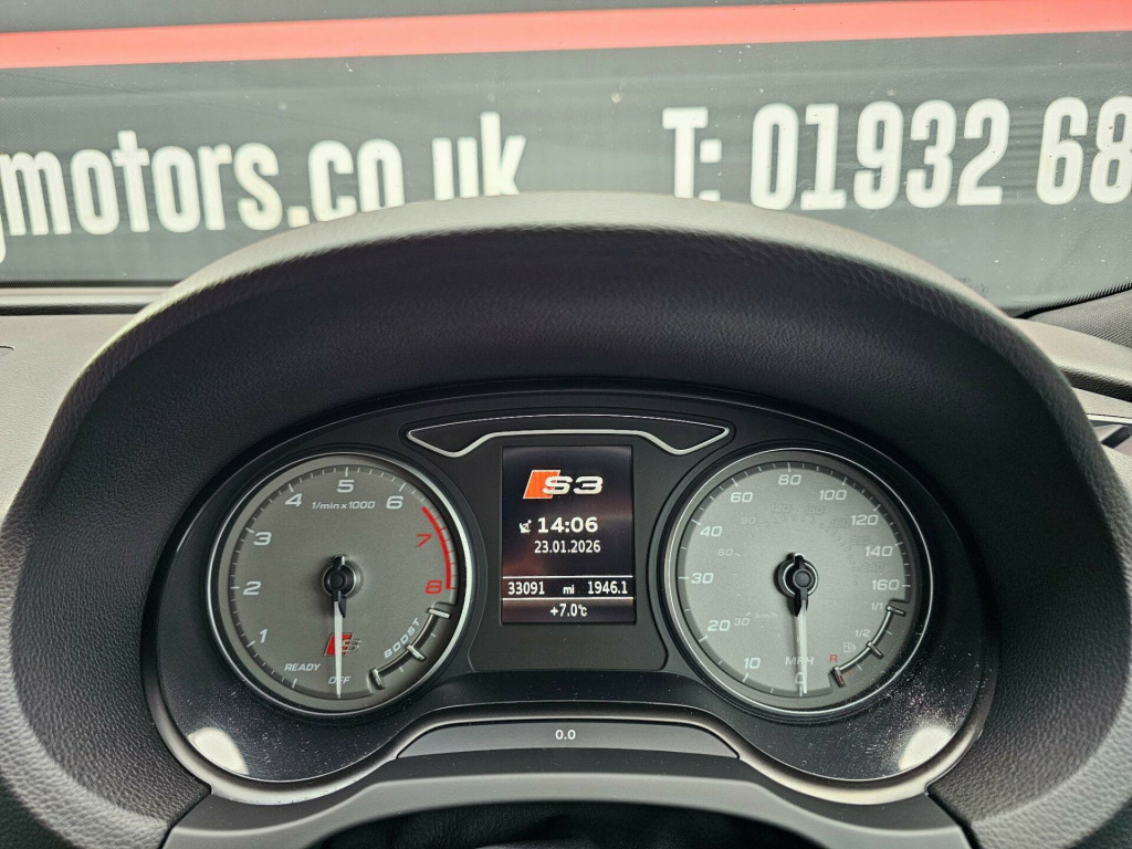 ***WE ARE A RAC APPROVED & AA APPROVED GARAGE***THE CAR COMES WITH A FULL SERVICE HISTORY/LATEST SERVICE CARRIED OUT AT 33095 MILES/OIL SERVICE CARRIED OUT/2 KEYS/ALLOYS HAVE BEEN REFURBISHED TO A HIGH STANDARD/GOOD TYRES/ULEZ FREE/3 MONTHS PARTS AND LABOUR WARRANTY INCLUDED IN THE ASKING PRICE/EXTENDED WARRANTIES AVAILABLE STARTING FROM £55.00 A MONTH/WARRANTIES AVAILABLE UP TO 3 YEARS/MINIMUM 6 MONTHS MOT/FINANCE AVAILABLE/DELIVERY AVAILABLE/PDI CARRIED OUT ON ALL VEHICLES/HPI CLEAR/PART EXCHANGES WELCOME ANY QUESTIONS PLEASE DO GET IN CONTACT WITH US*****ADMIN FEE APPLIES ON ALL USED CARS*****LOCATED BEHIND TOP GOLF*****KT15 2DW*****PLEASE SEE T & C'S ON OUR WEBSITE FOR MORE INFORMATION***** ake calipers painted in red with s3 logo at the front, 18in alloy wheels - 5-arm trapezoid design audi sport in gloss anthracite black - diamond cut finish, 2 x usb charging ports and 1 x aux-in, 6-airbag system with knee airbag for driver, aluminium interior elements, anti theft locking wheel bolts, anti-theft alarm, audi beam, audi connect, audi connect infotainment services - 3 month trial, audi drive select, audi smartphone interface, auto-dimming rear-view mirror with light and rain sensor, bang and olufsen sound system, black styling package, bluetooth interface, brake calipers painted in black with s3 logo at the front, cd drive, cloth headlining, colour drivers information system - dis, cruise control, dab digital radio, door mirrors - black housing, door mirrors - electrically adjustable and heated with integrated led side indicators, dual-zone electronic climate control, esc - electronic stabilisation control inc abs - asr and edl, electric windows - front and rear, electromechanical parking brake, exhaust tailpipe - dual-branch oval twin with chrome finish, first aid kit and warning triangle, front centre armrest, front and rear floor mats, headlights washers, heated front seats, heated windscreen washer jets, hill hold assist, isofix child seat mounting and top tether, illuminated door sill trims with s logo, inlays - matt brushed aluminium, instrument dials with s3 logo, led headlights with led rear lights and dynamic rear indicators, led interior light package, lashing points in luggage compartment, mmi navigation - sd card based, mmi radio plus with 7in electrically retractable colour mmi screen, manual seat adjustment, non-smoking package, pedals in stainless steel, privacy glass, progressive steering, rear parking sensors, remote central locking with 2 fold away keys, s design body styling, s sport suspension, seat belt monitoring, split folding rear seat bench - 60-40 or fully, steering wheel - 3-spoke leather-multifunction-flat bottomed-shift paddles, storage compartments in the door side trims-centre console-under drivers seat, storage package, tool kit, tyre pressure warning light, tyre repair kit