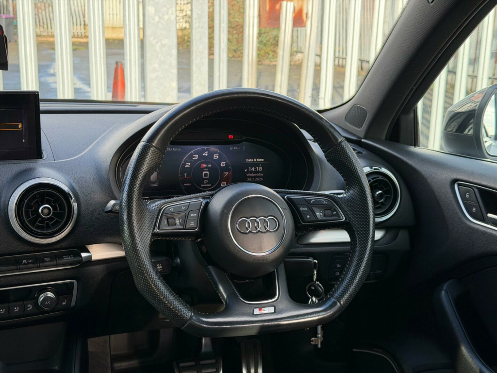 Aura Motor Group Ltd, Based In Greater LondonAudi S3 2.0 TFSI Black Edition Sportback S Tronic quattro Euro 6 (s/s) 5dr- HPI CLEAR, Supplied With 2 Keys, Full Service History, Just Been Serviced And Health Checked, Virtual Cockpit, Parking Sensors, Bang And Olufsen Sound System, Full Leather Interior, Black Pack, Very Clean Example, Fitted With Meta Tracker And Ghost!Passenger front door has a slight minor dent, hence the price. We At Aura Motor Group Thrive To Serve The Best, We Offer Exclusive Vehicles With Great Prices, We Are Actually The Only Dealership To Price All Vehicles Way Under Retail, Giving YOU A Chance To Grab Your Next Car At The Best Price, So What You Waiting For? Get In Touch With Our Sales Team Now!All Our Vehicles Go Through A Full Comprehensive Health Check And A Engine Oil Service, Minimum 12 Month MOT And 3 Month Warranty.All Our Vehicles Are HPI CLEAR, Full Valet Given, Extended Warranties Available, Finance Available, Nationwide Delivery Around The UK, All Part Exchanges Welcome, Click&Collect, Videos Upon Request, WE ARE OPEN 7 DAYS A WEEK, Phone Lines Open Till Late, AURA MOTOR GROUP LTD (DRIVEN TO BE OUTSTANDING) di side assist, technology pack, technology package - advanced, headlights - high-beam assist, rear side airbags, 18in alloy wheels - 5-arm turbine design in magnesium look - diamond cut finish, 2 x usb charging ports and 1 x aux-in, 6-airbag system with knee airbag for driver, aluminium interior elements, anti theft locking wheel bolts, anti-theft alarm, audi beam, audi connect infotainment services - 3 month trial, audi drive select, audi smartphone interface, bang and olufsen sound system, black styling package, bluetooth interface, cd drive, colour drivers information system - dis, cruise control, dab digital radio, door mirrors - black housing, door mirrors - electrically adjustable and heated, dual-zone electronic climate control, esc - electronic stabilisation control inc abs - asr and edl, electric windows - front and rear, electromechanical parking brake, exhaust tailpipe - dual-branch oval twin with chrome finish, first aid kit, front centre armrest, front and rear floor mats, headlights washers, heated front seats, isofix child seat mounting and top tether for front passenger and outer rear seats, illuminated door sill trims with s logo, immobiliser, inlays - matt brushed aluminium, instrument dials with s3 logo, led headlights with led rear lights and dynamic rear indicators, led interior light package, light and rain sensor, luggage compartment - lashing points x4, mmi navigation - sd card based, mmi radio plus with 7in electrically retractable colour mmi screen, manual front seat adjustment, non-smoking package, pedals in stainless steel, platinum grey s grille with chrome plated dual struts and s3 logo, pollen filter, privacy glass, progressive steering, remote central locking with 2 fold away keys, s design body styling, s sport suspension, s3 front bumper, s3 roof spoiler, seat belt monitoring, seats - split folding rear - 60-40, space saver spare wheel, steering wheel - 3-spoke leather-multifunction-flat bottomed-shift paddles, storage compartments in the door side trims-centre console-under drivers seat, storage package, tool kit and car jack, tyre pressure monitoring system, voice control, warning triangle