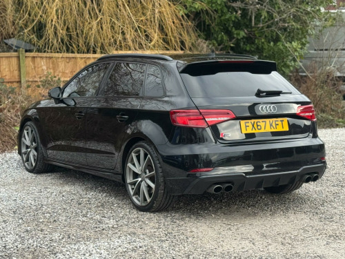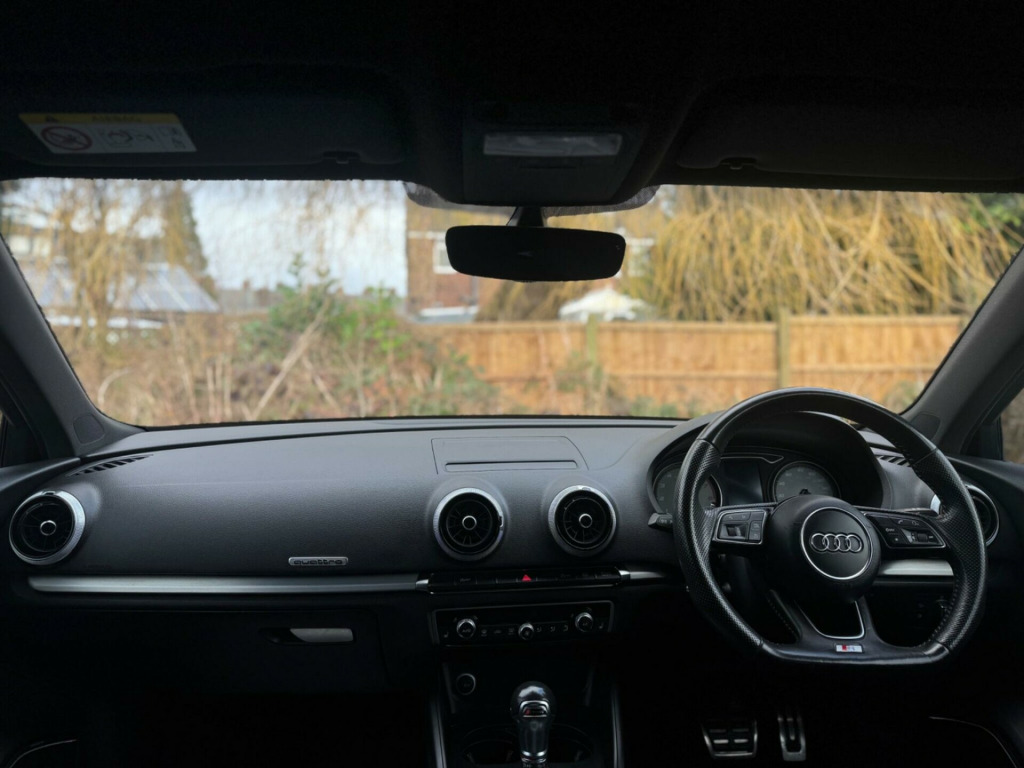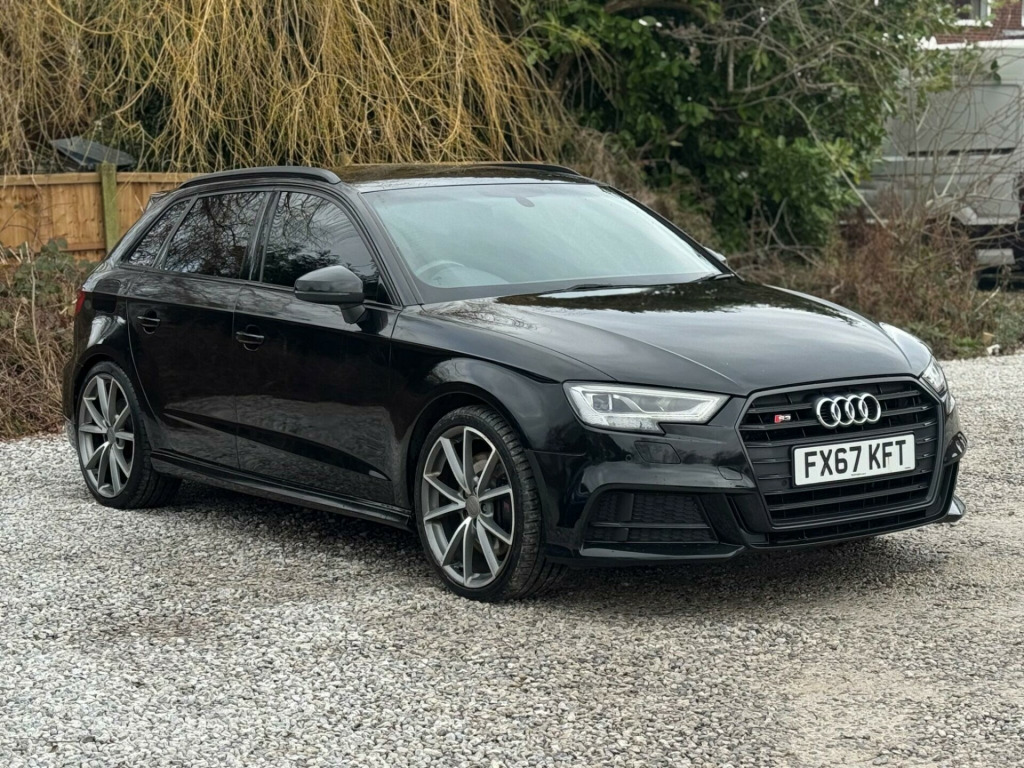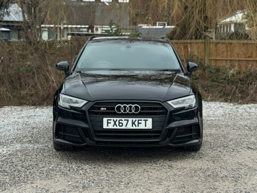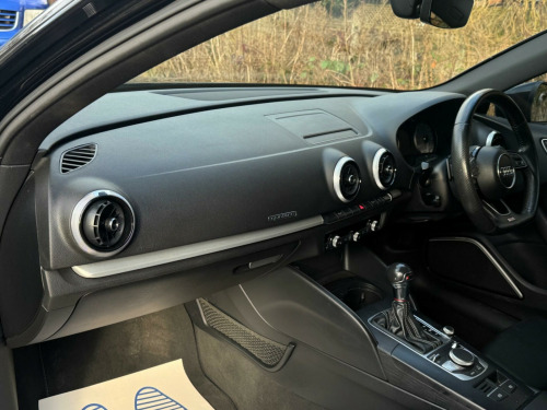 SERVICE HISTORY - 5 MAIN DEALER SERVICESLOGBOOK19in Alloy Wheels - 5-V Spoke Design in Matt Titanium Look - Diamond Cut FinishVery rareBlack Roof RailsVery rareDoor Mirrors - Heated-Electrically Adjustable-FoldingVery rareFine Nappa Leather - S Embossed Sports Seats - Black with Rock Grey StitchingThis 2017 Audi S3 TFSI Black Edition offers a compelling blend of performance and premium features. As a Euro 6 compliant model, it is powered by a potent 2.0 litre petrol engine paired with Audi's renowned four wheel drive system, ensuring confident handling in all conditions. This particular S3 boasts striking LED headlights with dynamic rear indicators, complemented by a sophisticated Bang and Olufsen sound system for an immersive audio experience. Comfort is further enhanced by dual zone electronic climate control and the convenience of a Bluetooth interface, while automatic headlights and rain sensors provide effortless driving.The S3 TFSI Black Edition stands out with its impressive acceleration, achieving 0 to 62 miles per hour in a swift 4.6 seconds, a performance metric that highlights its dynamic capabilities. This rapid acceleration, combined with its advanced four wheel drive, positions it favourably against other vehicles in its class. Practicality is not overlooked, with generous boot space designed to accommodate your needs. The inclusion of LED lighting, both front and rear, not only enhances visibility but also contributes to the car's modern aesthetic. in alloy wheels - 5-v spoke design in matt titanium look - diamond cut finish, black roof rails, door mirrors - heated-electrically adjustable-folding, fine nappa leather - s embossed sports seats - black with rock grey stitching, 18in alloy wheels - 5-arm turbine design in magnesium look - diamond cut finish, 2 x usb charging ports and 1 x aux-in, 6-airbag system with knee airbag for driver, aluminium interior elements, anti theft locking wheel bolts, anti-theft alarm, audi beam, audi connect infotainment services - 3 month trial, audi drive select, audi smartphone interface, bang and olufsen sound system, black styling package, bluetooth interface, cd drive, colour drivers information system - dis, cruise control, dab digital radio, door mirrors - black housing, door mirrors - electrically adjustable and heated, dual-zone electronic climate control, esc - electronic stabilisation control inc abs - asr and edl, electric windows - front and rear, electromechanical parking brake, exhaust tailpipe - dual-branch oval twin with chrome finish, first aid kit, front centre armrest, front and rear floor mats, headlights washers, heated front seats, isofix child seat mounting and top tether for front passenger and outer rear seats, illuminated door sill trims with s logo, immobiliser, inlays - matt brushed aluminium, instrument dials with s3 logo, led headlights with led rear lights and dynamic rear indicators, led interior light package, light and rain sensor, luggage compartment - lashing points x4, mmi navigation - sd card based, mmi radio plus with 7in electrically retractable colour mmi screen, manual front seat adjustment, non-smoking package, pedals in stainless steel, platinum grey s grille with chrome plated dual struts and s3 logo, pollen filter, privacy glass, progressive steering, remote central locking with 2 fold away keys, s design body styling, s sport suspension, s3 front bumper, s3 roof spoiler, seat belt monitoring, seats - split folding rear - 60-40, space saver spare wheel, steering wheel - 3-spoke leather-multifunction-flat bottomed-shift paddles, storage compartments in the door side trims-centre console-under drivers seat, storage package, tool kit and car jack, tyre pressure monitoring system, voice control, warning triangle