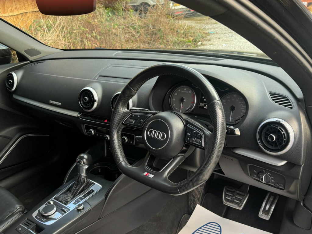 This 2017 Audi S3 2.0 TFSI Black Edition Sportback S Tronic quattro Euro 6 (s/s) 5dr Hatchback is currently available for £12,995 in Oldham Lancashire with Petrol engine and Automatic gearbox. For more information or to arrange a viewing, click here to send us an email using form below.