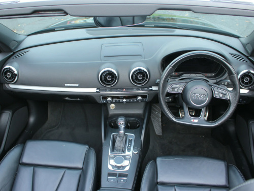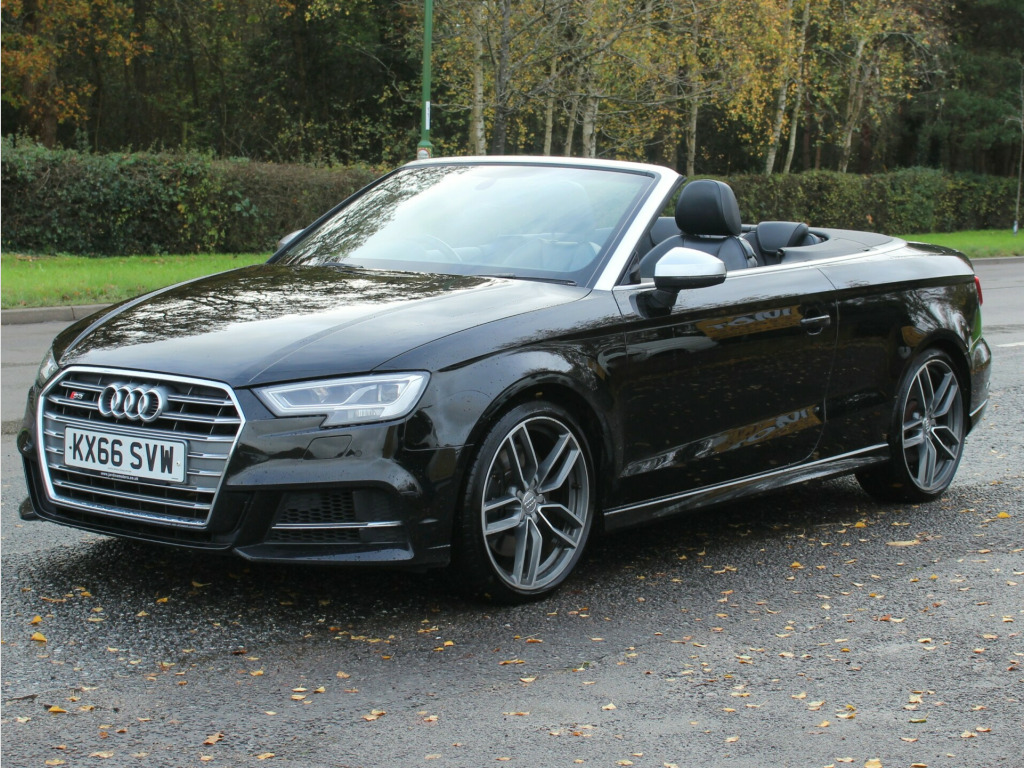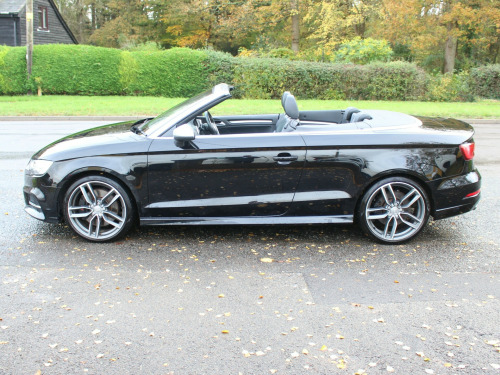This 2016 Audi S3 2.0 TFSI Cabriolet with 66350 miles is a sleek convertible powered by petrol, perfect for open-air driving. With 4 seats and 2 doors, it's stylish and practical, while being ULEZ compliant. The 19in Alloy Wheels with a Contrast Grey finish, Acoustic Hood, Aluminium Window Trims, and Aluminium-Effect Door Mirror Housings add to its sophisticated look. The Anti Theft Locking Wheel Bolts ensure its security. With the S Tronic quattro Euro 6 (s/s) engine delivering 310 ps, this Audi S3 is a powerful and efficient vehicle, offering a thrilling driving experience., OPEN 7 DAYS A WEEK - A SELECTION OF UP TO 200 CARS AND VANS AVAILABLE. Click on dealer 'VISIT WEBSITE' link for many more large photographs of this car. We are a West Sussex Trading Standards Approved 'Buy with Confidence Dealership'. in alloy wheels - 5 twin spoke star design in contrast grey with diamond cut finish, acoustic hood - fully automatic, aluminium window trims, aluminium-effect door mirror housings, anti theft locking wheel bolts, black hood, brake calipers painted in black with s3 logo at the front, door mirrors - electrically adjustable and heated with integrated led side indicators, electric windows - front and rear, exhaust tailpipe - dual-branch oval twin with chrome finish, platinum grey s grille with chrome plated dual struts and s3 logo, s design body styling, tyre repair kit, windscreen - acoustic with sunband, 2 x usb charging ports and 1 x aux-in, audi connect infotainment services - 3 month trial, audi smartphone interface, audi sound system, bluetooth interface, cd drive, dab digital radio, integrated aerial concealed under side panel trim, mmi navigation - sd card based, mmi radio plus with 7in electrically retractable colour mmi screen, active bonnet, active roll-over protection system, adaptive brake lights, airbags, anti-theft alarm, esc - electronic stabilisation control, electromechanical parking brake, emergency braking function, first aid kit and warning triangle, isofix child seat mounting and top tether for front passenger and outer rear seats, keyless go with remote central locking, multi collision brake assist, seat belt reminder for all seats, air vents - aluminium look, aluminium interior elements, cloth headlining in black, cupholders, dual-zone electronic climate control, flat-bottomed 3-spoke leather-trimmed multi-function sport steering wheel with gear-shift paddles, floor mats - front and rear in velour, front centre armrest, front sports seats, gear knob - perforated leather, hood lining - black, illuminated door sill trims with s logo, inlays - matt brushed aluminium, instrument dials with s3 logo, led interior light package, luggage compartment - lashing points x4, non-smoking package, pedals - brushed stainless steel, seats - heated front, seats - split folding rear - 50-50 or fully, storage compartments in the door side trims-centre console-under drivers seat, storage package, sun visors - folding and swivelling on drivers and front passengers side with covered vanity mirror, tool kit and car jack, audi beam, headlights washers, high mounted third brake light, led headlights with led rear lights and dynamic rear indicators, light and rain sensor, audi magnetic ride, colour drivers information system - dis, cruise control, progressive steering, rear parking sensors, rest recommendation system, s sport suspension, tyre pressure warning light, voice control system