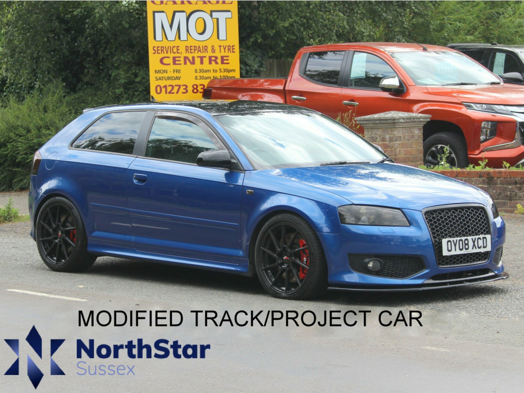PART EXCHANGE VEHICLE ON OFFER For sale is a 2008 Audi A3 S3 Quattro 3dr, MODIFIED AND FAST - IDEAL FOR A TRACK CAR/PROJECT CAR with a sporty hatchback design and a powerful petrol engine. This beauty has only clocked 70580 miles, making it a low-mileage gem. With a total of 6 previous registered keeper(s), this car has been well-loved and meticulously maintained. The Audi A3 boasts a smooth and agile ride, combined with the legendary Quattro all-wheel drive system for superior handling and performance. With the iconic Audi badge and a reputation for quality, this stylish hatchback is sure to turn heads wherever it goes. Don't miss out on the opportunity to own this impressive vehicle. PLEASE CALL FOR MORE INFO., OPEN 7 DAYS A WEEK - A SELECTION OF UP TO 200 CARS AND VANS AVAILABLE. Click on dealer 'VISIT WEBSITE' link for many more large photographs of this car. We are a West Sussex Trading Standards Approved 'Buy with Confidence Dealership'. justable steering column/wheel, climate control, electric windows (front), in car entertainment (radio/cd), seat height adjustment, seats heated (driver/passenger), speakers, steering wheel leather, steering wheel sports, upholstery leather, air bag driver, air bag passenger, air bag side, alarm, anti-lock brakes, central door locking, centre rear seat belt, electronic stability programme, exterior lighting (xenon headlights), front fog lights, head restraints, immobiliser, power-assisted steering, seat - isofix anchorage point, alloy wheels (18in), spare wheel (space saver), computer (driver information system)