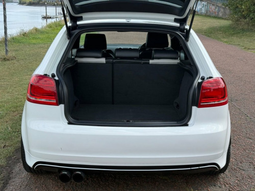 STUNNING AUDI S3 IN WHITE WITH UPGRADED ALLOY WHEELS, FRONT SPLITTER, REAR SPOILER, PRIVACY GLASS AND LOTS MORE, IT COMES WITH SOME GREAT SPEC INCLUDING 2 TONE LEATHER INTERIOR, HEATED FRONT SEATS, DUAL AIR CON, SAT NAV, FLAT BOTTOM MULTI FUNCTIONING STEERING WHEEL AND LOTS MORE, THIS CAR HAS BEEN VERY WELL MAINTAINED WITH 11 STAMPS IN THE SERVICE BOOK, LOADS OF PAPERWORK, INVOICES THERE FOR THE STAGE 1 REMAP, UPGRADED PERFORMANCE CLITCH AND FLYWHEEL AND HIGH PRESSURE FUEL PUMP. Adjustable Steering Column/Wheel, Air Bag Driver, Air Bag Passenger, Air Bag Side, Alarm, Alloy Wheels (18in), Anti-Lock Brakes, Armrest, Body Coloured Bumpers, Central Door Locking, Centre Rear Seat Belt, Climate Control, Computer (Driver Information System), Cup Holder, Electric Windows (Front/Rear), Electronic Brake Force Distribution, Electronic Stability Programme, Exterior Lighting (Xenon Headlights), Front Fog Lights, Gear Knob Leather, Head Restraints, Heated Rear Screen, Immobiliser, In Car Entertainment (Radio/CD/MP3), Mirrors External, Power-Assisted Steering, Seat - ISOFIX Anchorage Point, Seat Height Adjustment, Seats Heated (Driver/Passenger), Seats Split Rear, Spare Wheel (Spa