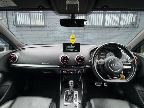 12V Power Socket - Centre Console, 12V Power Socket - Rear, 18in Alloy Wheels - 5-Twin-Spoke Star De, 2 x SDXC Card Readers, ABS - Anti-Lock Braking System, AMI - Audi Music Interface, ASR - Anti Slip Regulation, Adaptive Brake Lights, Airbags - Driver, Airbags - Drivers Knee, Airbags - Front Passenger, Airbags - Front Side, Airbags - Head Level Side For Front and , Alarm - Thatcham Category 1, Aluminium Interior Elements, Aluminium-Effect Door Mirror Housings, Anti Theft Locking Wheel Bolts, Audi Drive Select, Audio Output - 80 Watts, Brake Calipers - Black with S3 Logo, Car Jack, Cloth Headlining in Black, Coat Hooks - B Pillar - Both Sides, Colour Drivers Information System - DIS, Cup Hol