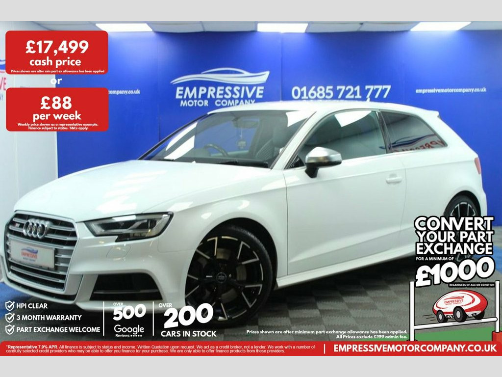 ****AWESOME AUDI**** Just in! This Stunning 2017 AUDI S3 2.0 TFSI Hatchback 3dr Petrol S Tronic quattro Euro 6 (s/s) (310 ps) Finished In White! 72,105 Miles - Audi S3 - Quattro - 2.0L Petrol - 18" Black Wheels - Parking Sensors - Audi Puddle Lights - Full Leather S3 Seats - Automatic LED Headlights - Automatic Window Wipers - Bang and Olufsen Speakers - Voice Assistant - Digital Dash - Paddle Shifters - Cruise Control - Electric Handbrake - Stop Start - Satnav - Bluetooth - Automatic Dual Zone Climate Control - Heated Seats - Efficiency Mode - Comfort Mode - Auto Mode - Dynamic Mode - Individual Mode - Heated Mirrors 18in Alloy Wheels - 5 Twin Spoke Star De, 2 x USB Charging Ports and 1 x AUX-IN, 6-Airbag System with Knee Airbag for Dri, Aluminium Interior Elements, Aluminium Window Trims, Aluminium-Effect Door Mirror Housings, Anti Theft Locking Wheel Bolts, Anti-Theft Alarm, Audi Beam, Audi Connect Infotainment Services - 3 M, Audi Drive Select, Audi Smartphone Interface, Audi Sound System, Auto-Dimming Rear-View Mirror, Bluetooth Interface, Brake Calipers - Black with S3 Logo, CD Drive, Colour Drivers Information System - DIS, Cruise Control, DAB Digital Radio, Door Mirrors - Electrically Adjustable a, Dual-Zone Electronic Climate Control, Electric Windows - Front, Electromechanical Parking Brake, ESC