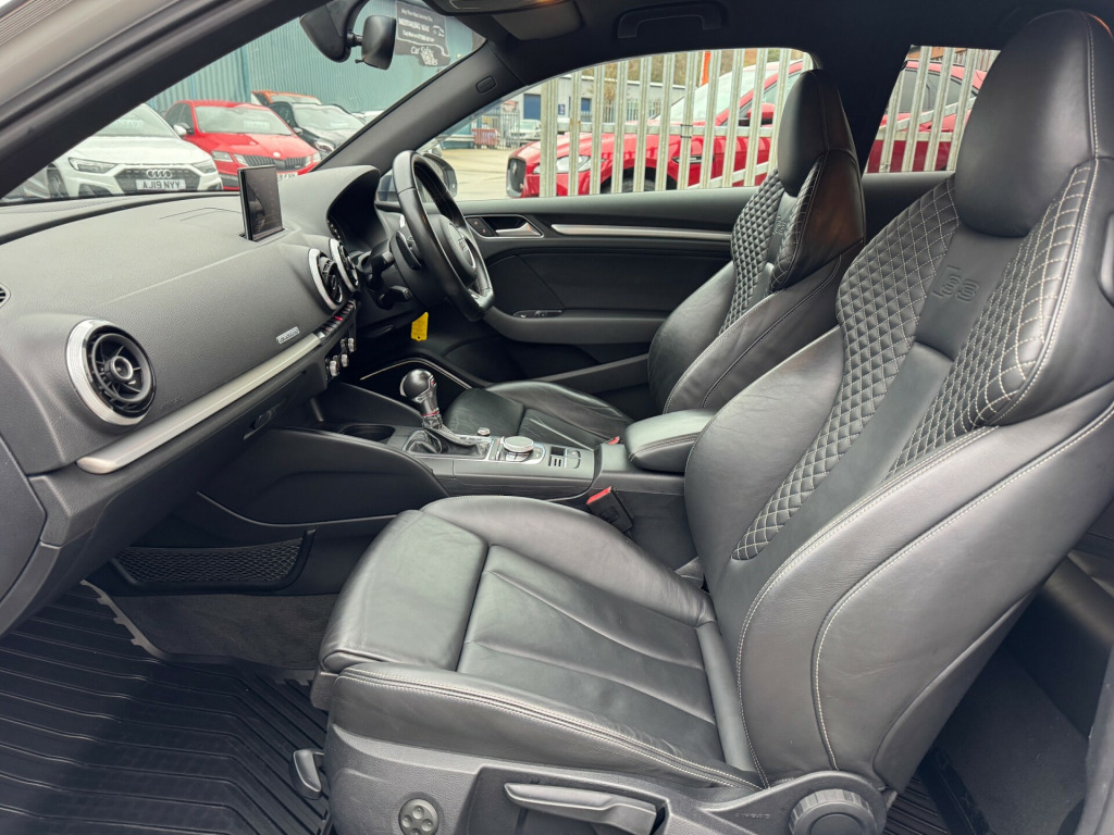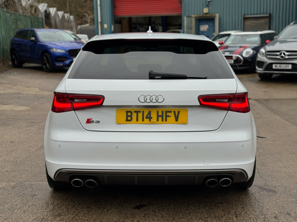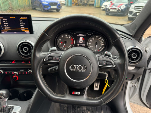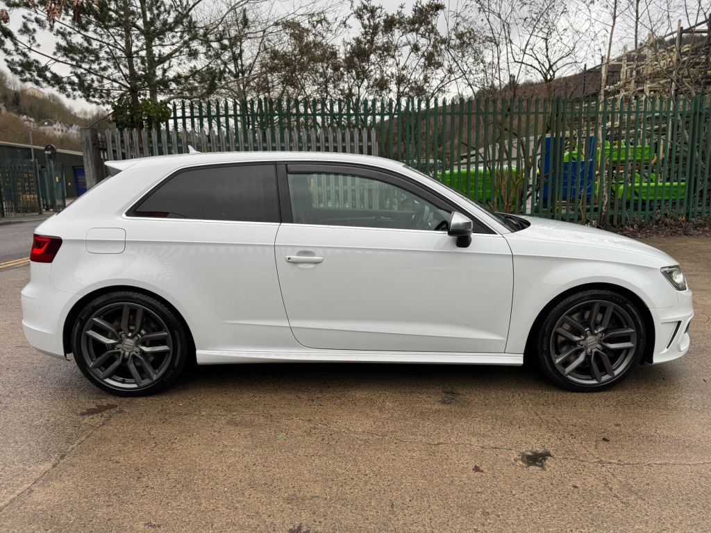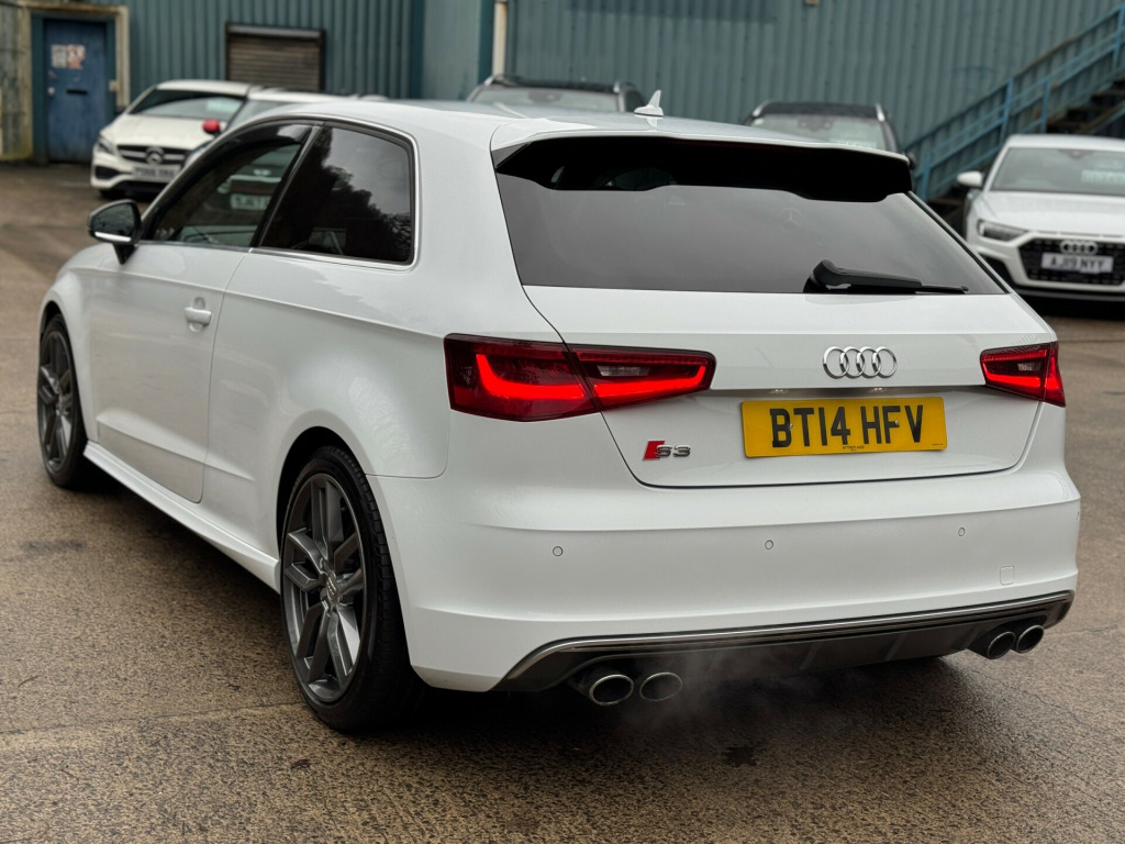This 2014 Audi S3 2.0 TFSI Hatchback 3dr Petrol S Tronic quattro Euro 6 (s/s) (300 ps) is a sleek and stylish hatchback with just 95603 miles on the clock. Powered by a petrol engine and is ULEZ compliant, making it a great choice for city driving. This compact car may have 3 doors, but it still comfortably seats 5 people, making it perfect for small families or groups of friends. Its features include a 5.8-inch display screen, DAB digital radio, and the Audi Music Interface, along with 12V power sockets in the centre console and rear. With its impressive power and practicality, this Audi S3 is ready to hit the road and provide an exciting driving experience for its next owner.UK delivery available.Part exchange welcome.Extended warranty options available.Part exchange welcome.AA extended warranty available.Trading standards approved dealership.Autotrader highly rated dealership. v power socket - centre console, 12v power socket - rear, ami - audi music interface, dab digital radio, display screen colour - 5.8in, mmi radio, mobile telephone preparation - bluetooth interface, sdhc card reader x2, speakers x8, usb connection, 18in alloy wheels - 5-twin-spoke star design, aluminium-effect door mirror housings, anti theft locking wheel bolts, brake calipers - black with s3 logo, door handles - chrome, door mirrors - body coloured with integrated indicators, door mirrors - electrically adjustable and heated, electric windows - front, heat insulating glass, heated rear windscreen, model and engine technology badges at rear, radiator grille - platinum grey with horizontal double chrome bars, s design body styling, window surrounds - aluminium, abs - anti-lock braking system, asr - anti slip regulation, airbags - driver, airbags - drivers knee, airbags - front passenger, airbags - front side, airbags - head level side for front and rear, alarm - thatcham category 1, ebd - electronic brakeforce distribution, esp - electronic stability programme, first aid kit, front passenger airbag deactivation switch, isofix child seat mounting for front passenger and rear outer seats, immobiliser, remote central locking, thatcham category 1 immobiliser, warning triangle, aluminium interior elements, car jack, cup holders - rear x2, cup holders - x2 in centre console, door sill trims - aluminium with s3 logo, door sills with aluminium inlays, dual-zone electronic climate control, front centre armrest, front sports seats, front and rear floor mats, grab handles - dampered, head restraints - audi backguard adjustable, head restraints - rear, heated front seats, illuminated vanity mirrors, inlays - matt brushed aluminium, luggage compartment - side net, manual front seat adjustment, matt-brushed aluminium door trims, pedals in stainless steel, s logos on the mmi and dis, s3 - instrument dials in grey with white needles and aluminium look needle hub, smoking package, split folding rear seat - 1/3 2/3 or all, steering wheel - 3-spoke leather-multifunction-flat bottomed-shift paddles, steering wheel - height and reach adjustable, storage compartment under rear seat, storage net in front passenger footwell and front seat backrests, storage and luggage package, sun blinds - manual for side window, tool kit, audi drive select, colour drivers information system - dis, edl - electronic differential lock, progressive steering, s sport suspension, tyre pressure monitoring system, voice control - navigation, washer fluid level indicator, front fog lights, halogen headlights, headlights - automatic dynamic range control, headlights - bi-xenon plus, headlights washers, led daytime running lights