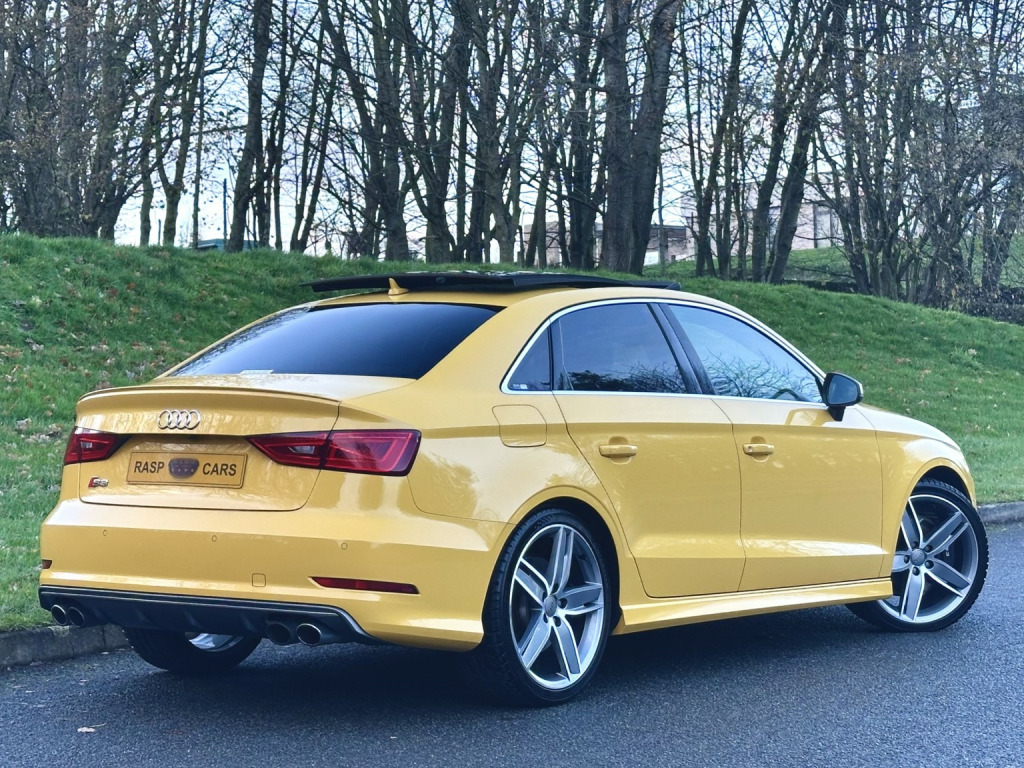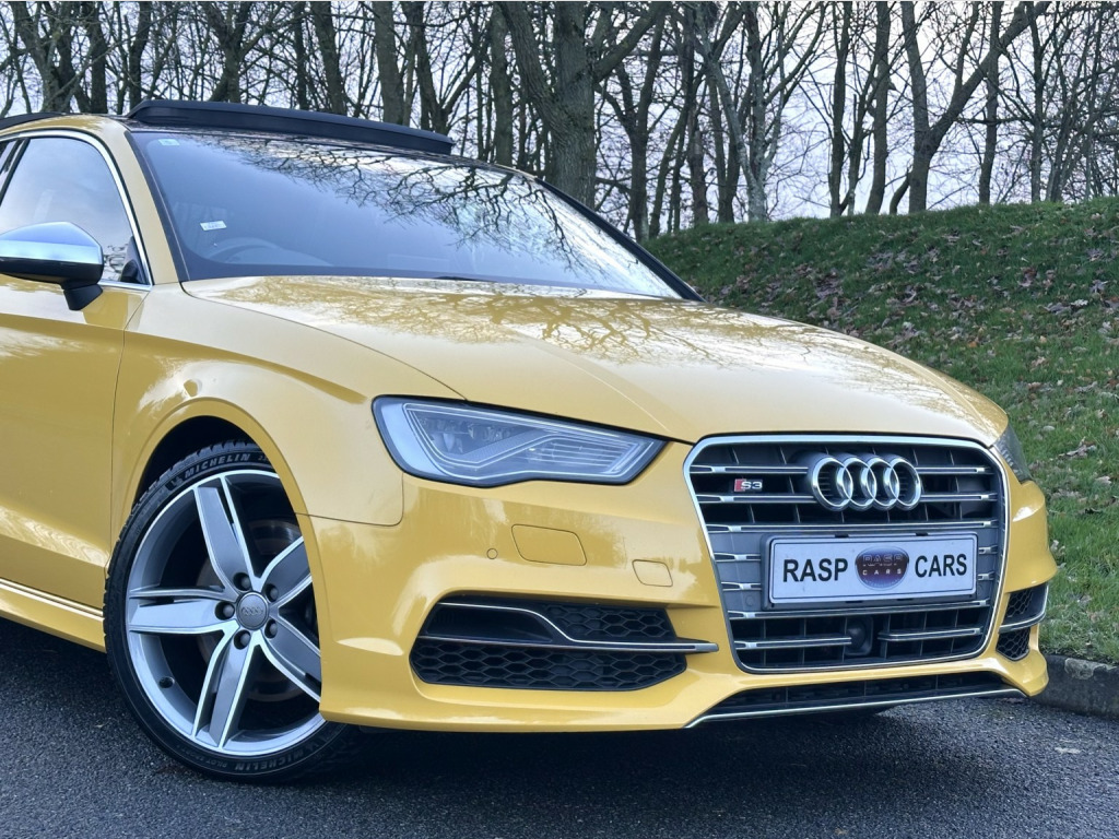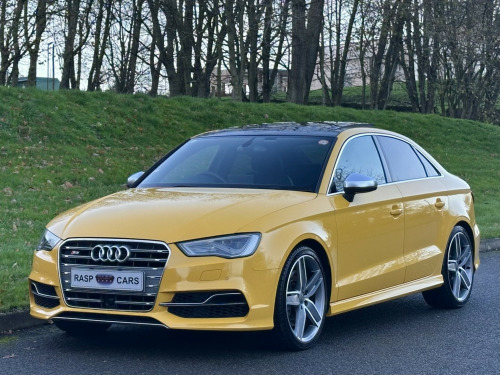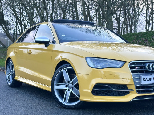 We are extremely pleased to offer this Superb 2015 Audi S3 2.0 TFSI Quattro Saloon. S Tronic Gearbox. Finished in Vegas Yellow. , Huge Specification. , We handpicked this Rare Yellow Audi S3 Saloon from Japan. A Grade 4.5 which is the highest possible grade for a used car. , Covered GENUINE 47,000 miles, Complimented with a Full Service History By Audi Japan. Service Receipts and can be Verified on Audi Worldwide Database. Just Serviced also used Genuine Audi Parts. , Serviced at the following intervals:, , PDI - Audi Main Dealer, 8989km - (5585 miles) Audi Main Dealer, 16611km - (10321 miles) Audi Main Dealer, 23901 km - (14851 miles) Audi Main Dealer, 32331 km - (20087 miles) Audi Main Dealer, 39639 km - (24630 miles) Audi Main Dealer, 54711 km - (33995 miles) Audi Main Dealer, 63773 km - (39626 miles) Audi Main Dealer, 67685 km - (42057 miles) Audi Main Dealer, 74642 km - (46380 miles) Audi Main Dealer, 75653 km - (47009 miles) - Using Genuine Audi Parts at local specialist, , Great Factory Extras;, - Full Electric Pack, - Folding Mirrors, - Panoramic Sunroof, - Colour Satellite Navigation, - Full Leather Interior, - Heated Front Seats, - ISOFIX, - Electric Seats, - On Board Computer, - Climate Control, - Active Cruise Control, - Push Button Start, - Keyless Entry, - Flat Bottom Steering Wheel, - Drive Select - Efficiency - Individual - Dynamic Options, - Paddle Shift Gear Change, - Bang & Olufsen Sound System, - Bluetooth / Phone Preparation & Voice Command, - 2 x SD Card Slots, - Audi Music Interface, - Aluminium Pedals, - Xenon Headlights - Rear LED Lights, - Aluminum Mirrors, , Plus Much More.... , Not to be confused with poorer examples, This vehicle is in Immaculate Condition. Fitted with Unmarked 18 Diamond Cut Alloys with Matching Tyres All Round. , We have been buying and selling European Cars from Japan for a number of years, these vehicles are of a higher quality and maintained to a much higher standard compared to the equivalent UK Specification cars purely due to the fact that Japan has strict car maintenance checks. The cars we source from Japan are Rust Free and Low Mileage, All Service History and Documentation is present to confirm this. , Here at Rasp Cars we strive on importing the best possible example, Our motto is - If it does not meet our high standards, we simply will not buy it! Its that simple... BUY WITH CONFIDENCE. , Overall a Stunning, Nice and Fresh Audi S3 Saloon, Giving you the ideal family 4 Door saloon along with plenty of power when needed. , - Viewing By Appointment, - Indoor Showroom, - After Hours Viewing (with prior notice), - Part Exchange Welcome