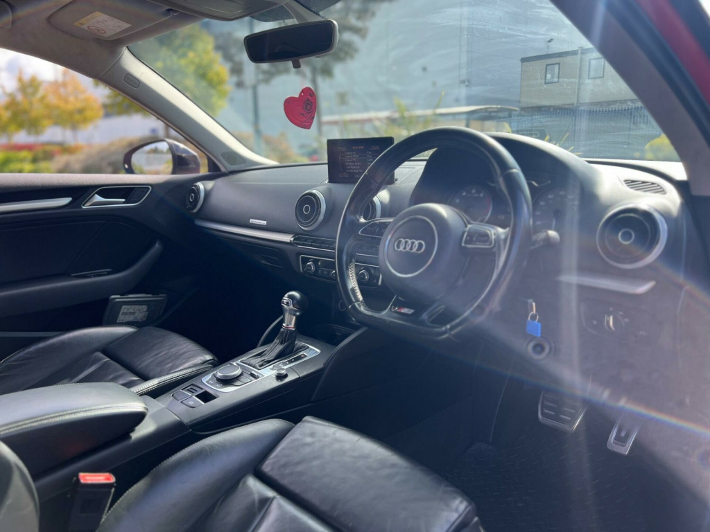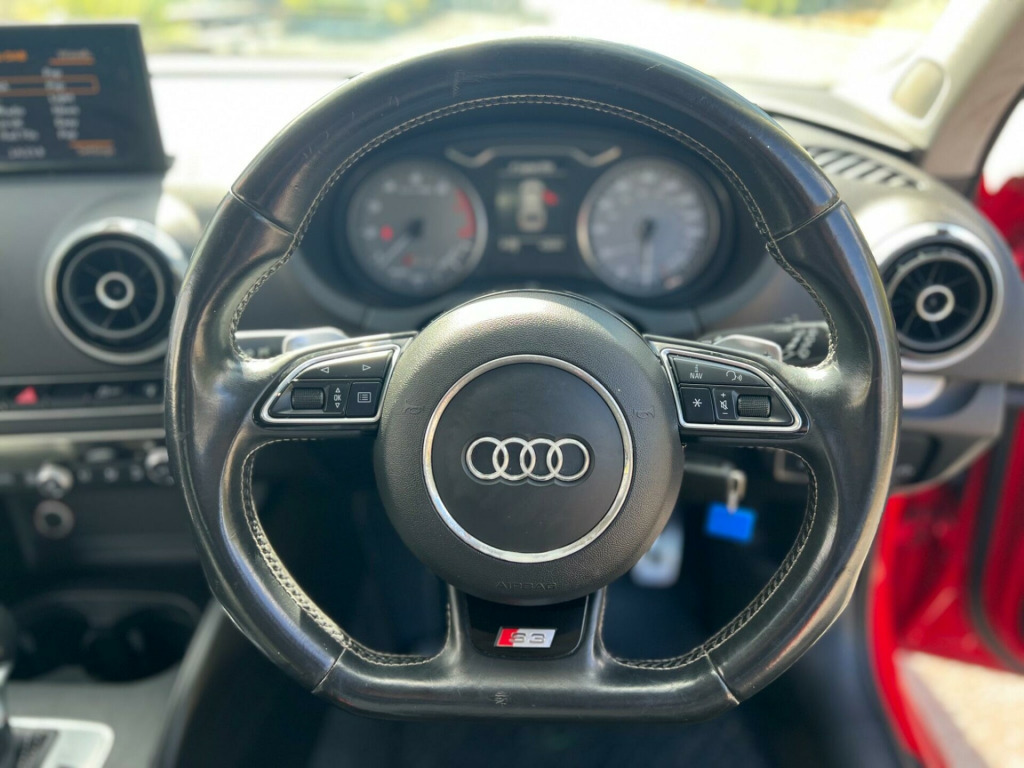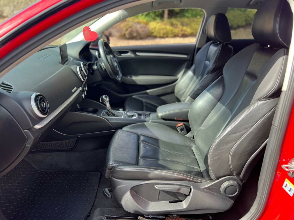 2016 Audi S3 Quattro 2.0 TFSI finished in red. 66,000 warranted miles on the clock. MOT til 15th January 2026. 1 former keeper from new! Service history available; 2 services. Car drives well with no mechanical faults. Comes with a top spec including; alloy wheels, leather steering wheel, multi-functional steering wheel, cruise control, Satellite Navigation, heated seats, Radio DAB/FM, electric windows, central locking, AC/Climate control, Bluetooth, TPMS, cup holders and many more. Nationwide Delivery Available. P/X Welcome. HPI Clear. ULEZ Compliant. Any questions don't hesitate to contact us on 07443456706 v power socket - centre console, 12v power socket - rear, 18in alloy wheels - 5-twin-spoke star design, abs - anti-lock braking system, ami - audi music interface, asr - anti slip regulation, airbags - driver, airbags - drivers knee, airbags - front passenger, airbags - front side, airbags - head level side for front and rear, alarm - thatcham category 1, aluminium interior elements, aluminium-effect door mirror housings, anti theft locking wheel bolts, audi drive select, brake calipers - black with s3 logo, car jack, colour drivers information system - dis, cup holders - rear x2, cup holders - x2 in centre console, dab digital radio, display screen colour - 5.8in, door handles - chrome, door mirrors - body coloured with integrated indicators, door mirrors - electrically adjustable and heated, door sill trims - aluminium with s3 logo, door sills with aluminium inlays, dual-zone electronic climate control, ebd - electronic brakeforce distribution, edl - electronic differential lock, esp - electronic stability programme, electric windows - front, first aid kit, front centre armrest, front fog lights, front passenger airbag deactivation switch, front sports seats, front and rear floor mats, grab handles - dampered, halogen headlights, head restraints - audi backguard adjustable, head restraints - rear, headlights - automatic dynamic range control, headlights - bi-xenon plus, headlights washers, heat insulating glass, heated front seats, heated rear windscreen, isofix child seat mounting for front passenger and rear outer seats, illuminated vanity mirrors, immobiliser, inlays - matt brushed aluminium, led daytime running lights, luggage compartment - side net, mmi radio, manual front seat adjustment, matt-brushed aluminium door trims, mobile telephone preparation - bluetooth interface, model and engine technology badges at rear, pedals in stainless steel, progressive steering, radiator grille - platinum grey with horizontal double chrome bars, remote central locking, s design body styling, s sport suspension, s logos on the mmi and dis, s3 - instrument dials in grey with white needles and aluminium look needle hub, sdhc card reader x2, smoking package, speakers x8, split folding rear seat - 1/3 2/3 or all, steering wheel - 3-spoke leather-multifunction-flat bottomed-shift paddles, steering wheel - height and reach adjustable, storage compartment under rear seat, storage net in front passenger footwell and front seat backrests, storage and luggage package, sun blinds - manual for side window, thatcham category 1 immobiliser, tool kit, tyre pressure monitoring system, usb connection, voice control - navigation, warning triangle, washer fluid level indicator, window surrounds - aluminium