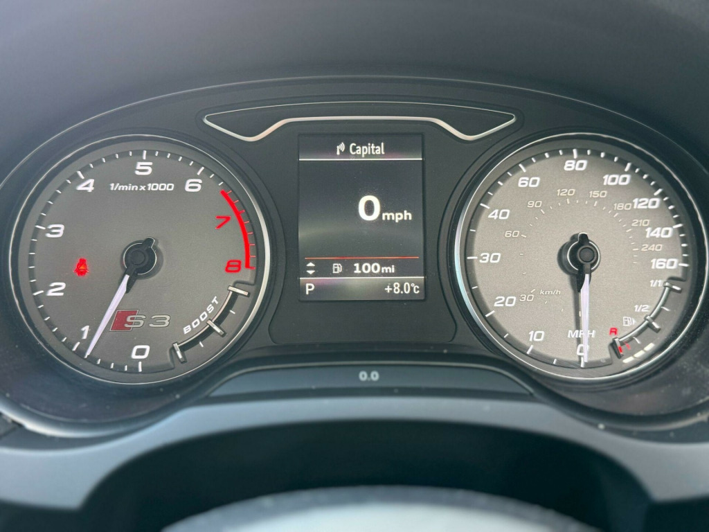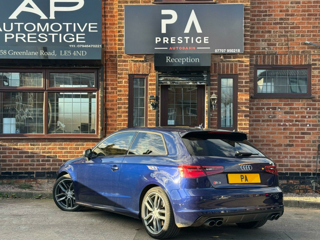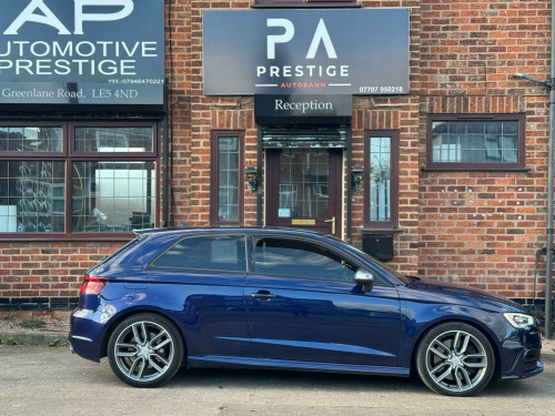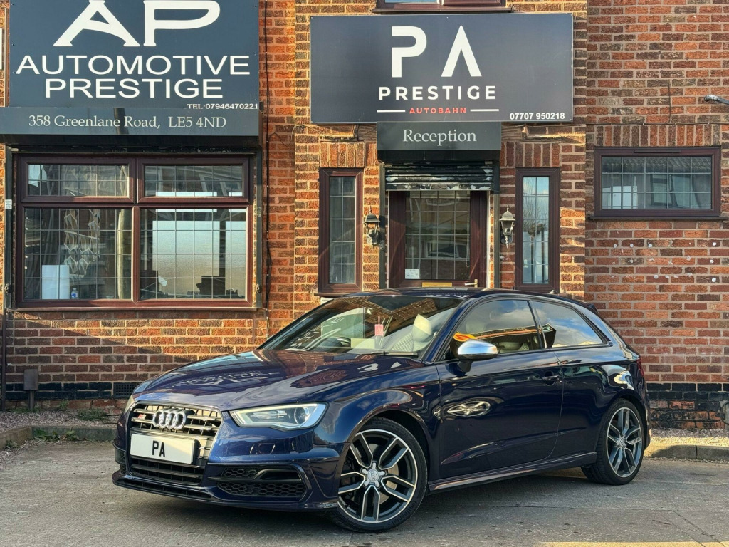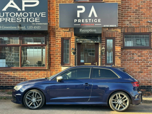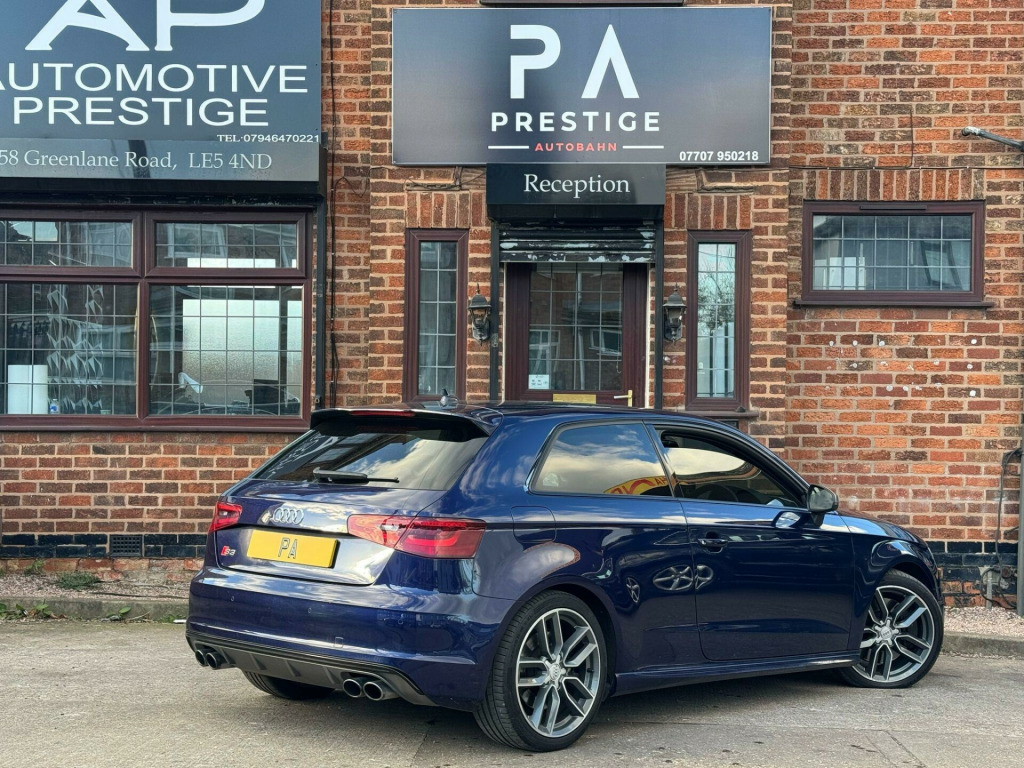 Prestige Autobahn are proud to present a Audi S3 2.0 TFSI S Tronic Quattro in Estoril Blue Crystal Effect . A well-cared for and maintained vehicle covering just over 105,000 Reliable miles backed by full main dealer service history for your peace of mind. The car has a Decat and Res delete giving it a great sport sound thats not too loud, it has a Stage 1 Remap done by Mallory Performace. Factory fitted extras include, Heated Front Seats, Sport Plus Seats, Bang & Olufsen Sound System, Auto Hill Hold, Cruise control, Multi Function Steering Wheel, Bluetooth Telephone, BT audio, Aux Port and USB Port. The car drives absolutely superb. Any inspections & test drives are most welcome. All dealer facilities are available. We can arrange finance, low cost delivery, extended warranties and accept any car as part exchange for a hassle free purchase. At Prestige Autobahn we are confident in providing first class customer service. We provide you with as much information about our vehicles as possible. Payments can be made via cash, bank transfer or debit card. Please call us on 07707 950218 or email us at prestigeautobahngmail.com for any questions or enquiries. The 2014 Audi S3 TFSI is a car that delivers a thrilling driving experience, thanks to its powerful 2.0-litre petrol engine and sure-footed four-wheel drive system. The vehicle is equipped with a Light and Rain Sensor Package, which includes automatic headlights. Parking is made easy with the Audi Parking System Rear, complete with acoustic indicators and rear parking sensors. It also features 18-inch alloy wheels with a 10-spoke titanium matt design, Audi Hill Hold Assist, and fine Nappa leather super sport seats.The S3 boasts a boot space of 325 litres, which is ideal for everyday needs. But what truly sets this vehicle apart is its impressive acceleration. It can go from 0 to 62mph in just 4.8 seconds, offering exhilarating performance that surpasses many other cars in its class. di parking system rear with acoustic indicators, bang and olufsen sound system, cruise control, satellite navigation system - sd card based, 18in alloy wheels - 10-spoke design titanium matt, light and rain sensor package, privacy glass, fine nappa leather - super sport seats - black, audi hill hold assist, speed limit display, 12v power socket - centre console, 12v power socket - rear, 18in alloy wheels - 5-twin-spoke star design, abs - anti-lock braking system, ami - audi music interface, asr - anti slip regulation, airbags - driver, airbags - drivers knee, airbags - front passenger, airbags - front side system, airbags - sideguard, alarm - thatcham category 1, aluminium interior elements, aluminium look pedals, aluminium-effect door mirror housings, aluminium-look pedals and footrest, anti theft locking wheel bolts, audi drive select, brake calipers - black with s3 logo, car jack, chorus radio/single cd player with front speakers, colour drivers information system - dis, cup holders - rear x2, cup holders - x2 in centre console, display screen colour - 5.8in, door handles - chrome, door mirrors - body coloured with integrated indicators, door mirrors - electrically adjustable and heated, door sill trims - aluminium with s3 logo, door sills with aluminium inlays, dual-zone electronic climate control, ebd - electronic brakeforce distribution, edl - electronic differential lock, esp - electronic stability programme, electric windows - front, front centre armrest, front fog lights, front sports seats, front and rear floor mats, grab handles - dampered, halogen headlights, head restraints - audi backguard adjustable, head restraints - rear, headlights - bi-xenon plus, headlights washers, heat insulating glass, heated front seats, heated rear windscreen, isofix child seat preparation front and rear with passenger airbag deactivation switch, illuminated vanity mirrors, immobiliser, inlays - matt brushed aluminium, led daytime running lights, luggage compartment - side net, manual front seat adjustment, matt-brushed aluminium door trims, mobile telephone preparation - bluetooth interface, progressive steering, radiator grille - platinum grey with horizontal double chrome bars, remote central locking, s design body styling, s instrument dials, s sport suspension, s logos on the mmi and dis, s3 - instrument dials in grey with white needles and aluminium look needle hub, sdhc card reader x2, speakers x8, split folding rear seat - 1/3 2/3 or all, steering wheel - 3-spoke leather-multifunction-flat bottomed-shift paddles, steering wheel - height and reach adjustable, steering wheel - multi-function, storage compartment under rear seat, storage net in front passenger footwell and front seat backrests, storage and luggage package, sun blinds - manual for side window, thatcham category 1 immobiliser, tool kit, tyre mobility system, usb connection, voice control - navigation, warning triangle, washer fluid level indicator, window surrounds - aluminium