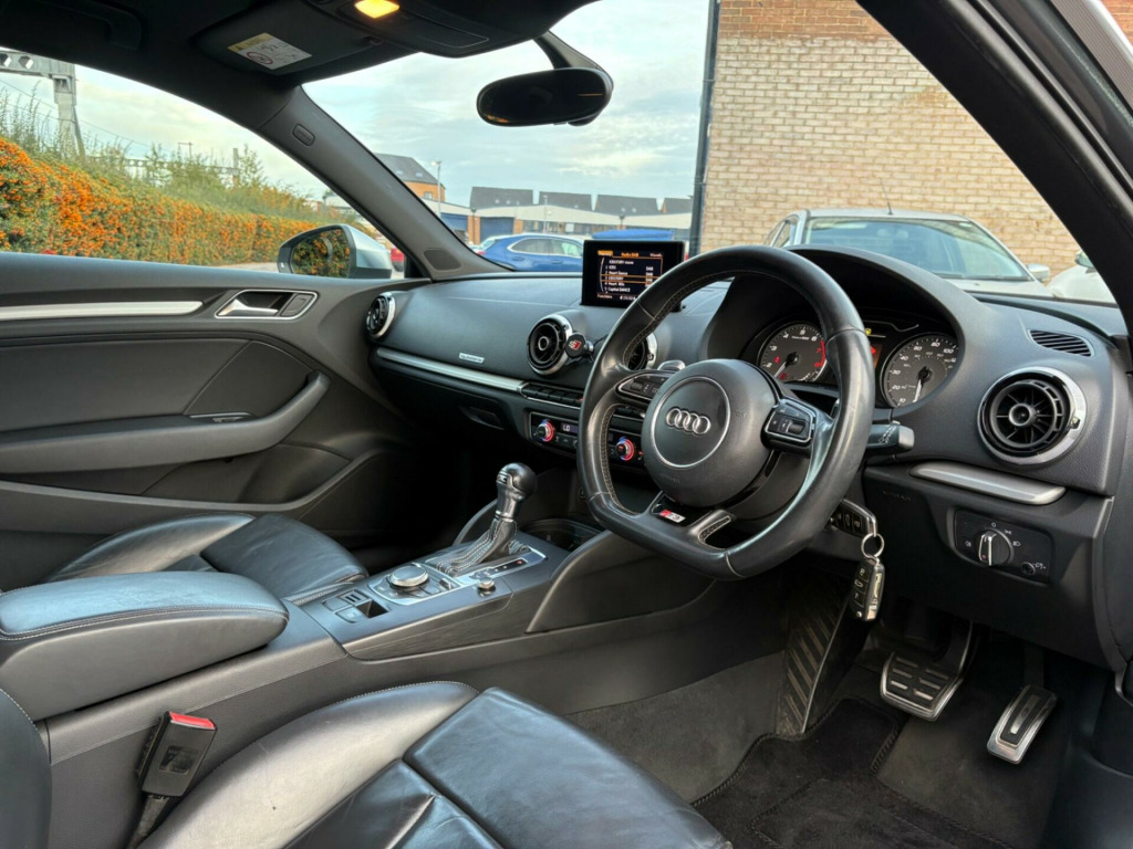 12 MONTHS MOT+NEW SERVICE+FULL AUDI HISTORY UPTO 90K+VERY WELL MAINTAINED EXAMPLE+HEATED SEATS+FULL BLACK LEATHER INTERIOR+CRUISE CONTROL+VERY CLEAN BODY CONDITION+SAME DAY DELIVERY AVAILABLE+REQUEST A VIDEO TODAY+FIRST TO SEE WILL BUY+3 MONTHS ENGINE AND GEAR BOX WARRANTY+ v power socket - centre console, 12v power socket - rear, 18in alloy wheels - 5-twin-spoke star design, abs - anti-lock braking system, ami - audi music interface, asr - anti slip regulation, airbags - driver, airbags - drivers knee, airbags - front passenger, airbags - front side system, airbags - sideguard, alarm - thatcham category 1, aluminium interior elements, aluminium look pedals, aluminium-effect door mirror housings, aluminium-look pedals and footrest, anti theft locking wheel bolts, audi drive select, brake calipers - black with s3 logo, car jack, chorus radio/single cd player with front speakers, colour drivers information system - dis, cup holders - rear x2, cup holders - x2 in centre console, display screen colour - 5.8in, door handles - chrome, door mirrors - body coloured with integrated indicators, door mirrors - electrically adjustable and heated, door sill trims - aluminium with s3 logo, door sills with aluminium inlays, dual-zone electronic climate control, ebd - electronic brakeforce distribution, edl - electronic differential lock, esp - electronic stability programme, electric windows - front, front centre armrest, front fog lights, front sports seats, front and rear floor mats, grab handles - dampered, halogen headlights, head restraints - audi backguard adjustable, head restraints - rear, headlights - bi-xenon plus, headlights washers, heat insulating glass, heated front seats, heated rear windscreen, isofix child seat preparation front and rear with passenger airbag deactivation switch, illuminated vanity mirrors, immobiliser, inlays - matt brushed aluminium, led daytime running lights, luggage compartment - side net, manual front seat adjustment, matt-brushed aluminium door trims, mobile telephone preparation - bluetooth interface, progressive steering, radiator grille - platinum grey with horizontal double chrome bars, remote central locking, s design body styling, s instrument dials, s sport suspension, s logos on the mmi and dis, s3 - instrument dials in grey with white needles and aluminium look needle hub, sdhc card reader x2, speakers x8, split folding rear seat - 1/3 2/3 or all, steering wheel - 3-spoke leather-multifunction-flat bottomed-shift paddles, steering wheel - height and reach adjustable, steering wheel - multi-function, storage compartment under rear seat, storage net in front passenger footwell and front seat backrests, storage and luggage package, sun blinds - manual for side window, thatcham category 1 immobiliser, tool kit, tyre mobility system, usb connection, voice control - navigation, warning triangle, washer fluid level indicator, window surrounds - aluminium, cruise control, 18in alloy wheels - 10-spoke design, privacy glass